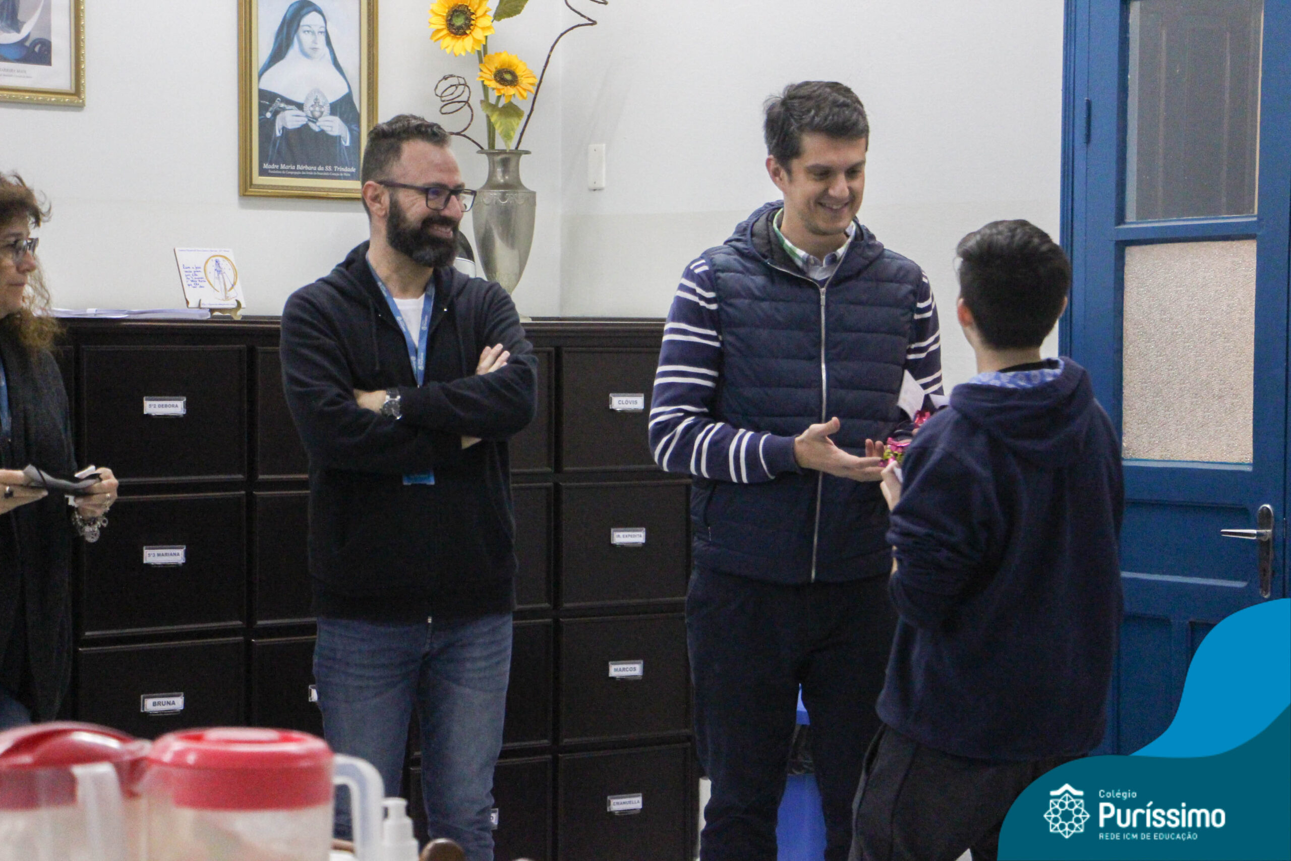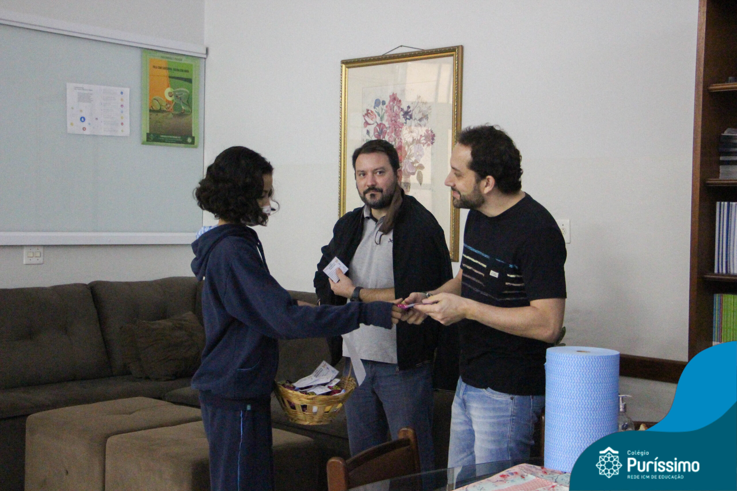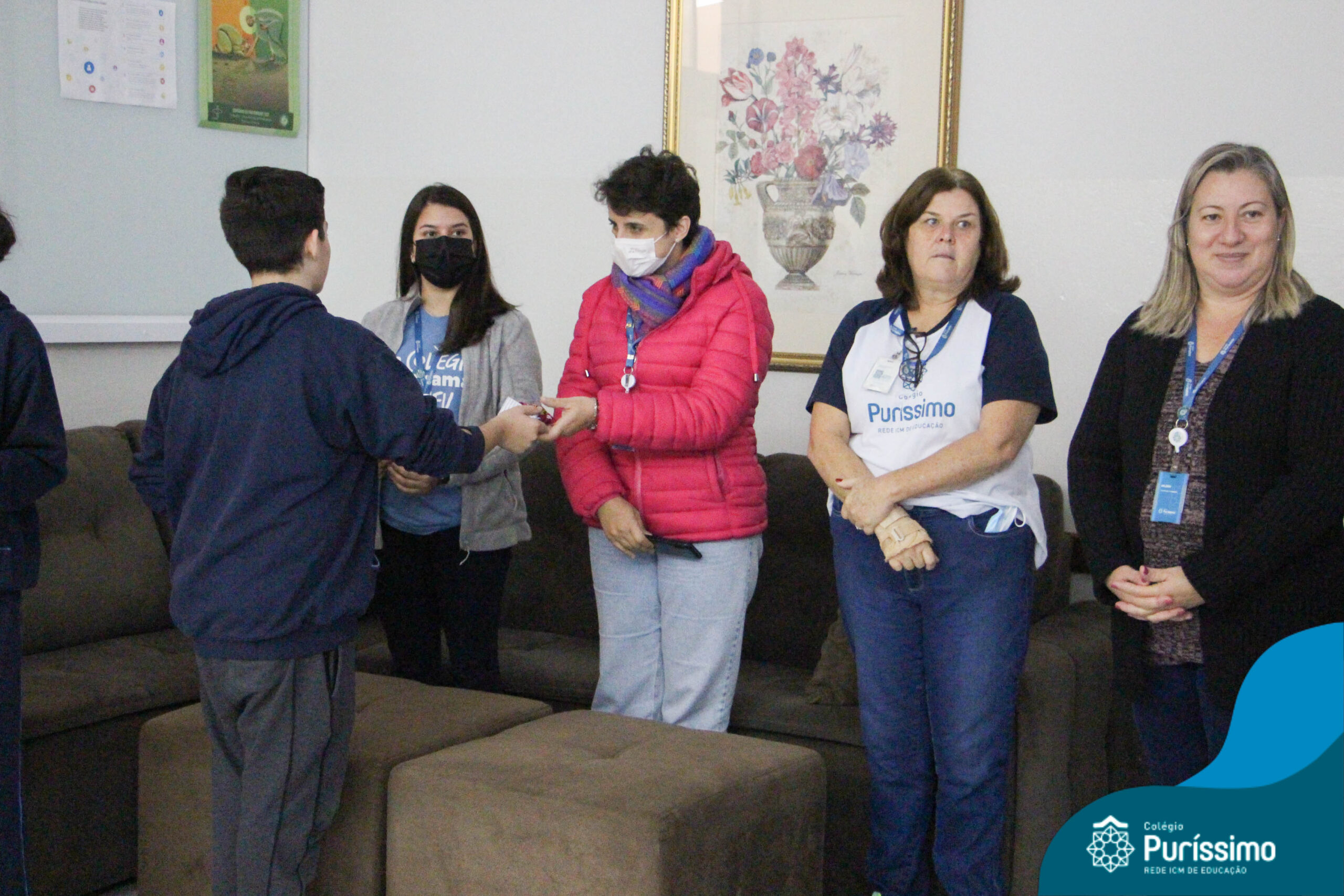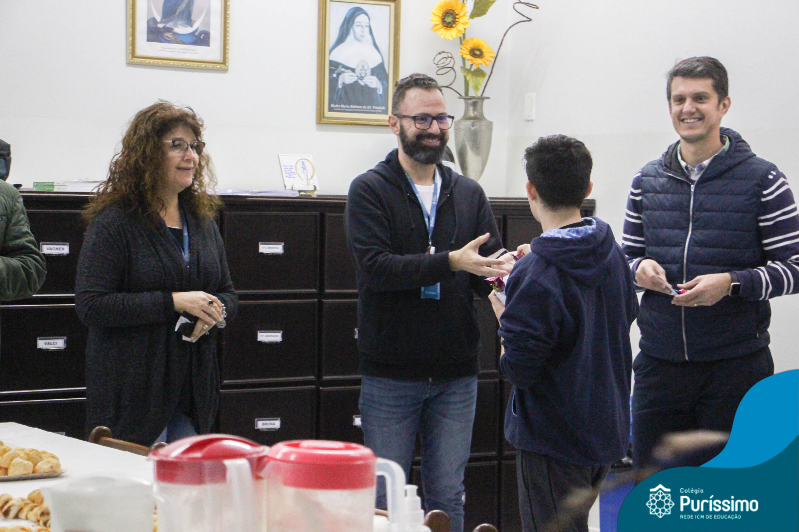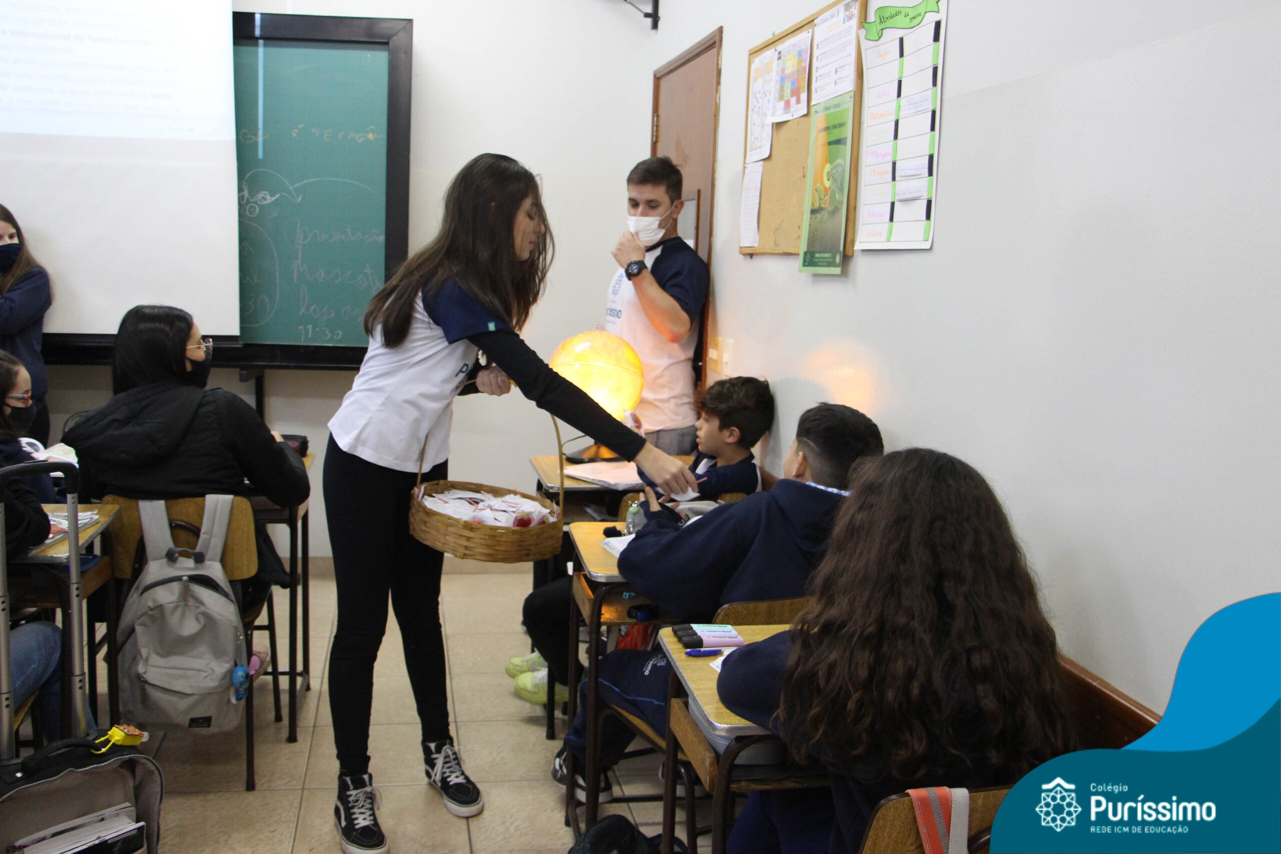 Foi entregue a cada aluno um pirulito e a cada colaborador um bombom, como uma lembrança dessa data tão especial.