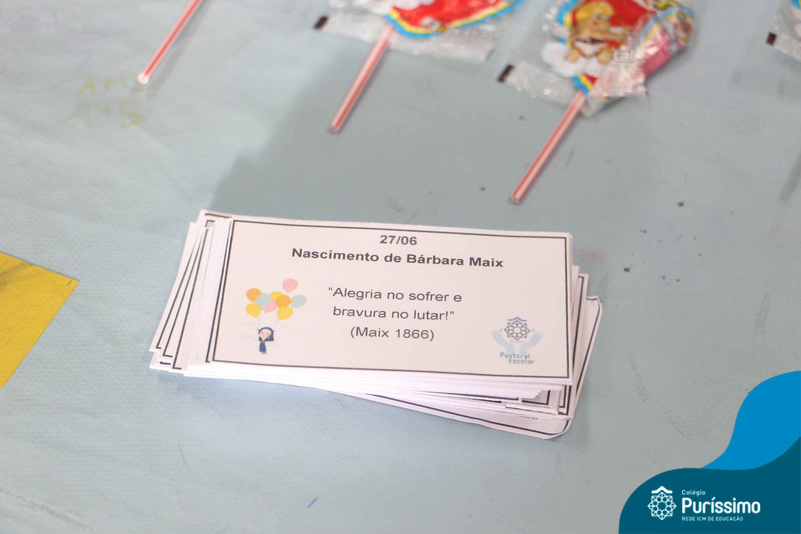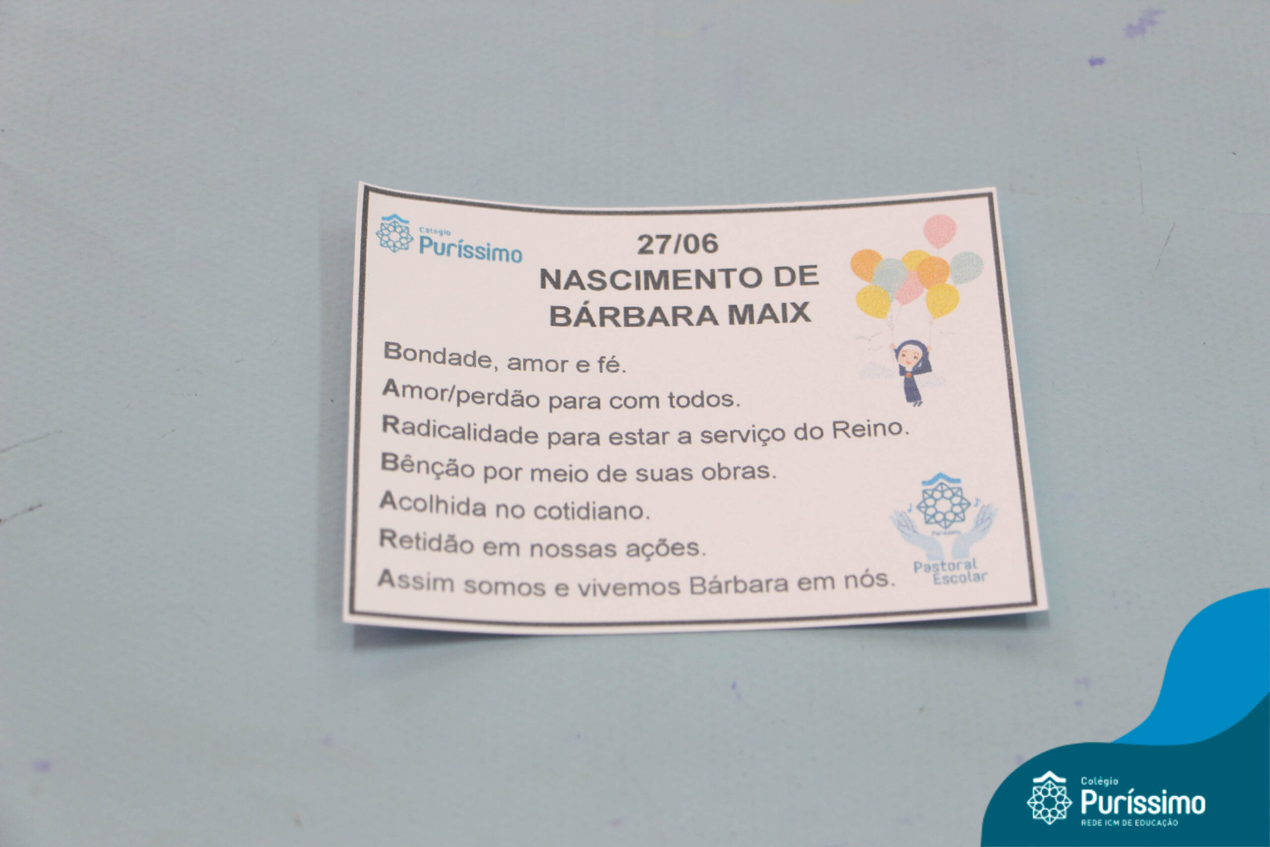 Nessa segunda-feira, 27 de junho, os alunos da Pastoral Escolar realizaram uma ação em celebração aos 204 anos do nascimento de Bárbara Maix.