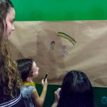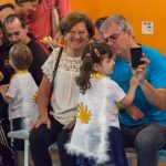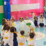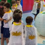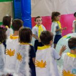 Hoje se encerram as apresentações de fim de ano da Educação Infantil na Casa Azul e, para finalizar o período da manhã, as crianças do Jardim I M, da professora Silvia, falaram sobre a paz. Tendo como espectadores os pais e familiares, os alunos cantaram e dançaram uma música sobre a paz, em seguida, convidaram a plateia a desenharem o significado da paz nos papéis que estavam nas paredes e, após o desenho, entregaram um cartão que fizeram sobre a paz para os pais. As crianças nos lembraram de como o mundo precisa de mais bondade e amor, fecharam com chave de ouro as apresentações da manhã. Parabéns Jardim I M!