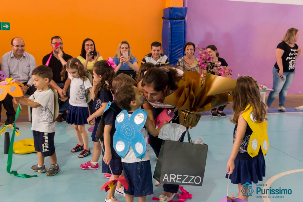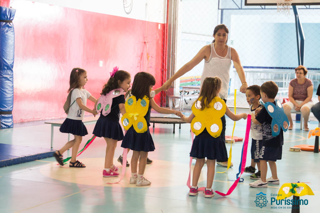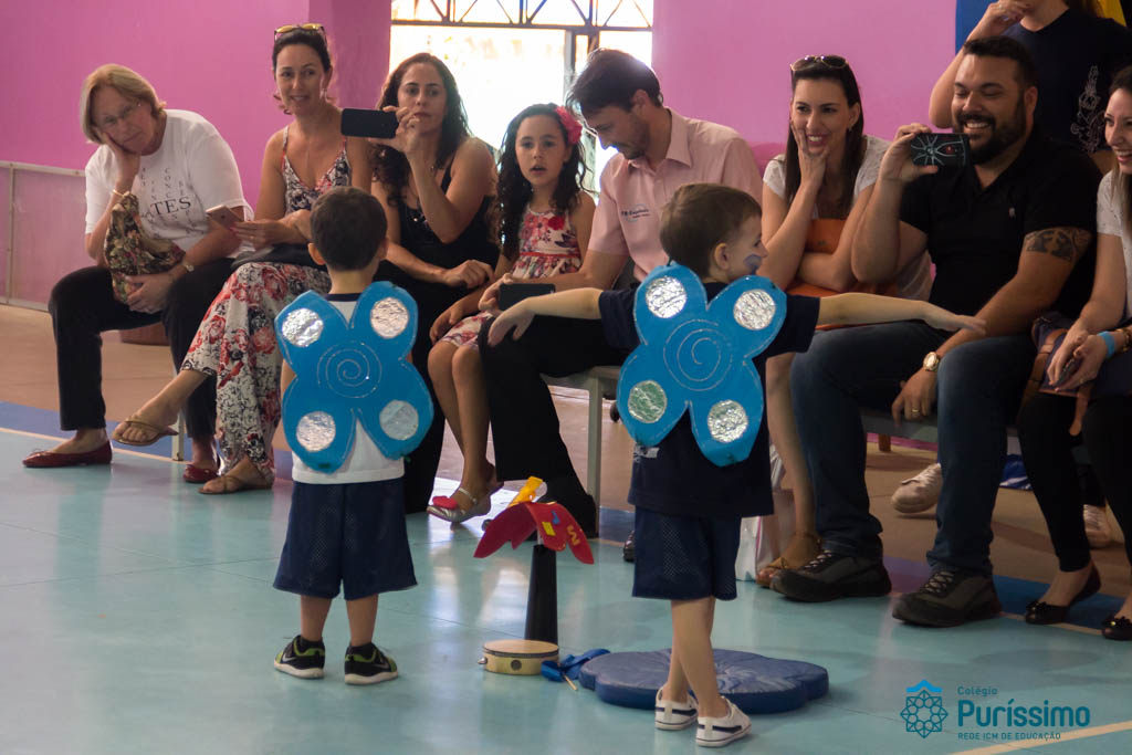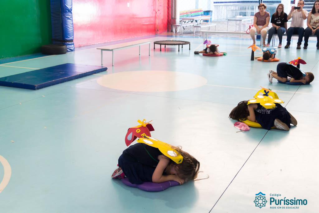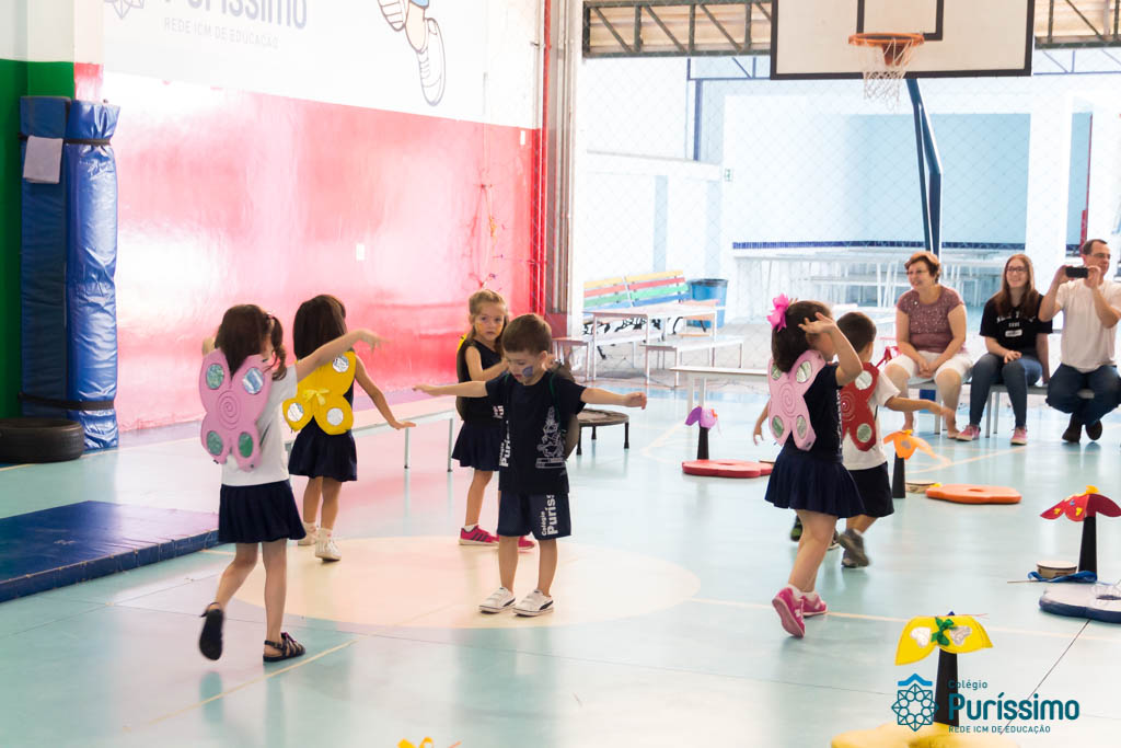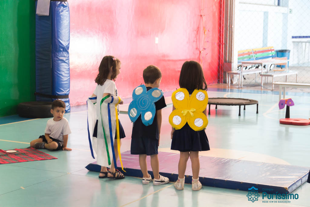 Hoje pela manhã, o maternal II, turma da professora Franceli, fez sua apresentação de fim de ano aos pais e familiares. As crianças apresentaram um teatrinho sobre Romeu e Julieta como borboletas, dançaram uma música de borboletinha e fizeram um circuito, o qual convidaram as mães para participarem também. A apresentação foi linda e com certeza as crianças se divertiram bastante! Parabéns!