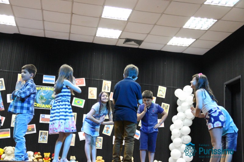 Na sexta-feira, 26 de outubro, os alunos dos 2ºs anos realizaram a apresentação de palco aos pais e familiares com o tema: universo das crianças. Durante a apresentação, as crianças falaram sobre medos, sobre direitos e deveres das crianças e sobre o futuro que elas querem para o planeta através de vídeos, poesias e danças.