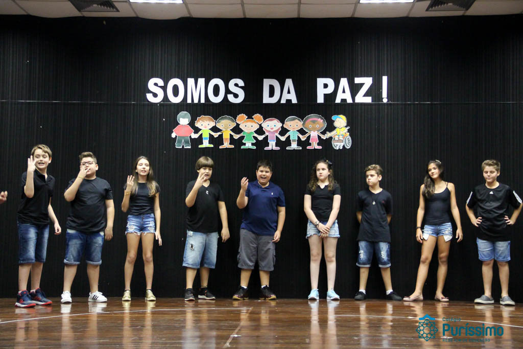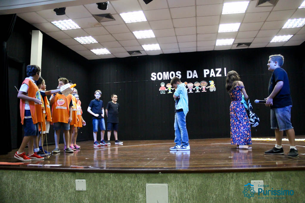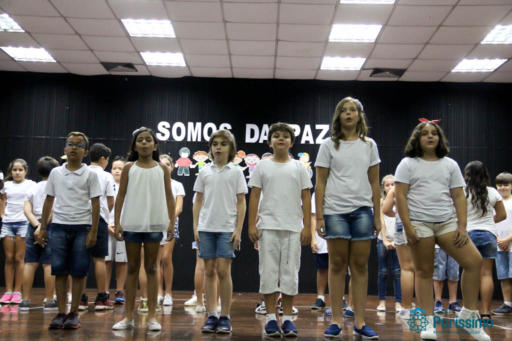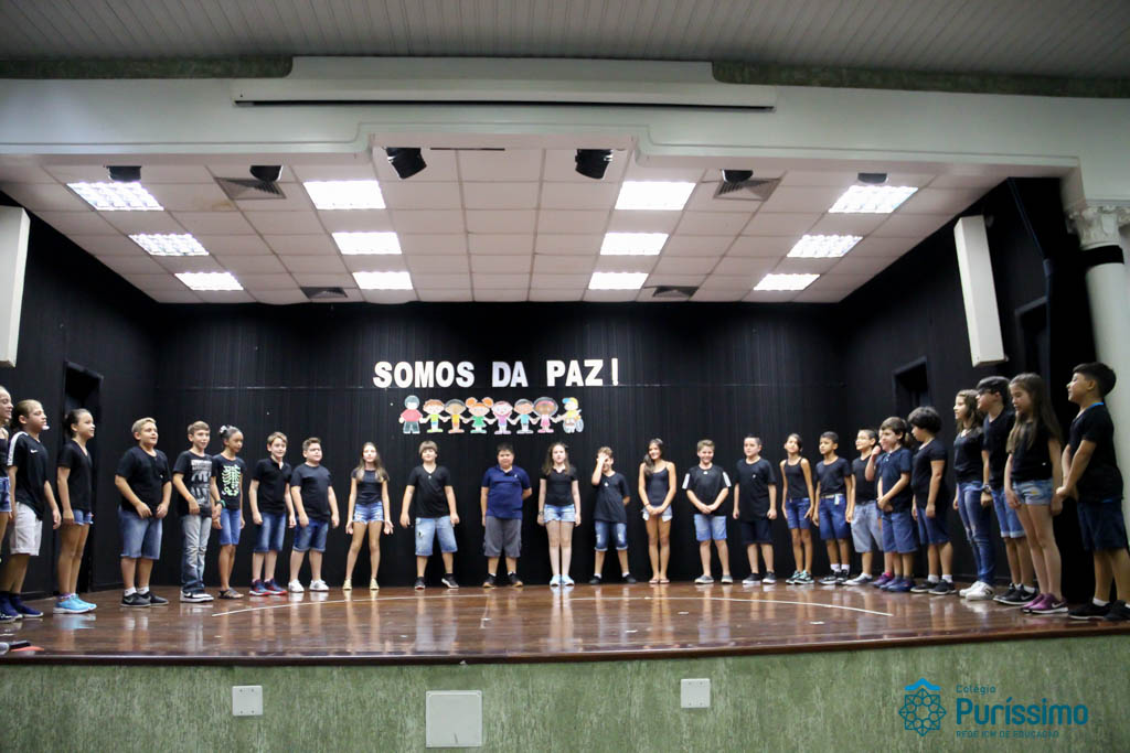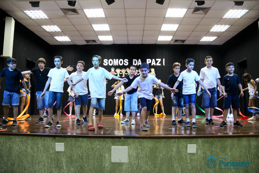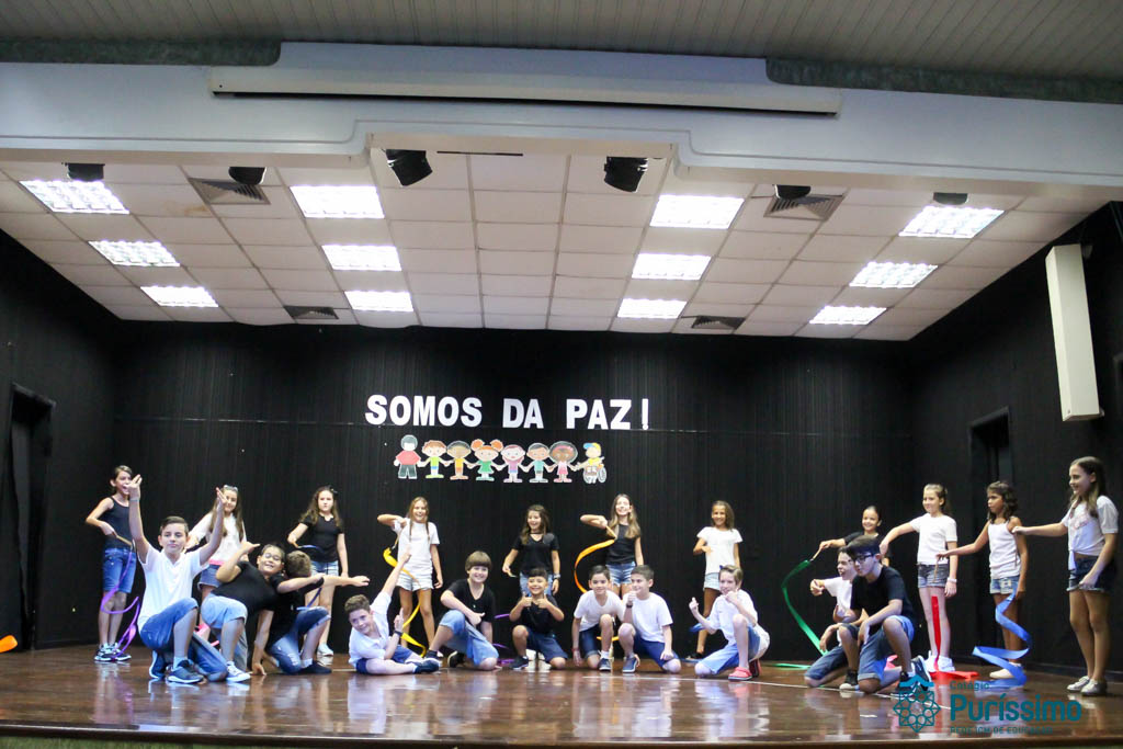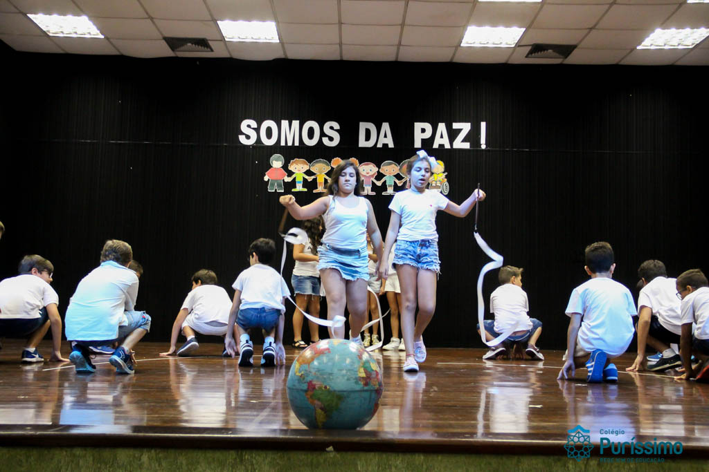 Os 5ºs anos se apresentaram na última sexta-feira, 06/04, e falaram sobre a paz. Frisando os tempos de violência o qual estamos vivendo, eles pregaram a empatia e a vontade de querer um mundo melhor para o futuro das crianças. Deixaram uma mensagem linda sobre o mundo que deveríamos lutar para ter. Vamos “perder mais tempo”