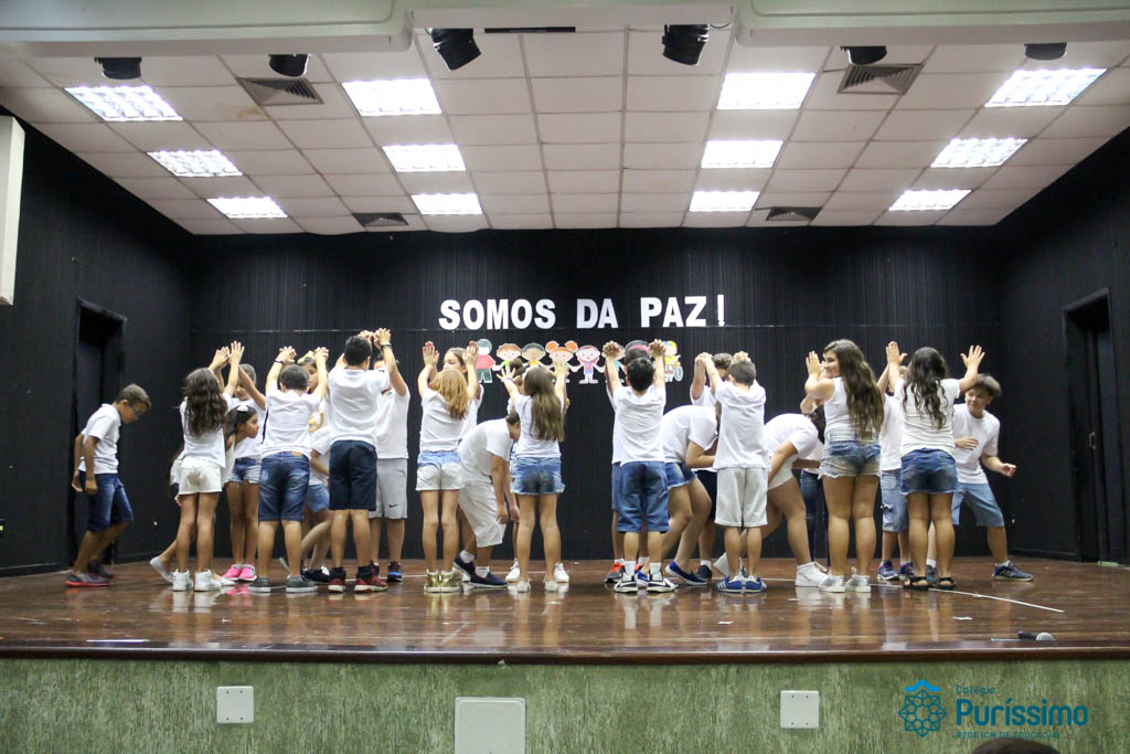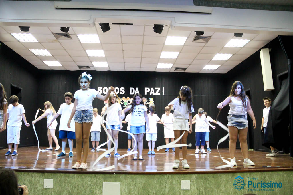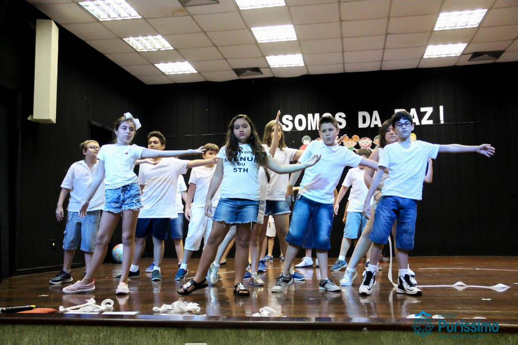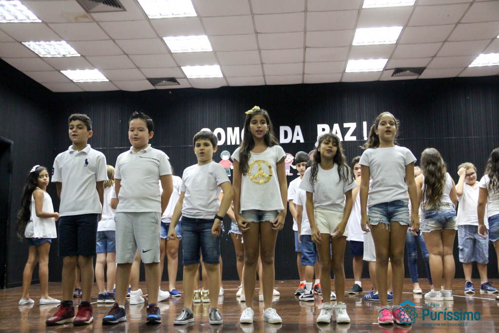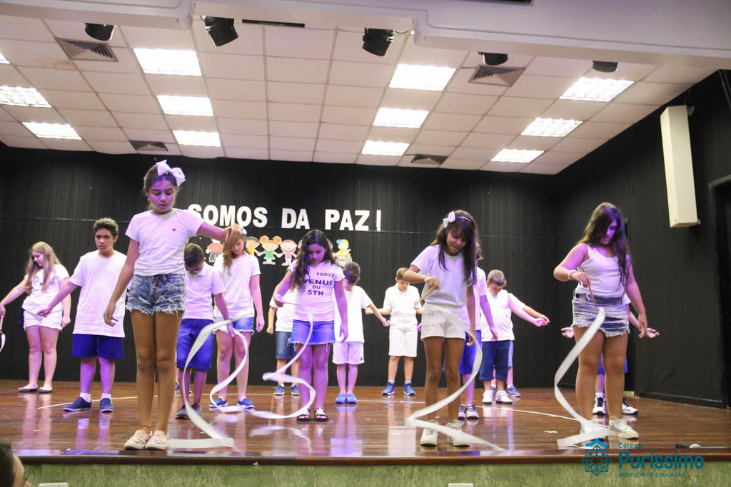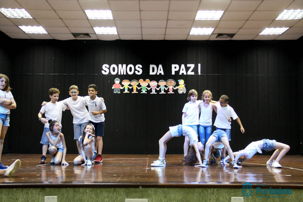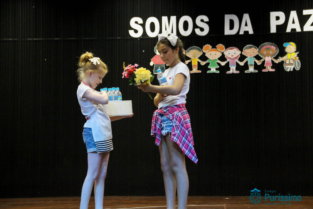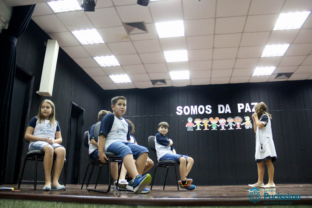 Os 5ºs anos se apresentaram na última sexta-feira, 06/04, e falaram sobre a paz. Frisando os tempos de violência o qual estamos vivendo, eles pregaram a empatia e a vontade de querer um mundo melhor para o futuro das crianças. Deixaram uma mensagem linda sobre o mundo que deveríamos lutar para ter. Vamos “perder mais tempo”