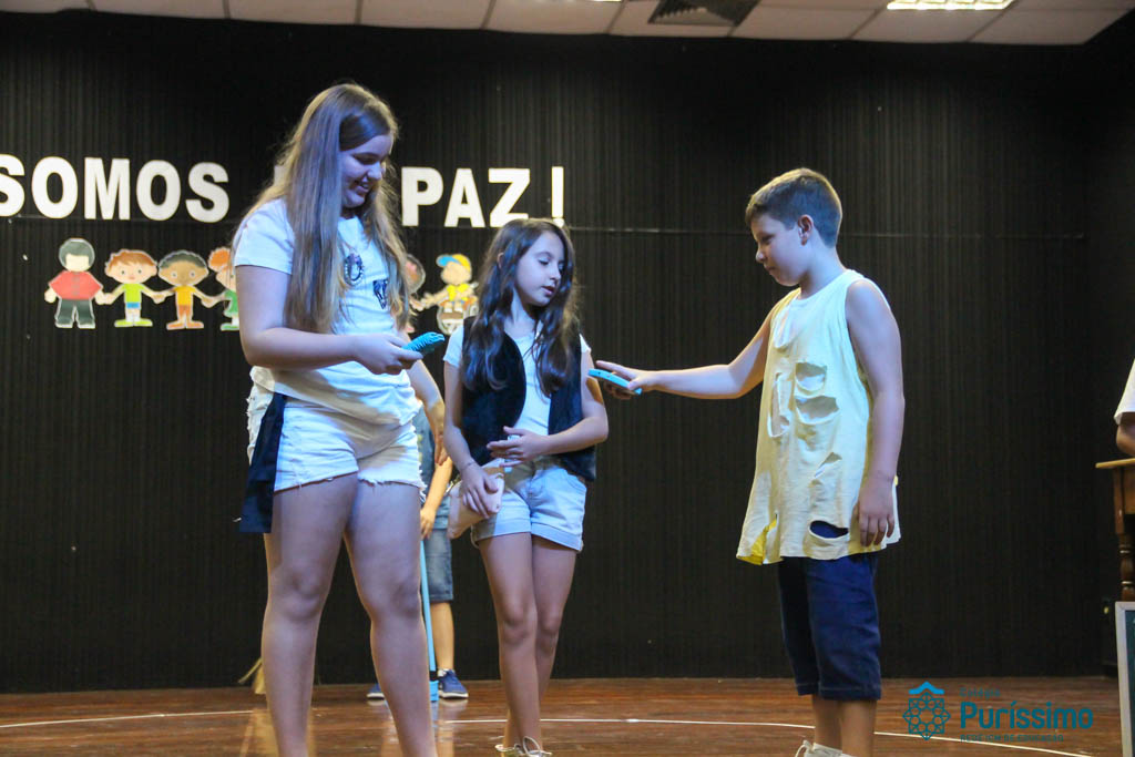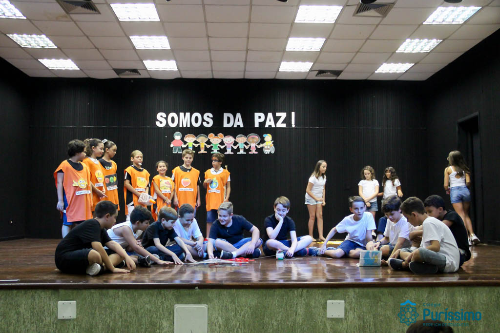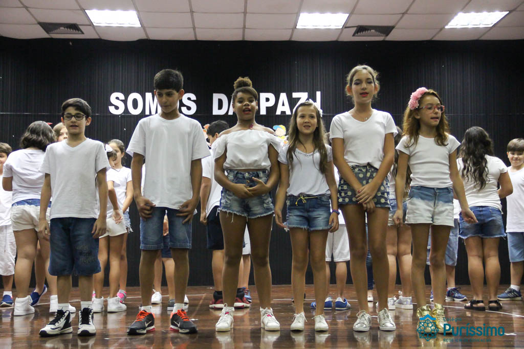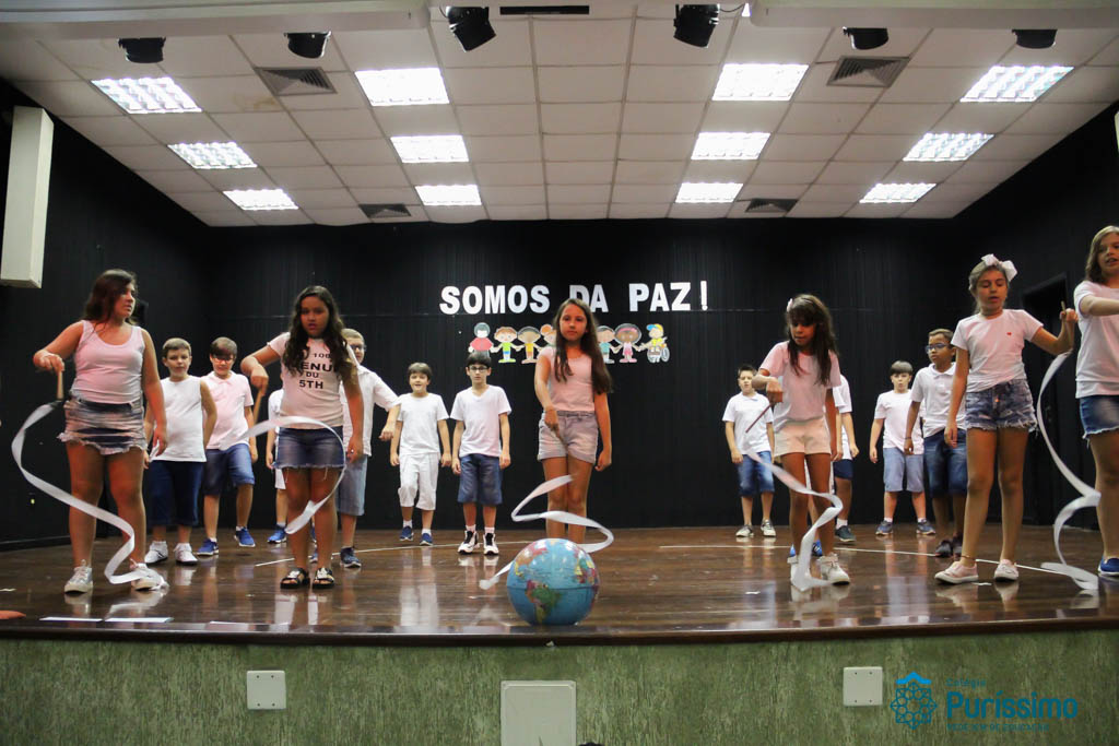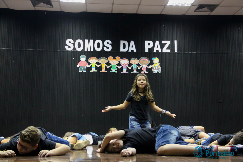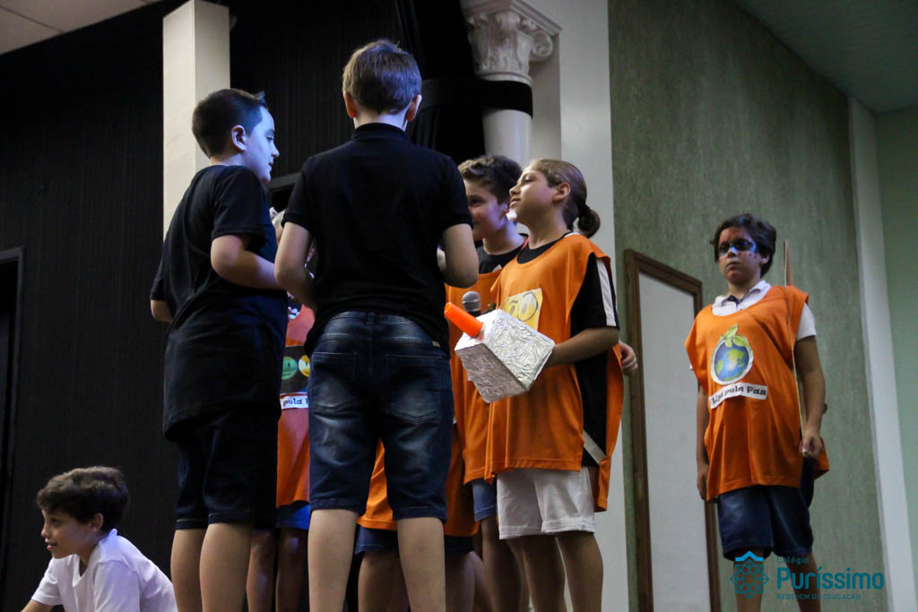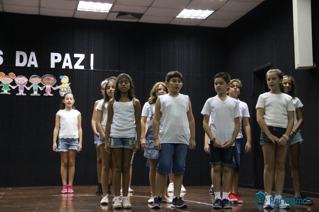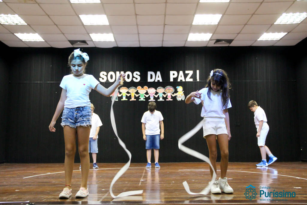 Os 5ºs anos se apresentaram na última sexta-feira, 06/04, e falaram sobre a paz. Frisando os tempos de violência o qual estamos vivendo, eles pregaram a empatia e a vontade de querer um mundo melhor para o futuro das crianças. Deixaram uma mensagem linda sobre o mundo que deveríamos lutar para ter. Vamos “perder mais tempo”