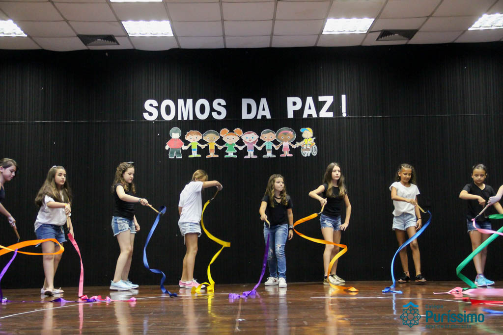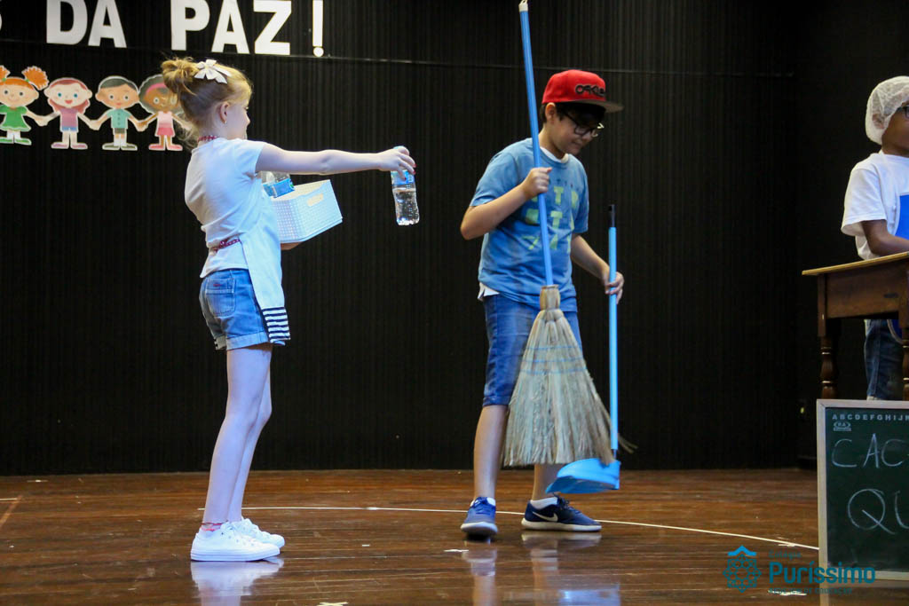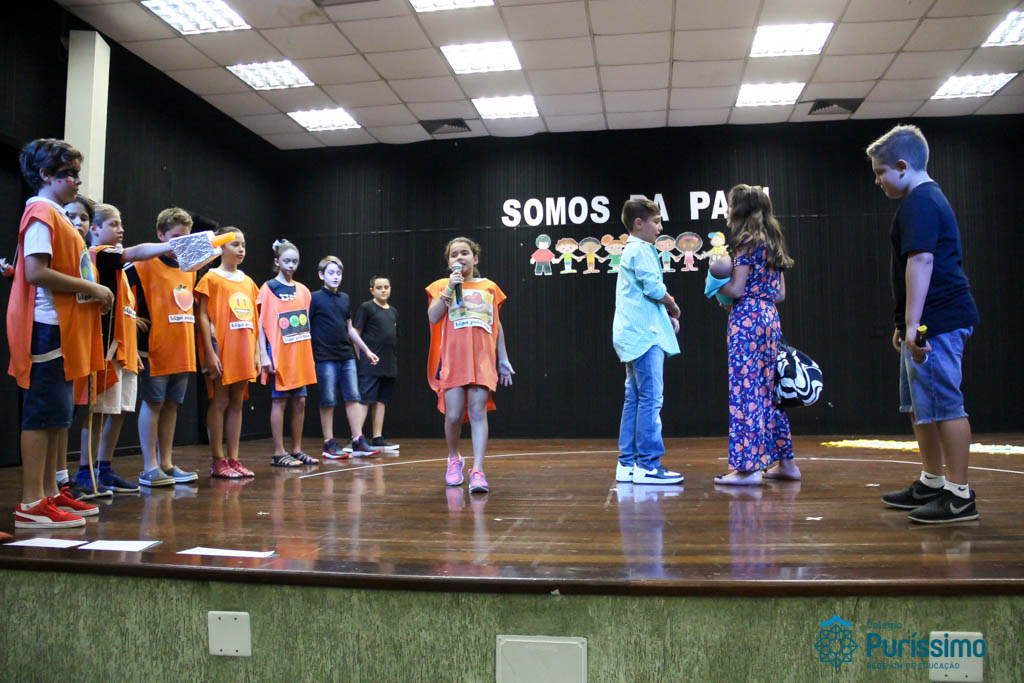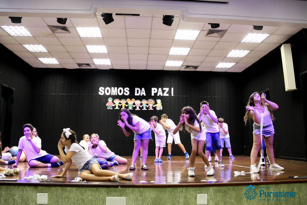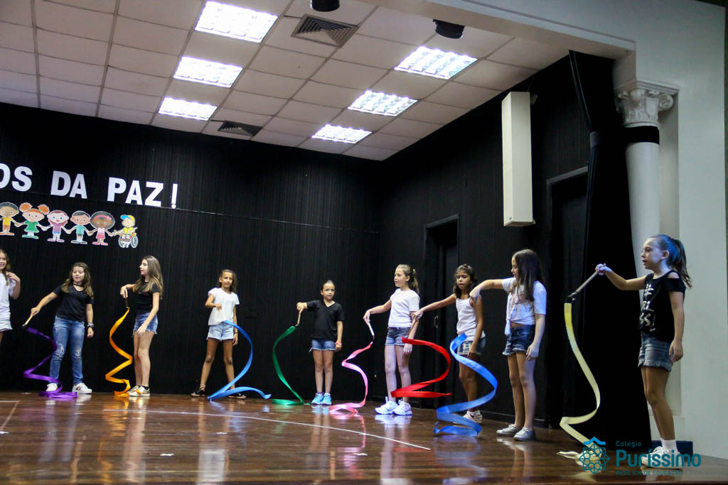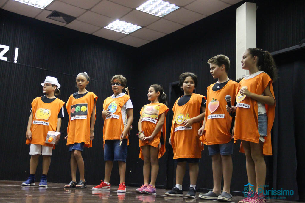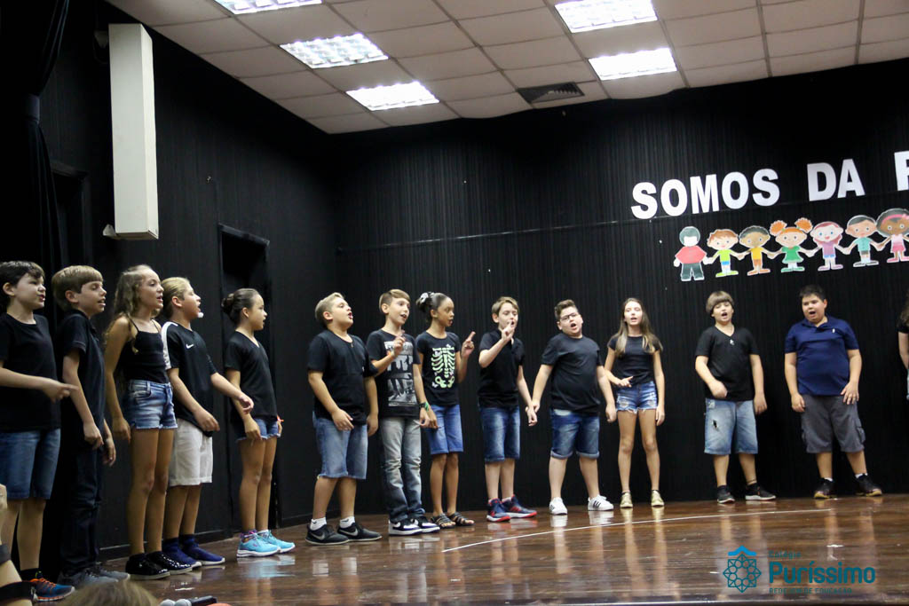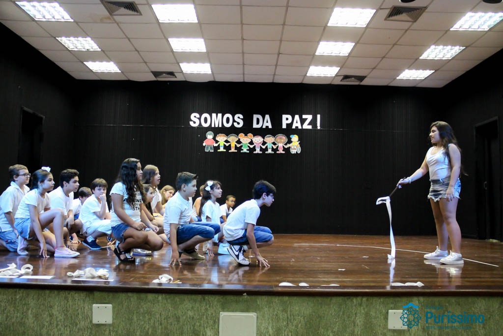 Os 5ºs anos se apresentaram na última sexta-feira, 06/04, e falaram sobre a paz. Frisando os tempos de violência o qual estamos vivendo, eles pregaram a empatia e a vontade de querer um mundo melhor para o futuro das crianças. Deixaram uma mensagem linda sobre o mundo que deveríamos lutar para ter. Vamos “perder mais tempo”
