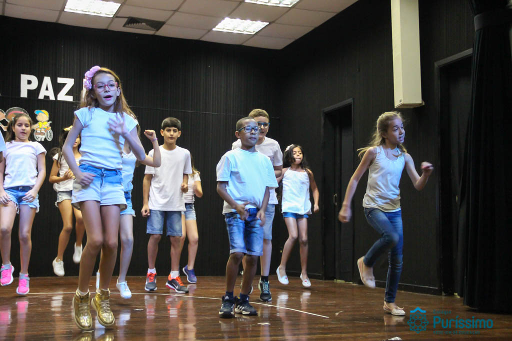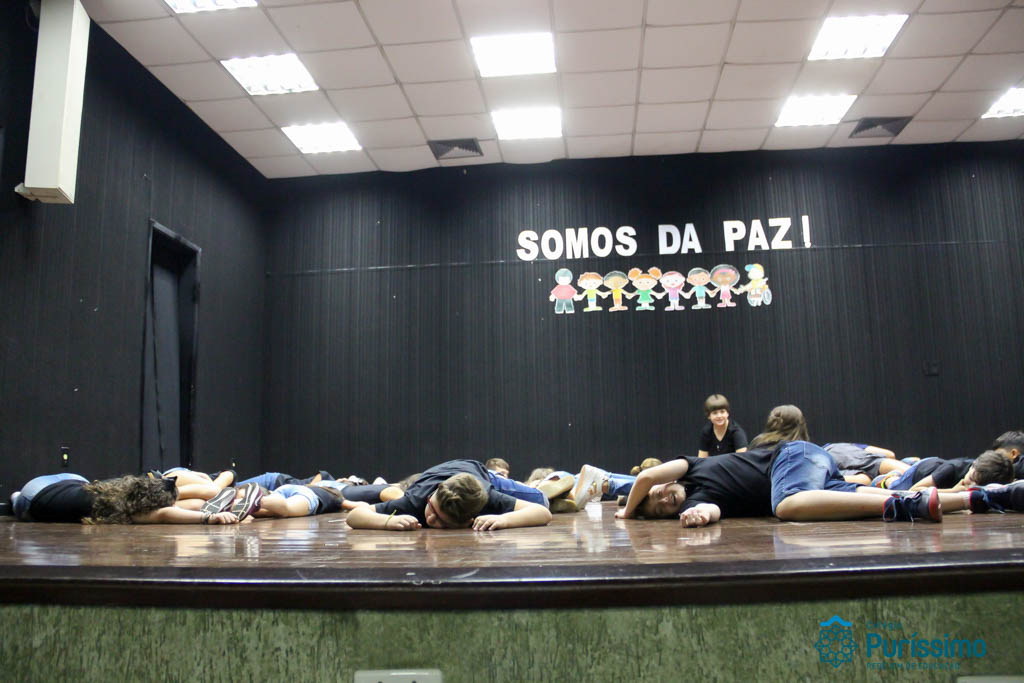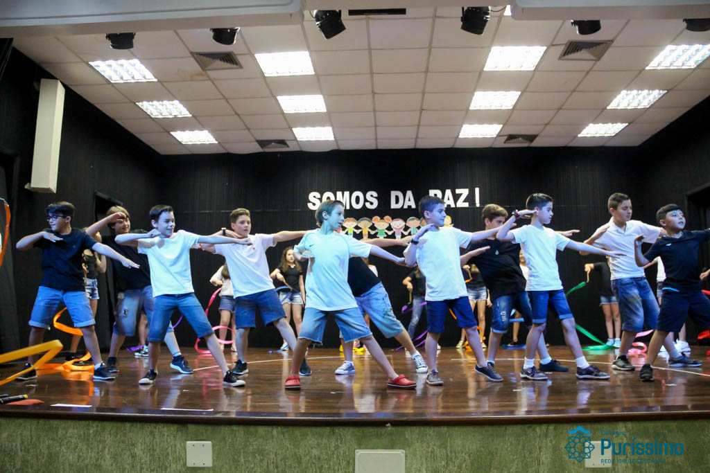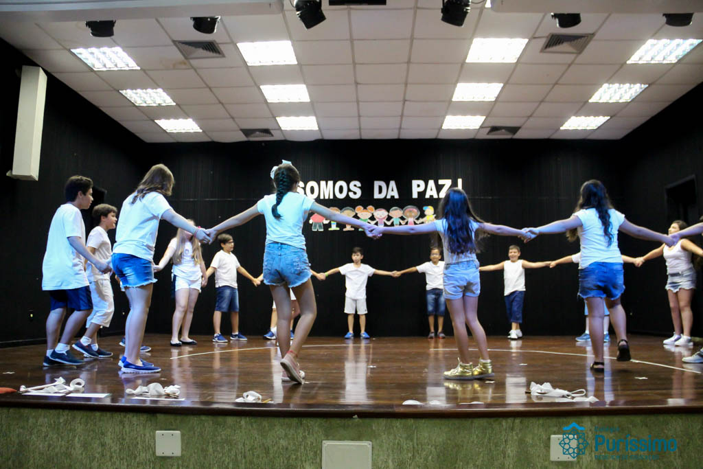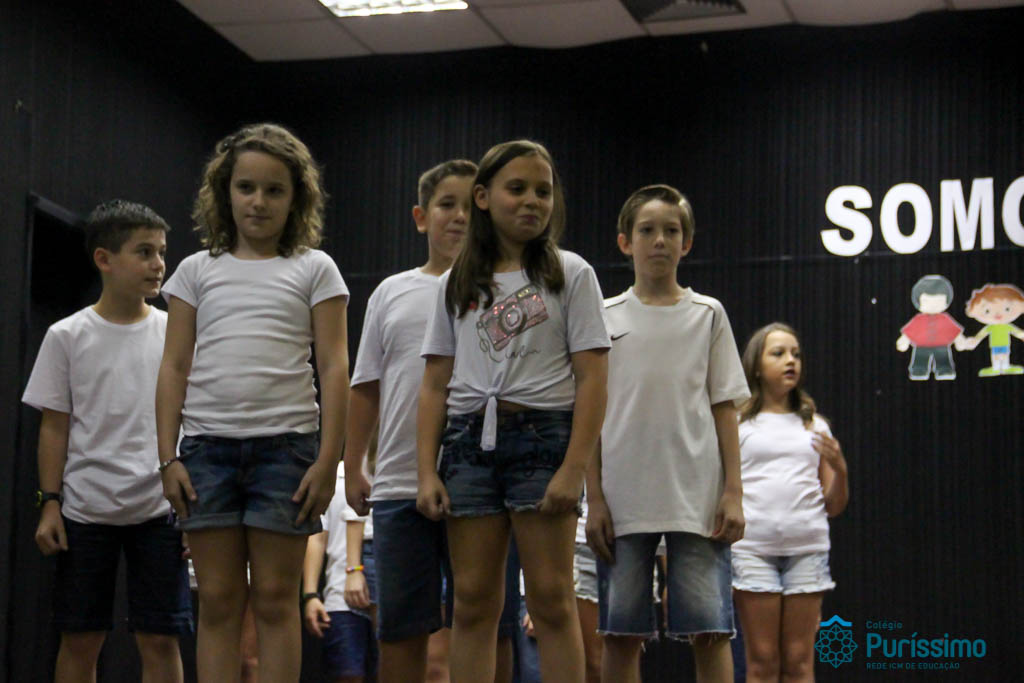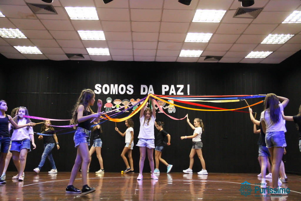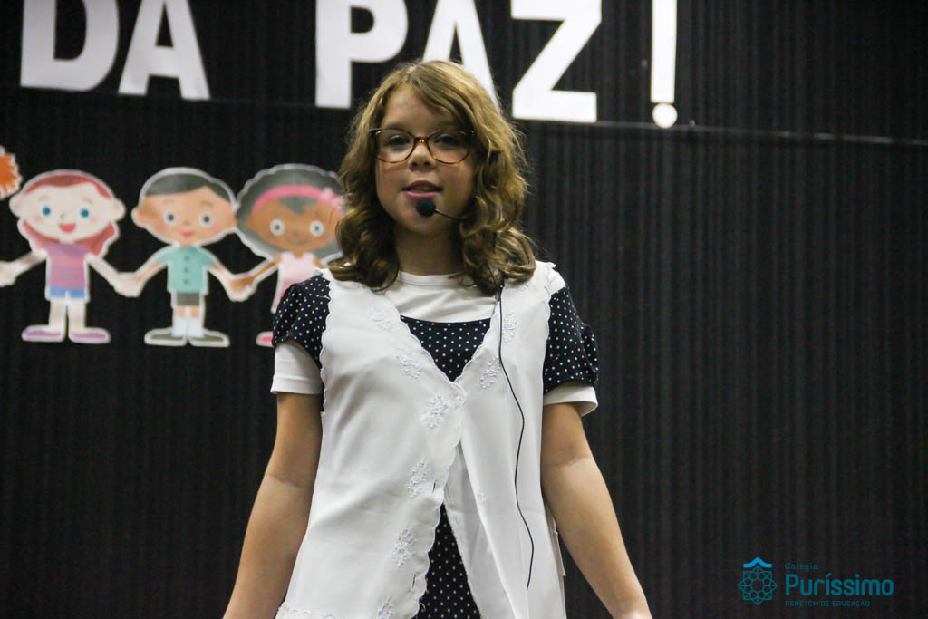 Os 5ºs anos se apresentaram na última sexta-feira, 06/04, e falaram sobre a paz. Frisando os tempos de violência o qual estamos vivendo, eles pregaram a empatia e a vontade de querer um mundo melhor para o futuro das crianças. Deixaram uma mensagem linda sobre o mundo que deveríamos lutar para ter. Vamos “perder mais tempo”