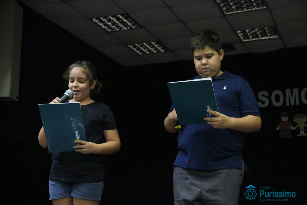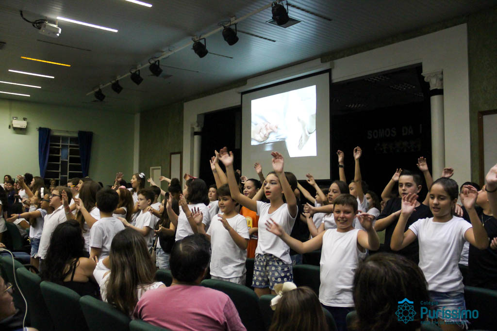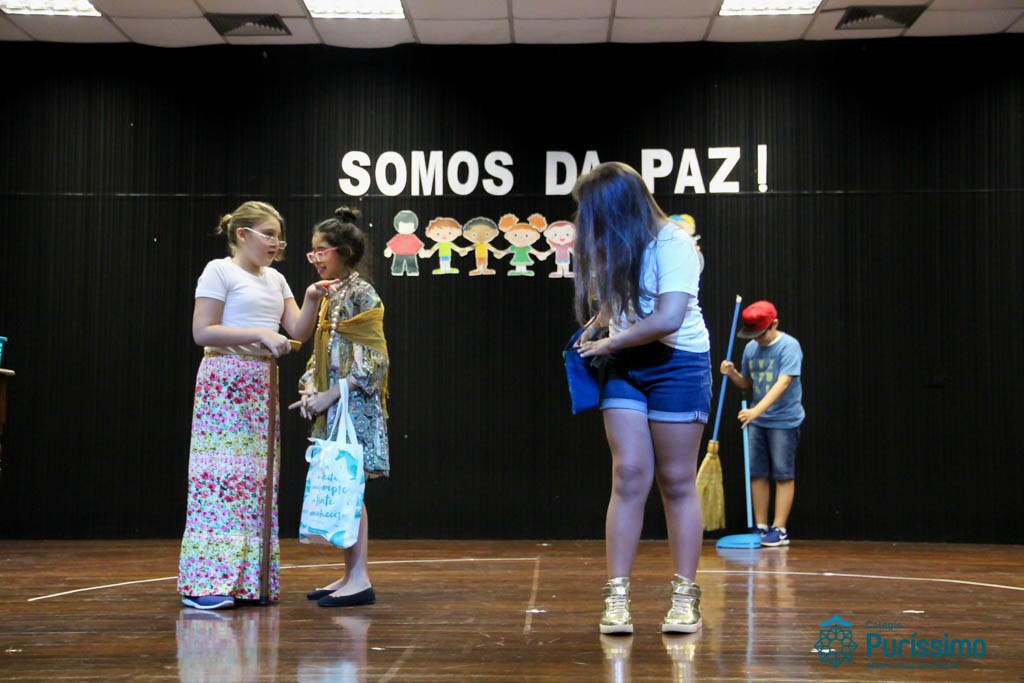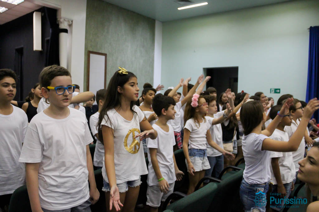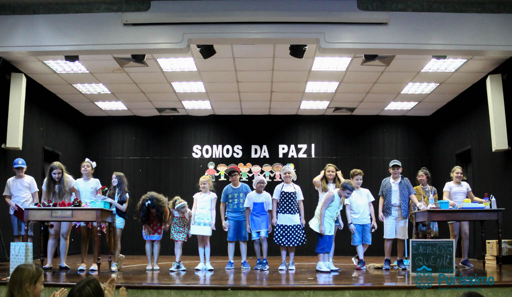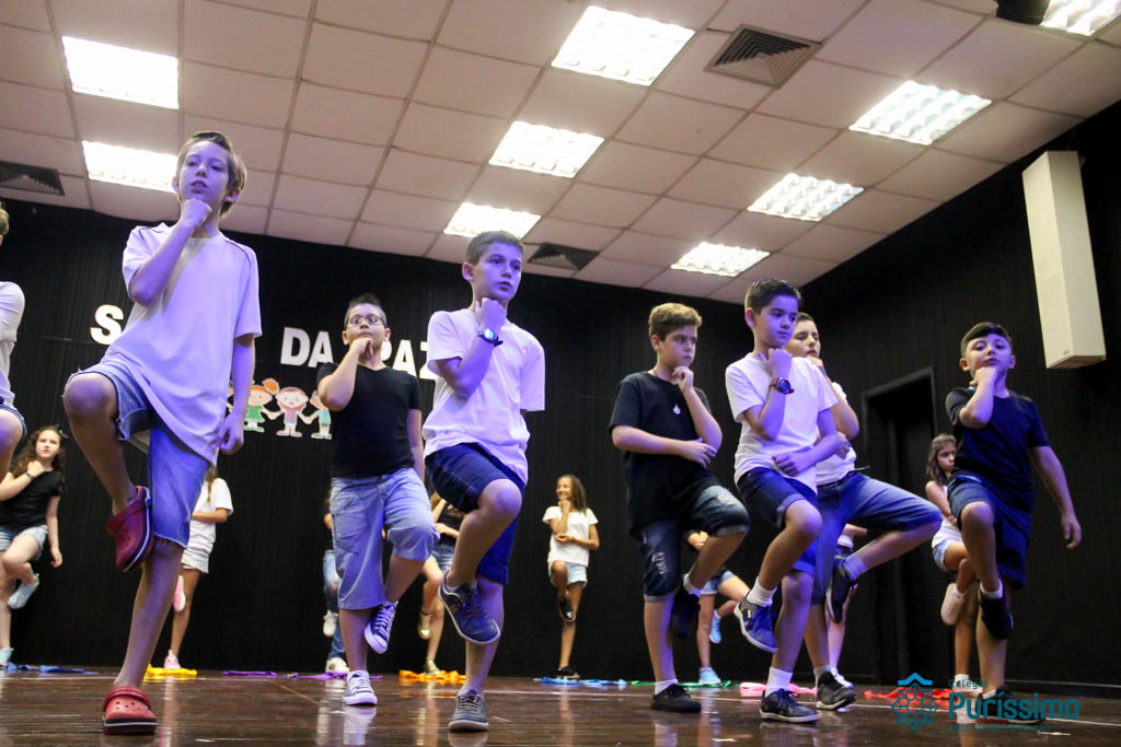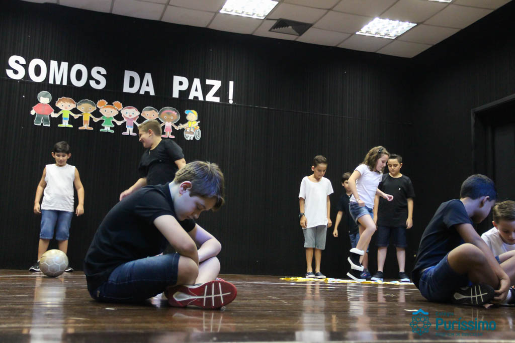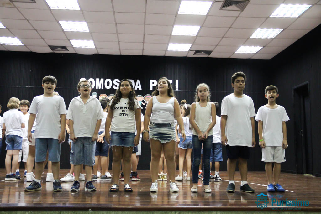 Os 5ºs anos se apresentaram na última sexta-feira, 06/04, e falaram sobre a paz. Frisando os tempos de violência o qual estamos vivendo, eles pregaram a empatia e a vontade de querer um mundo melhor para o futuro das crianças. Deixaram uma mensagem linda sobre o mundo que deveríamos lutar para ter. Vamos “perder mais tempo”