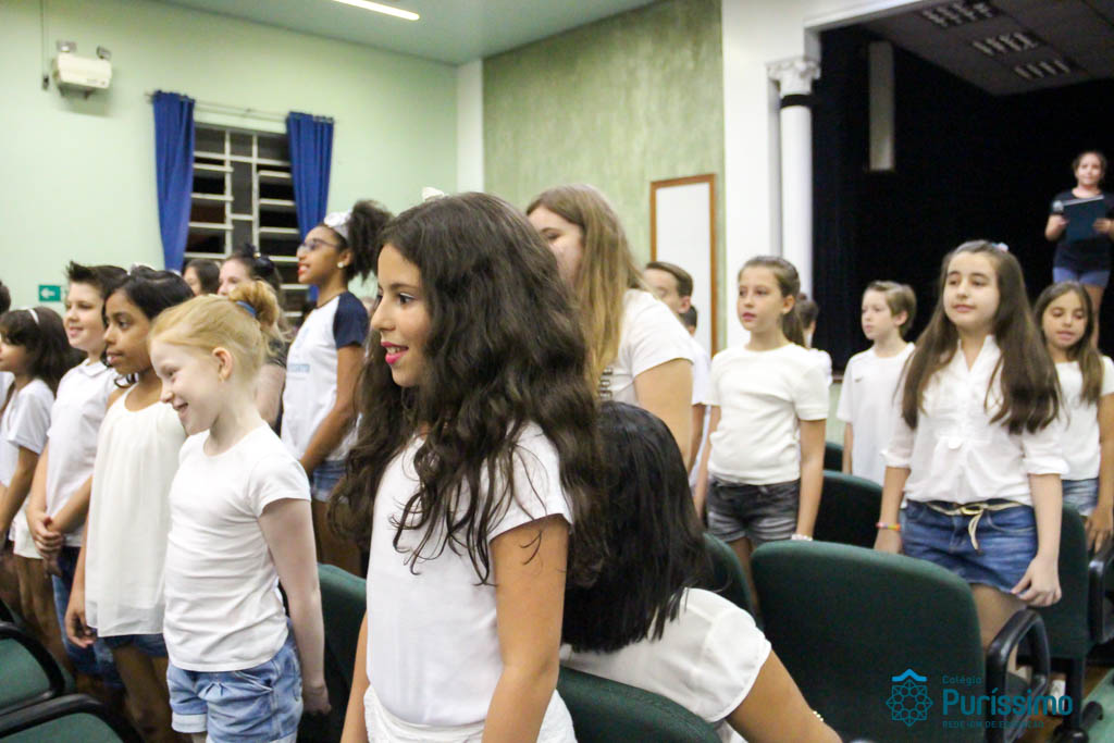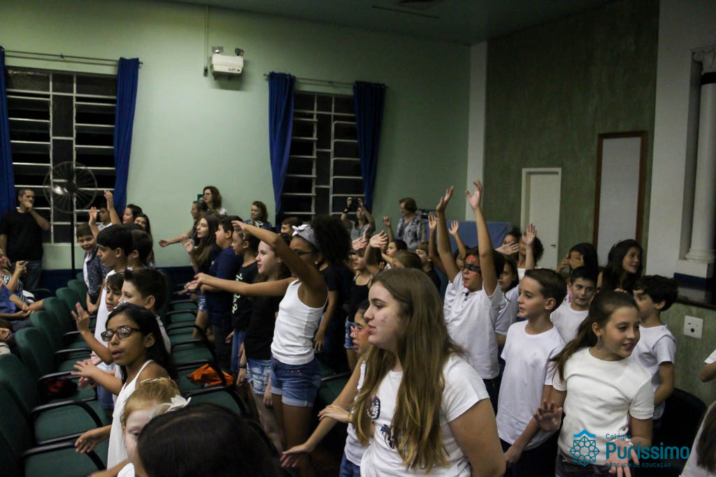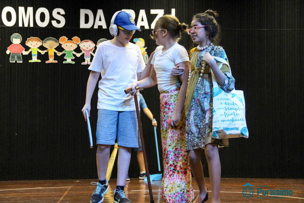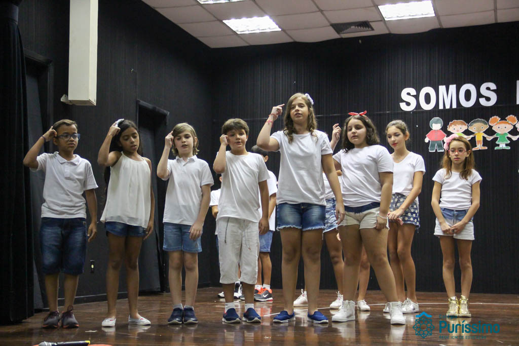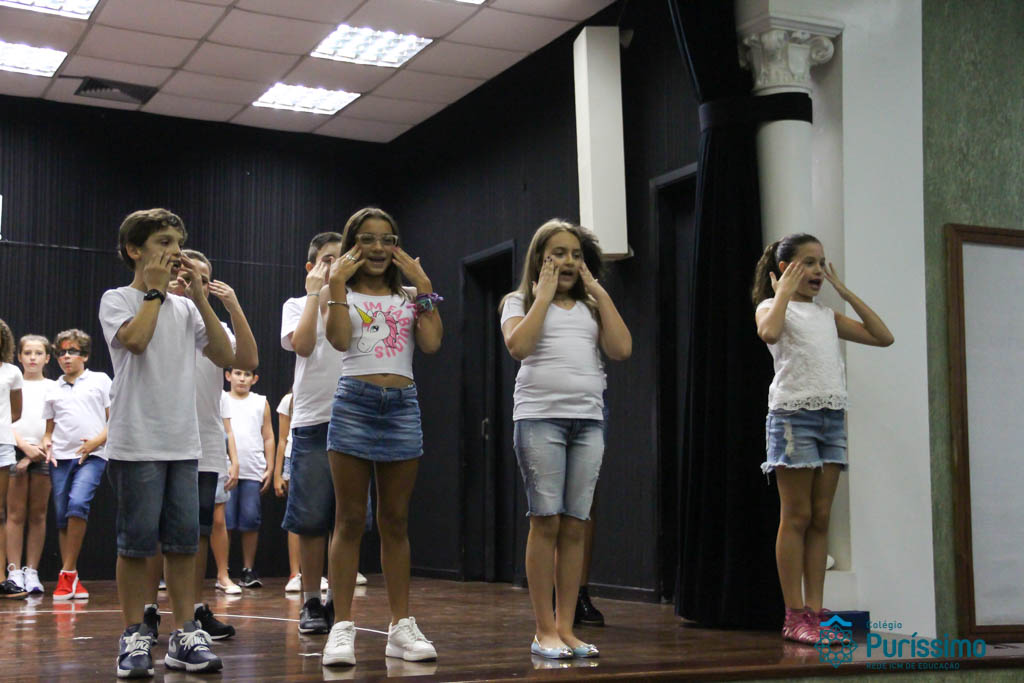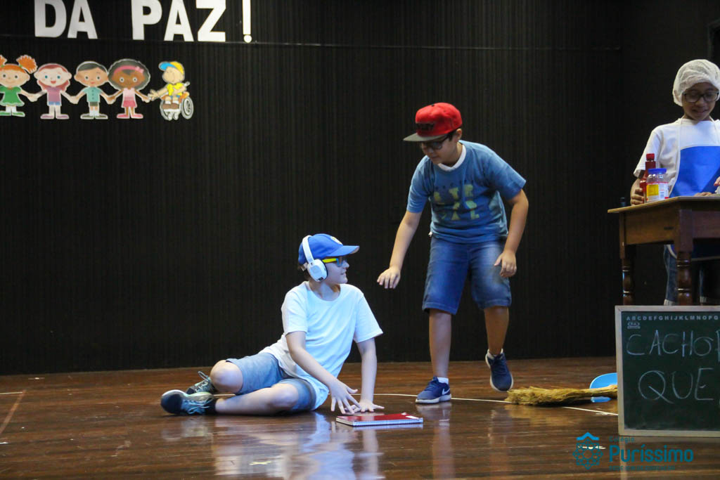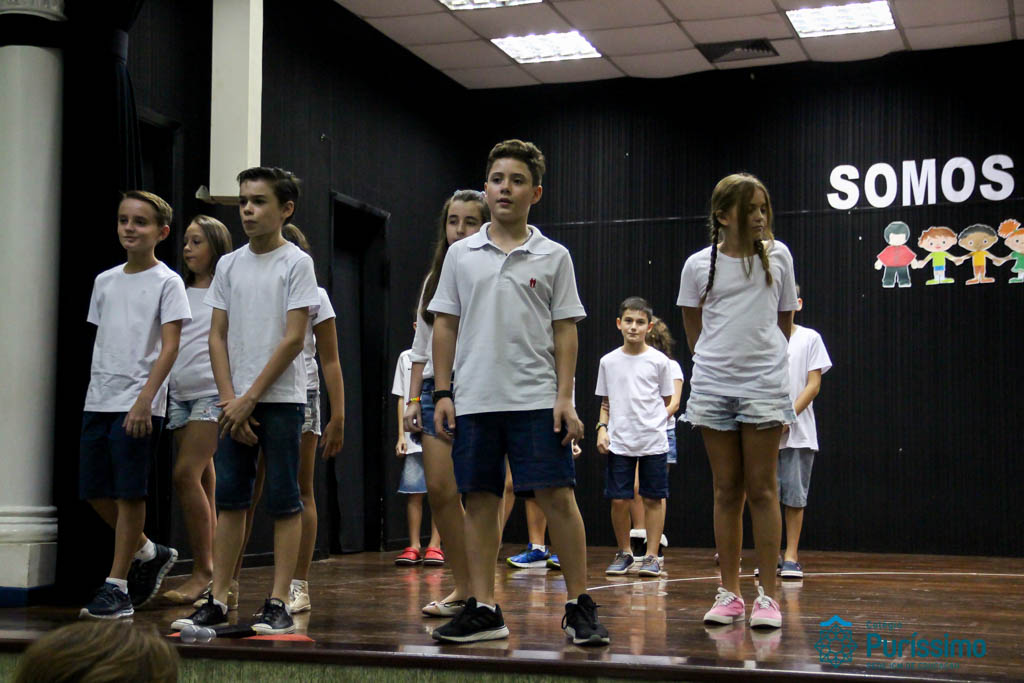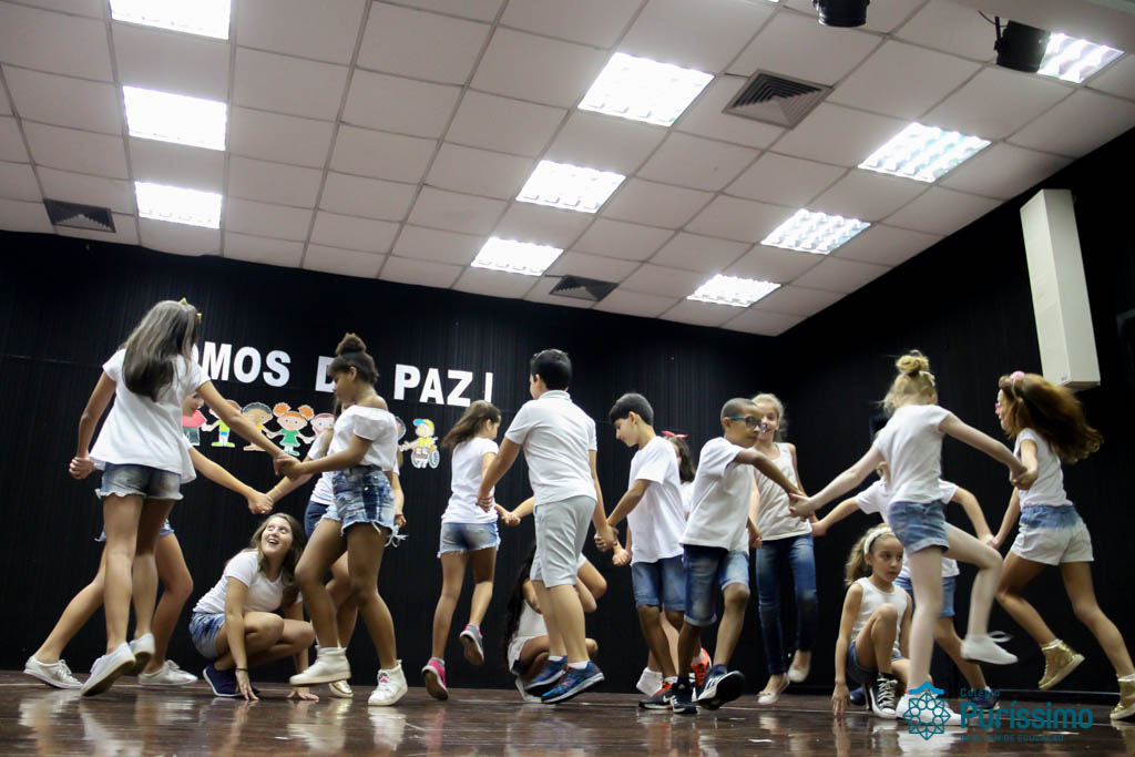Os 5ºs anos se apresentaram na última sexta-feira, 06/04, e falaram sobre a paz. Frisando os tempos de violência o qual estamos vivendo, eles pregaram a empatia e a vontade de querer um mundo melhor para o futuro das crianças. Deixaram uma mensagem linda sobre o mundo que deveríamos lutar para ter. Vamos “perder mais tempo”
