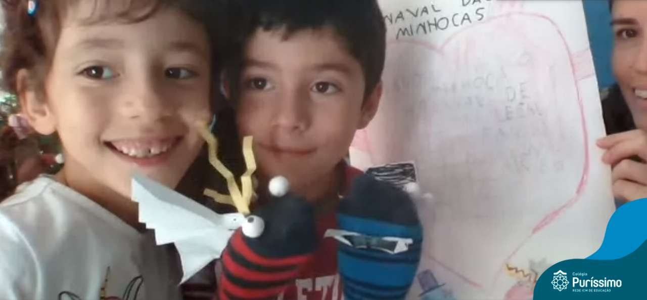 Os alunos apresentaram cantigas populares, contaram histórias, dançaram ou cantaram uma cantiga, declamaram poemas, fizeram poemas autorais, pintaram e apresentaram teatro com fantoches dos personagens da cantiga!