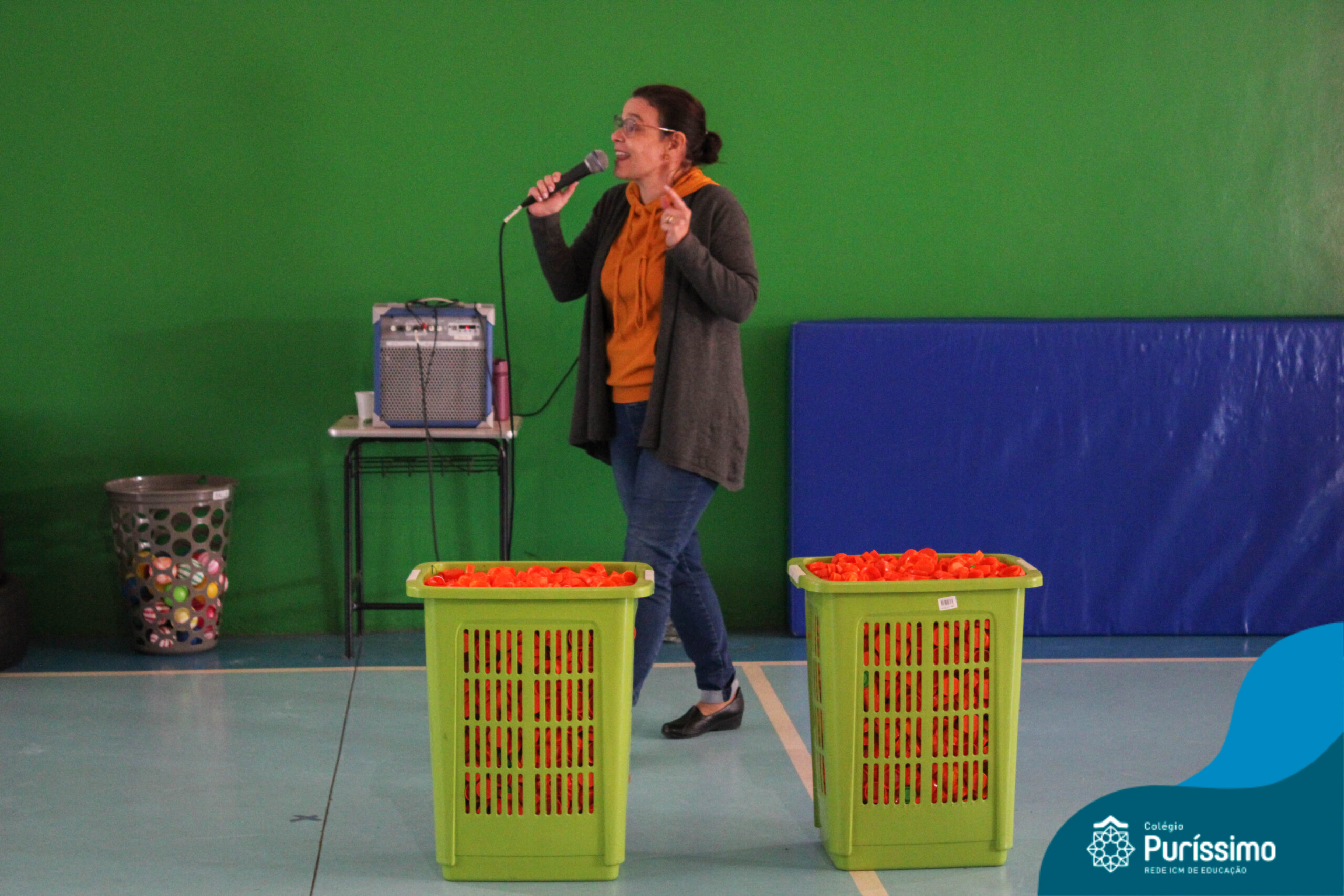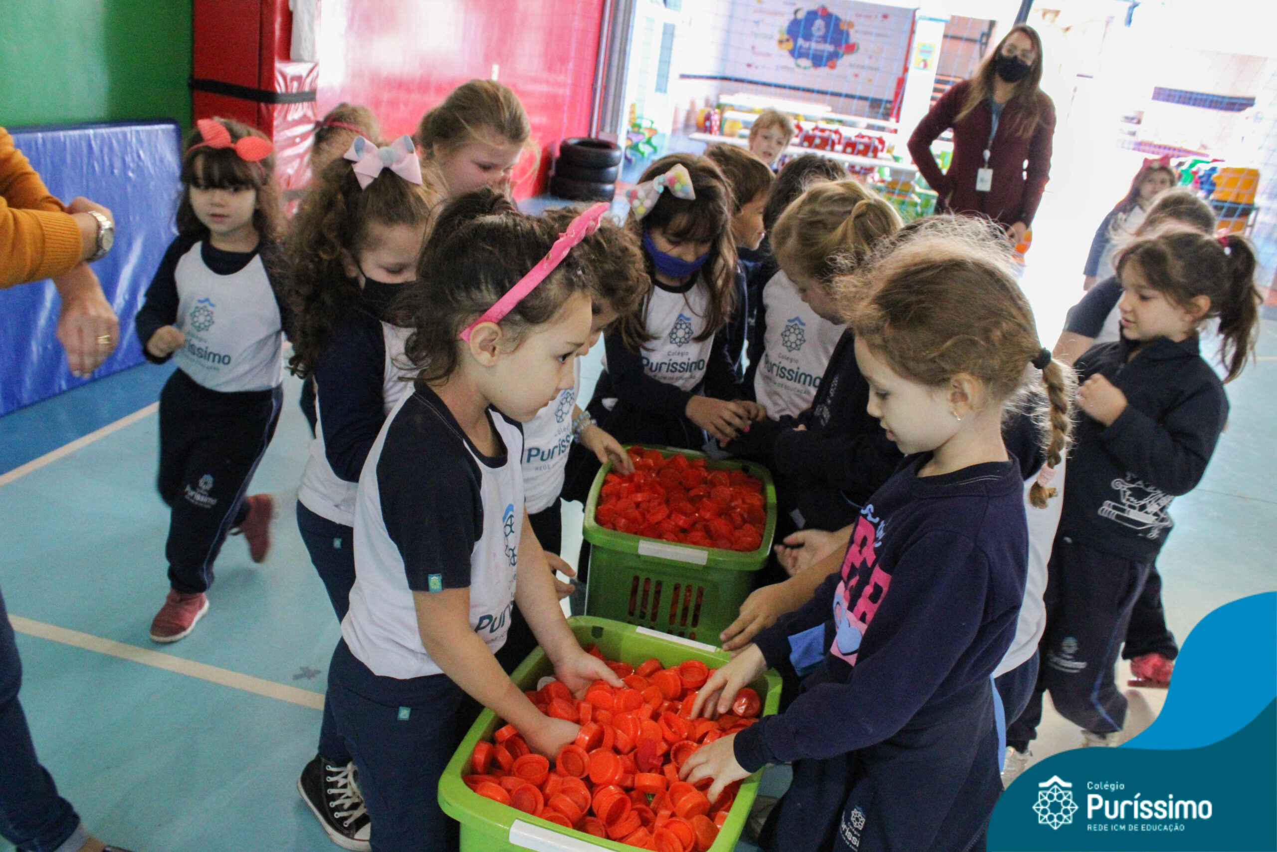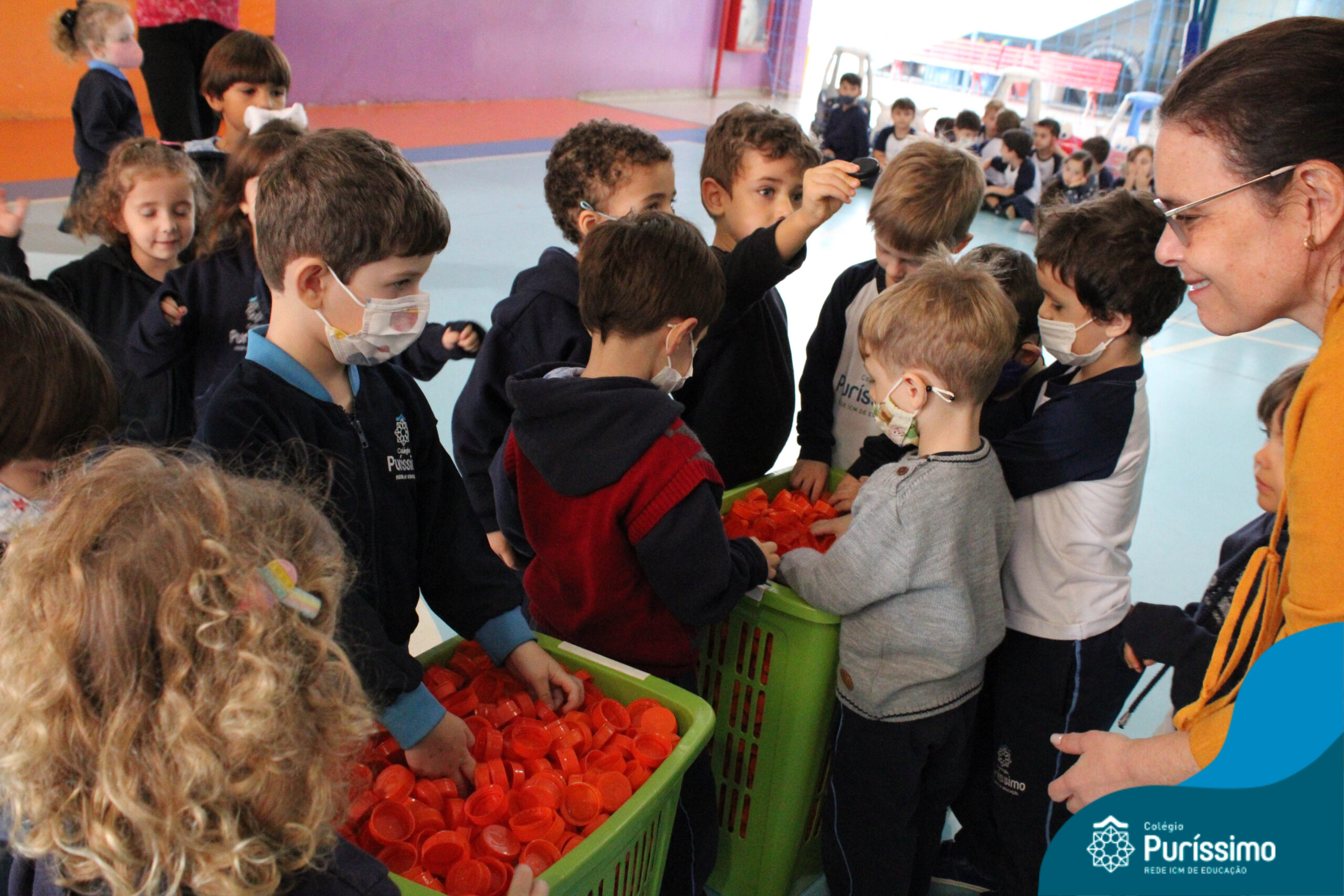Durante o primeiro semestre de 2022, os alunos do Berçário ao 1º ano EF, turno estendido e integral, arrecadaram tampinhas plásticas para doação.
