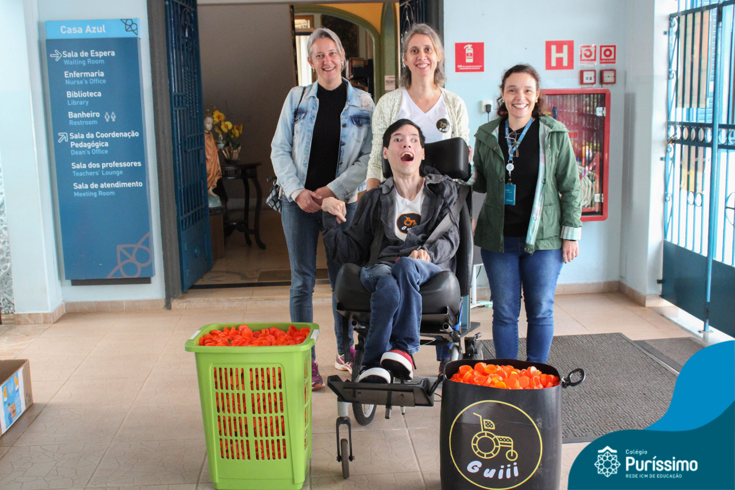 Luís Guilherme da Silva é irmão de um dos alunos do Colégio e, através das tampinhas arrecadas, consegue vendê-las para comprar cadeiras de rodas para doar aos necessitados, sejam esses crianças ou adultos.