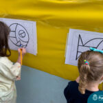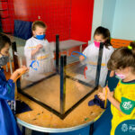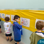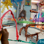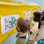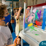 Para finalizar o projeto, a professora Luciana organizou diferentes pinturas, uma com tinta no papel e a outra no plástico filme! Além de aprenderem e se divertirem, as crianças viraram verdadeiros artistas!