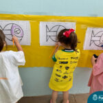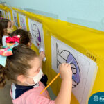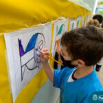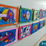 As crianças do Pré N1 estudaram sobre as obras do pintor Romero Britto no projeto de artes.