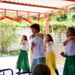 Desse modo, nossos alunos prepararam dois momentos significativos, no primeiro, foi feita a representação da dança dos 200 anos de Bárbara Maix, um momento importante, pois durante o bicentenário, o Centro de Convivência foi um local de ação promovida pelo Colégio.
