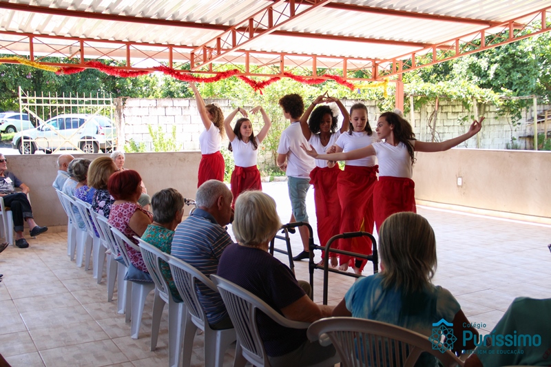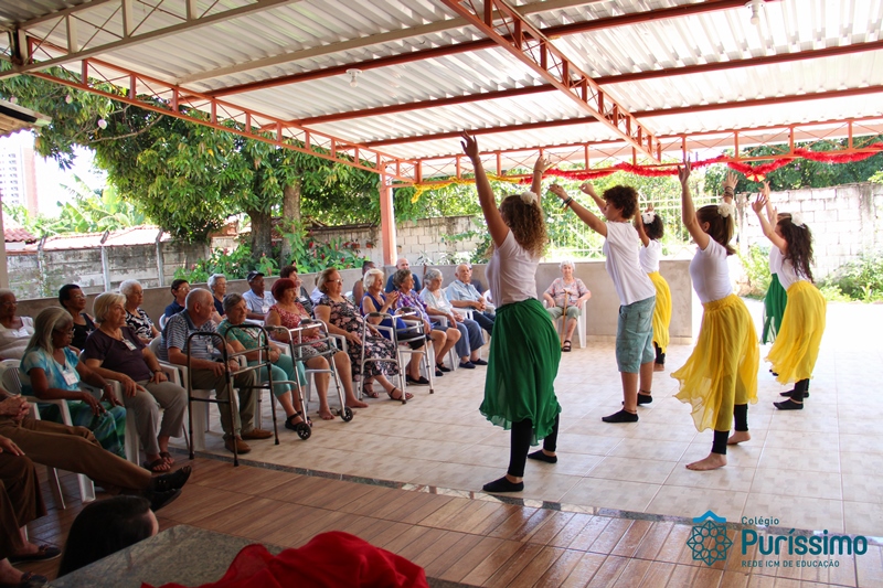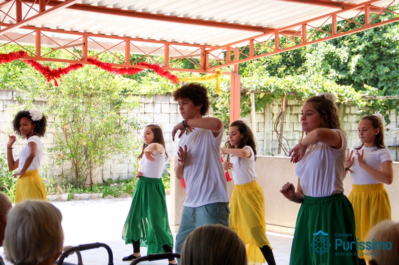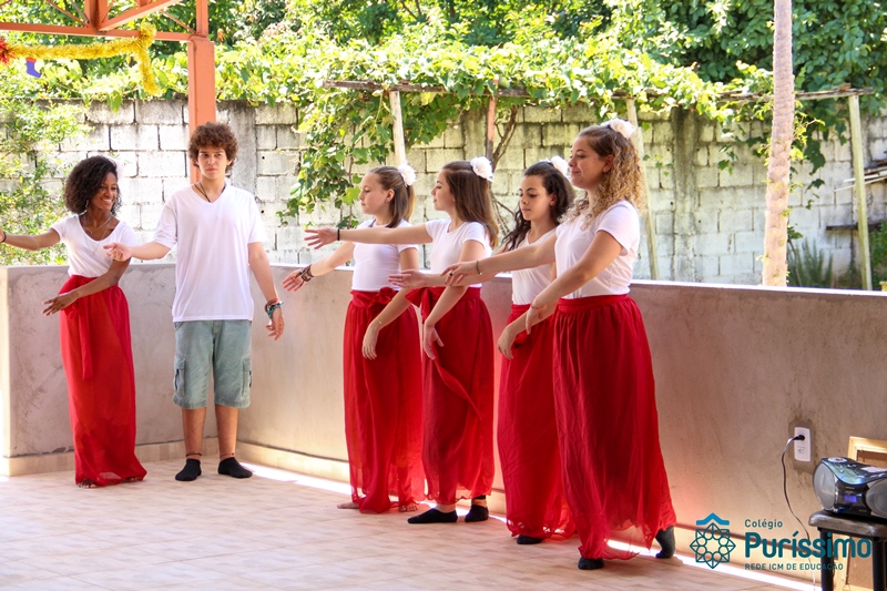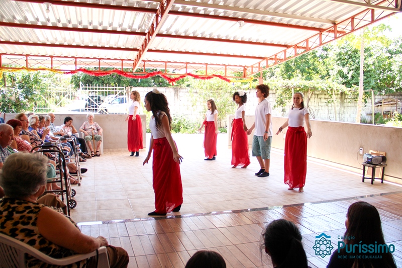 Desse modo, nossos alunos prepararam dois momentos significativos, no primeiro, foi feita a representação da dança dos 200 anos de Bárbara Maix, um momento importante, pois durante o bicentenário, o Centro de Convivência foi um local de ação promovida pelo Colégio.