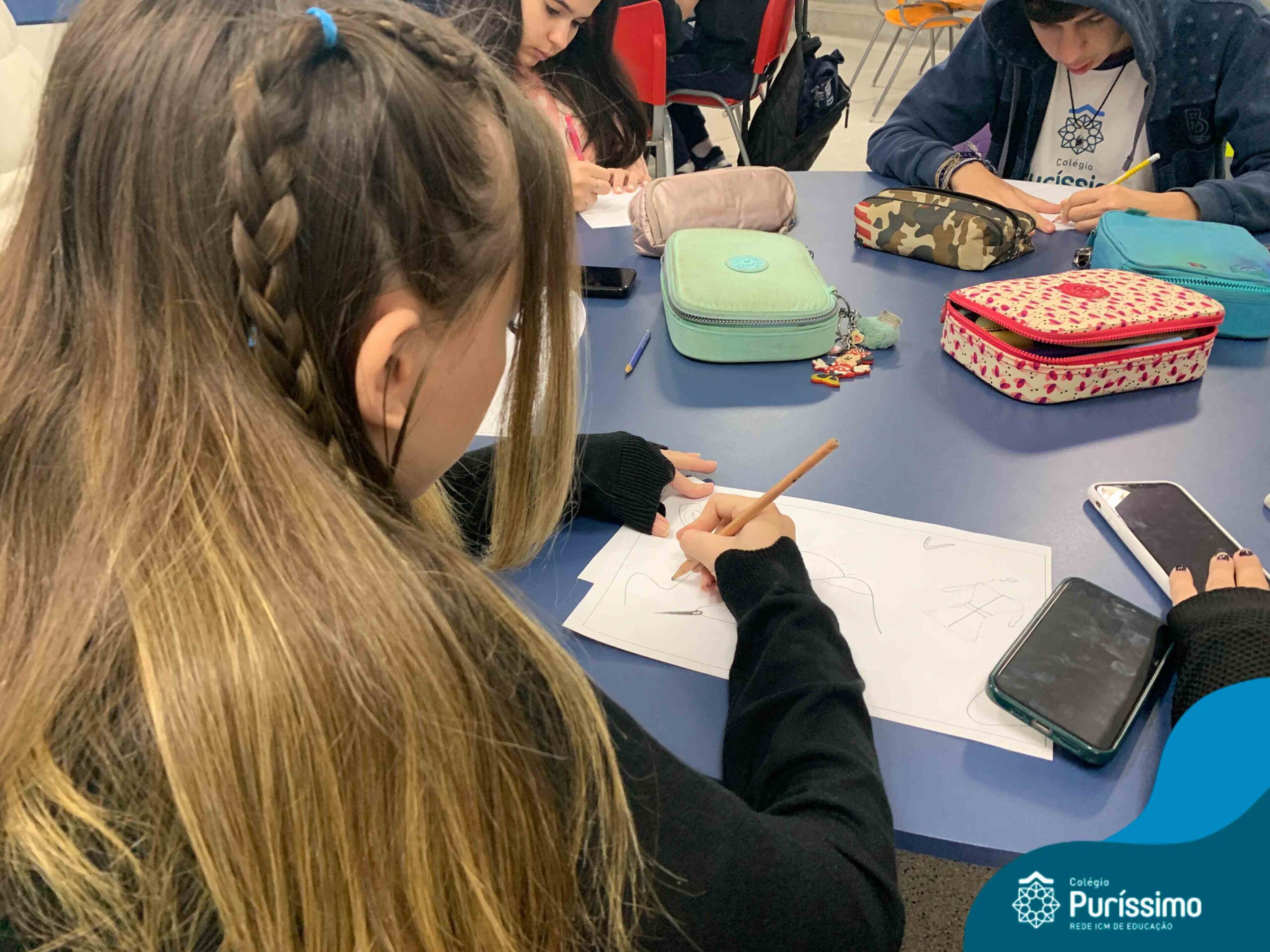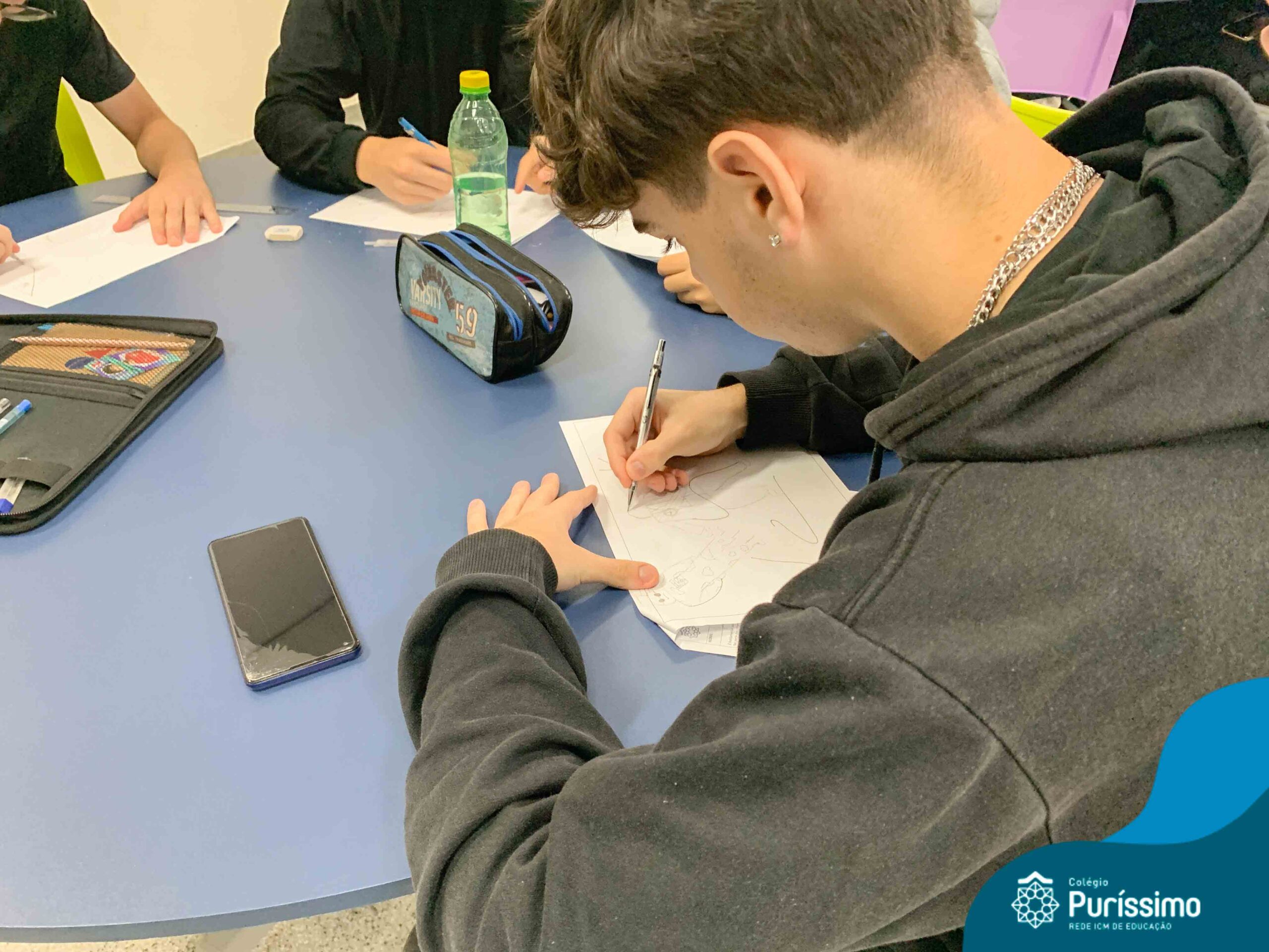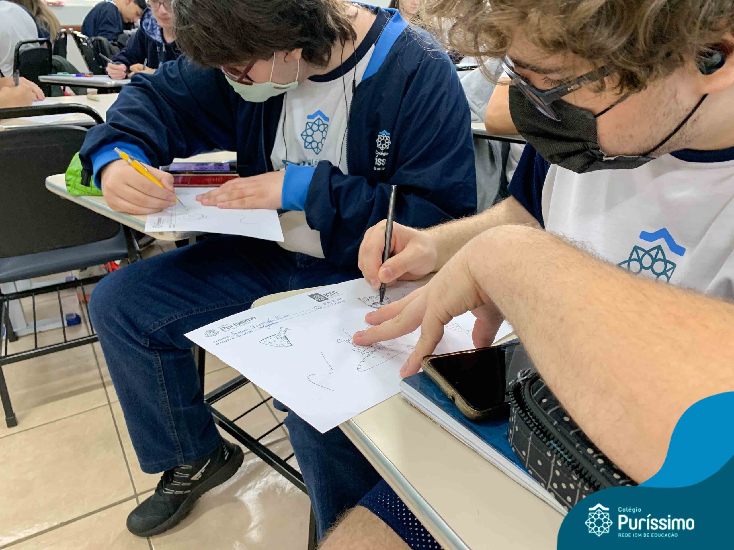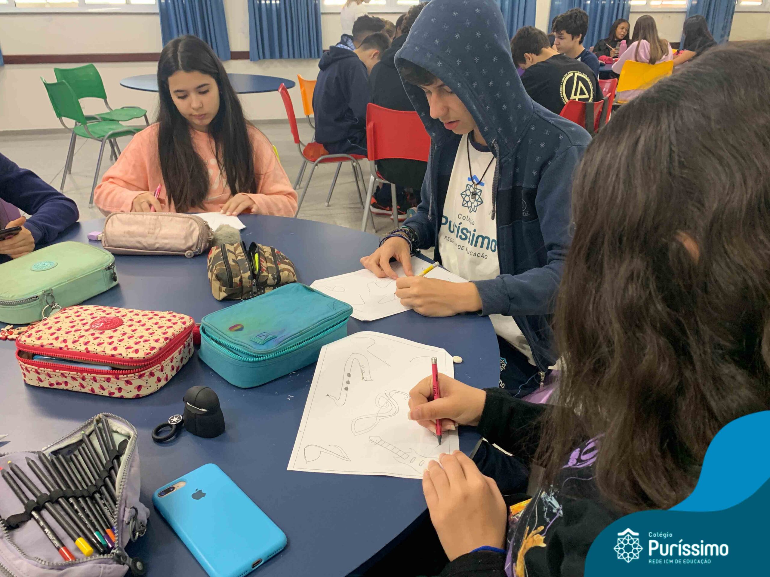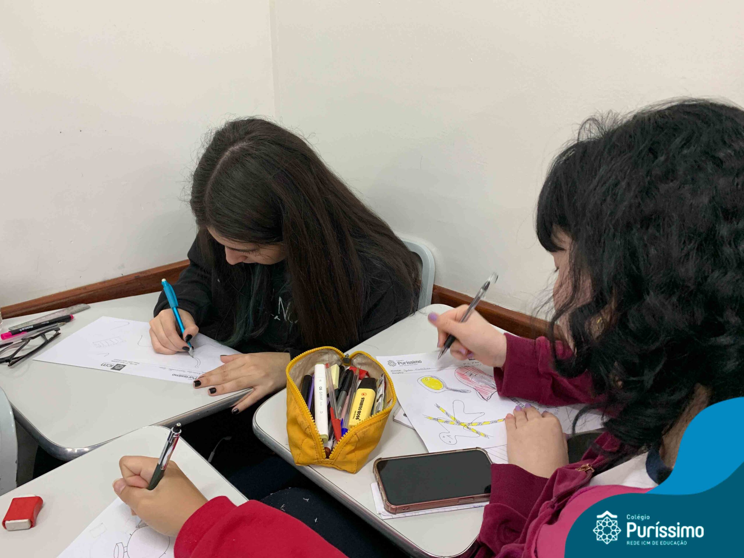Para os 9º anos e as 2º séries EM os alunos tiveram que, através de traços abstratos, desenhar qual VOCAÇÃO gostariam de ter ou seguir no futuro, seja ela pessoal ou profissional.