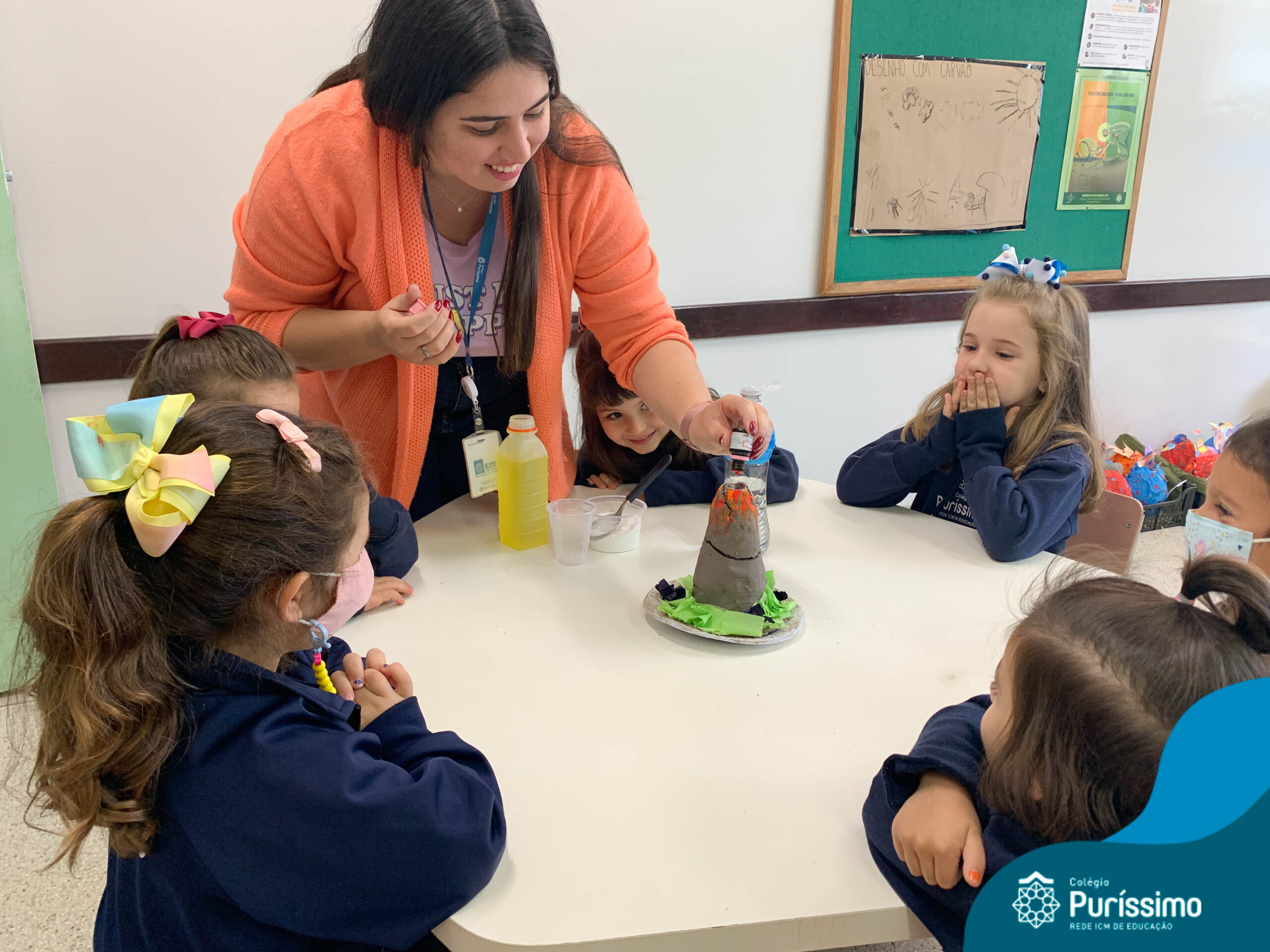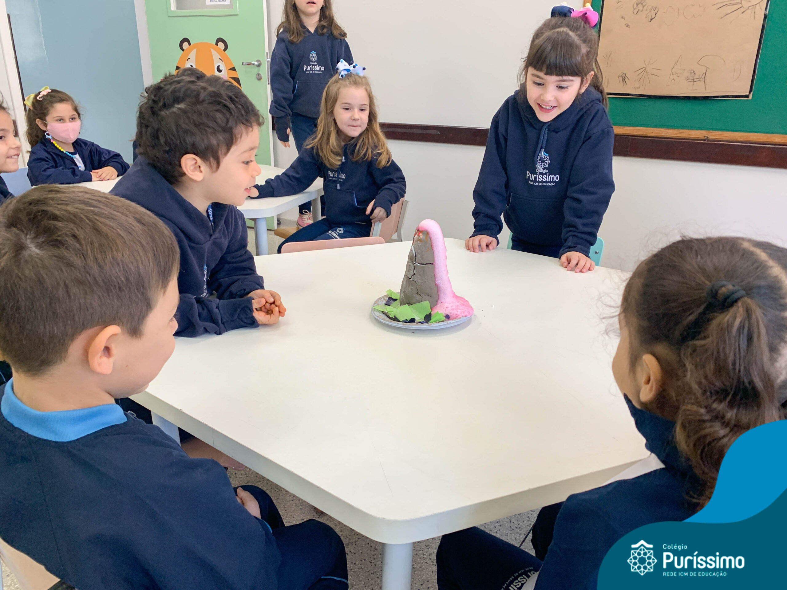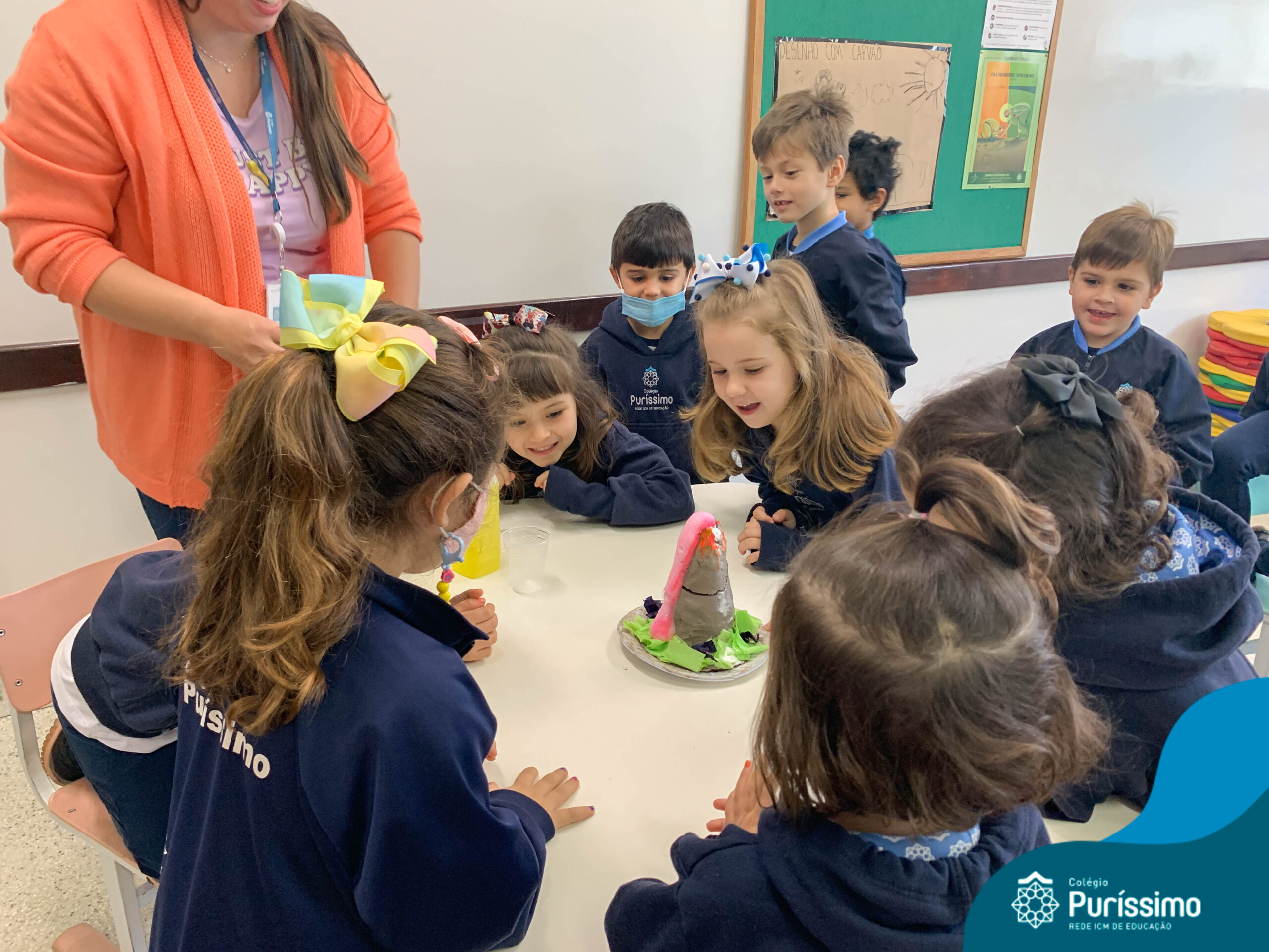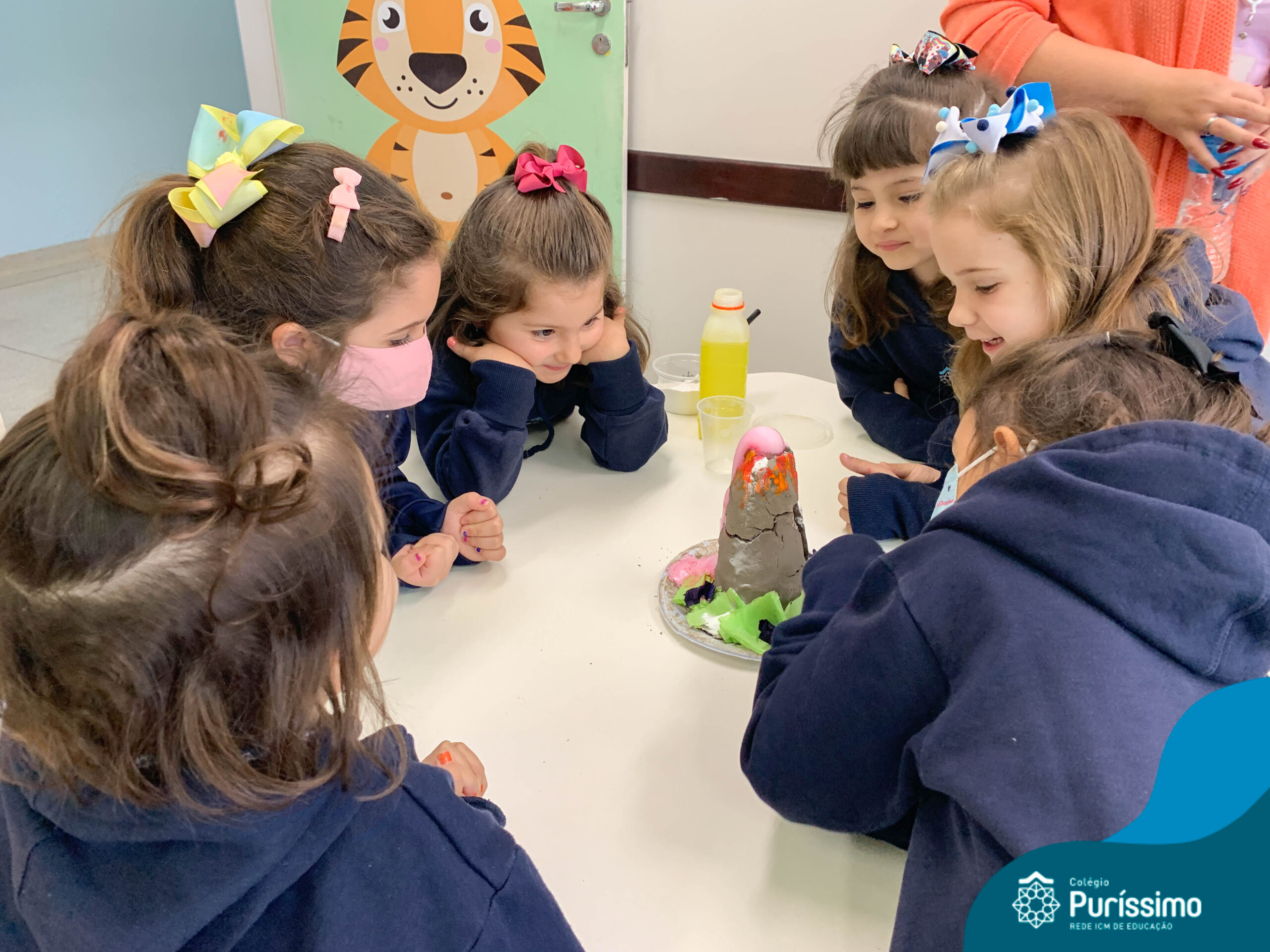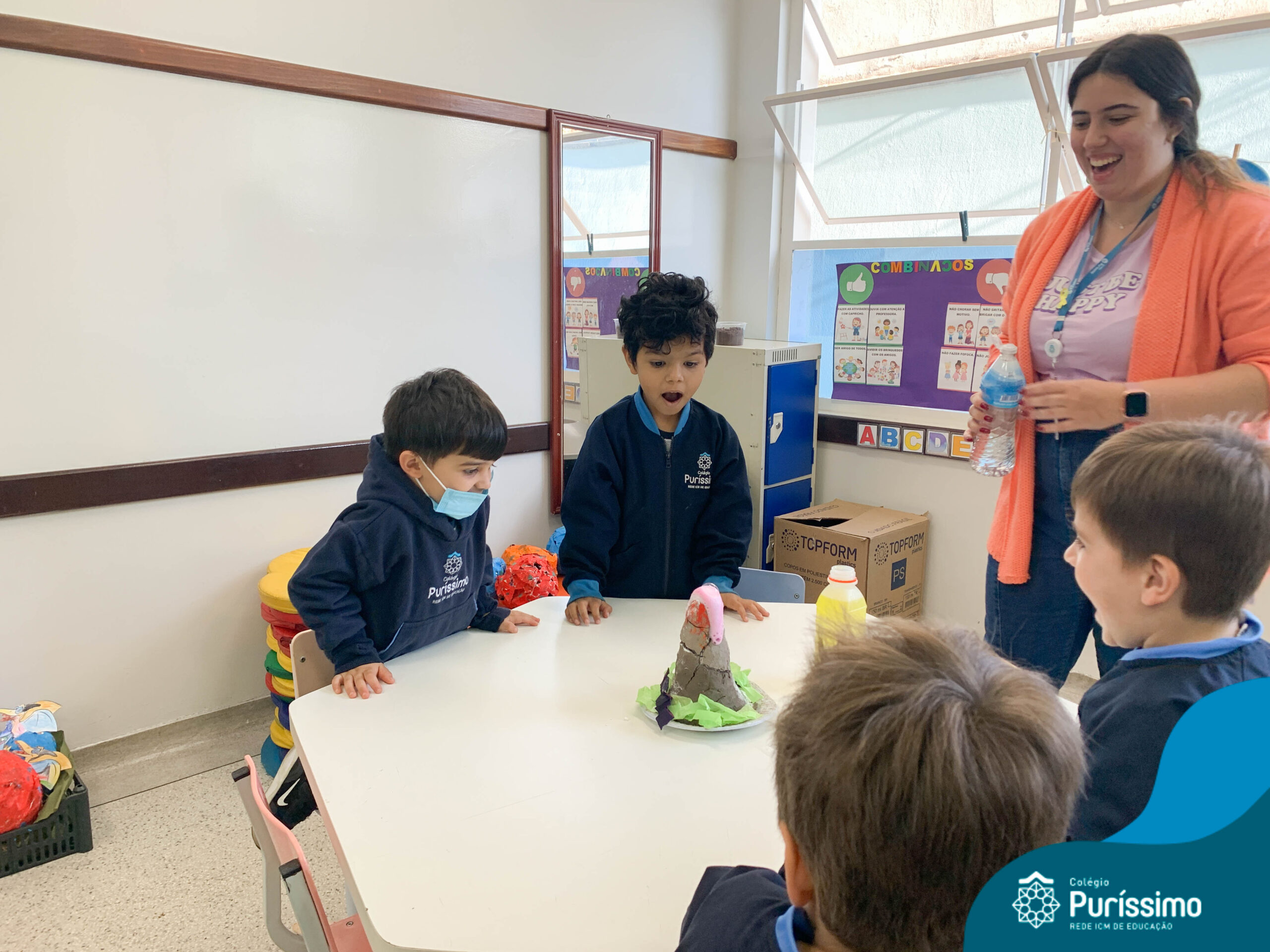 Eles desbravaram a terra em busca de fósseis, construíram um vulcão, sobraram cores sob uma tela e pintaram com gelo para vê-lo se tornar água novamente!