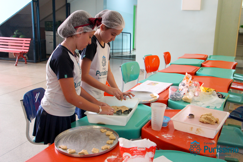 A professora Juliana Buoro, do 3º ano 3 Tarde, recebeu de presente da aluna Gabriela, bolachinhas que havia feito em casa com a mãe. Ao ver as bolachas, os alunos ficaram interessados e rapidamente pediram a receita.