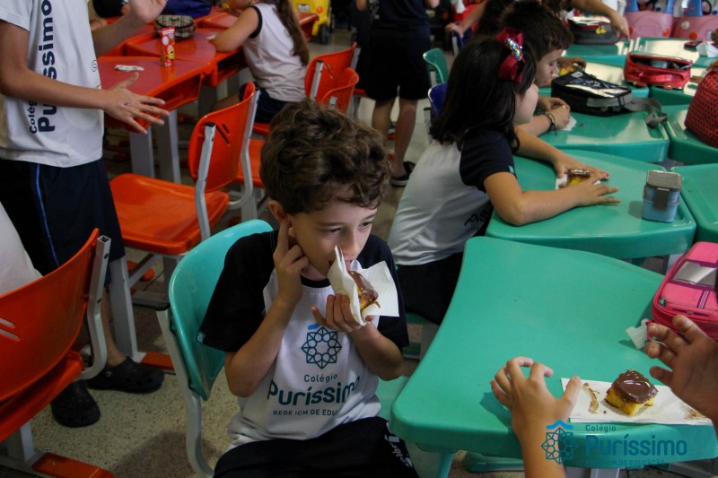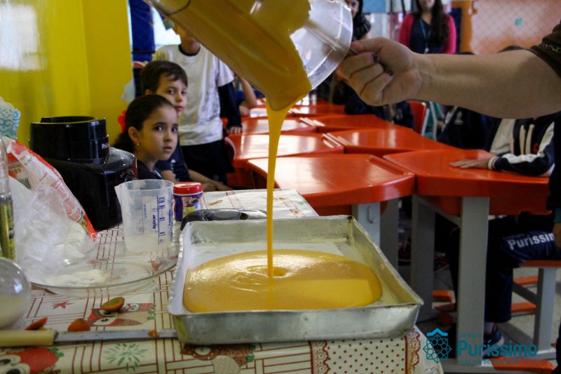 Foi um delicioso momento de diversão,uma vez que todos contribuíram na produção do bolo e, ao final, puderam saborear uma receita que leva em seus ingredientes uma parte da planta (raiz) que dá uma cor e um sabor especial à mesma!