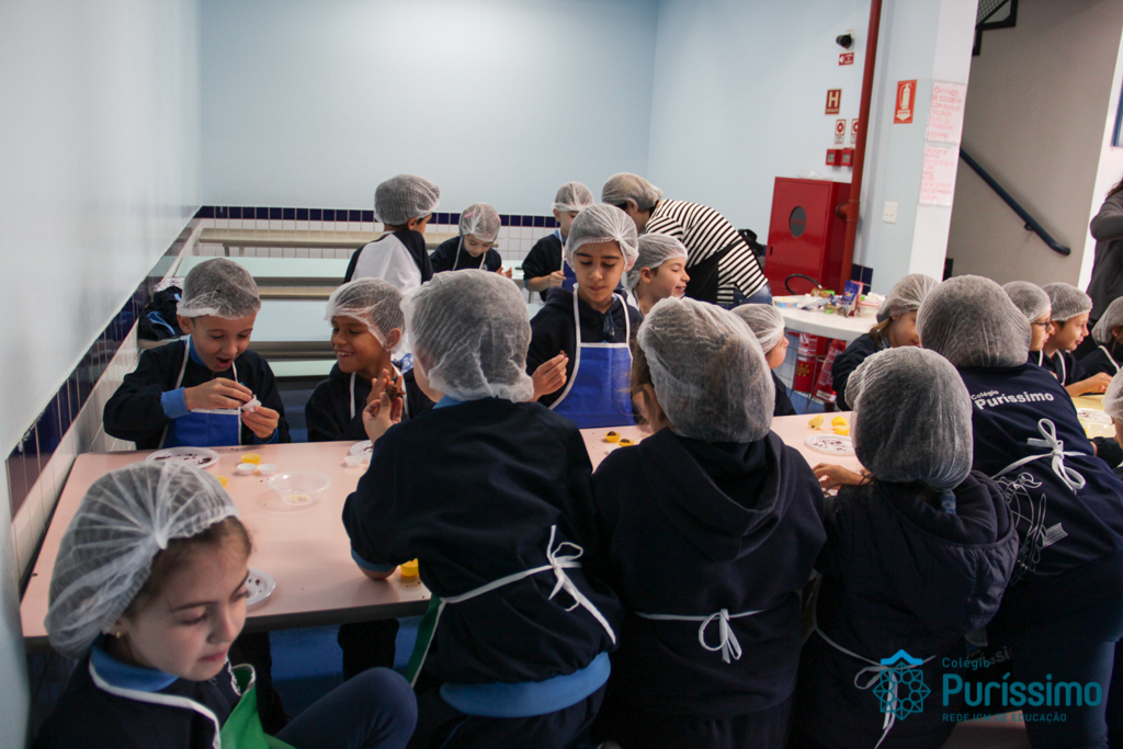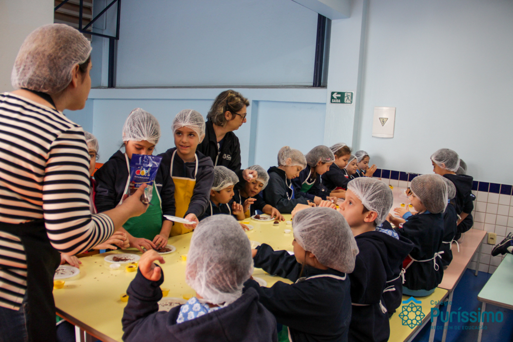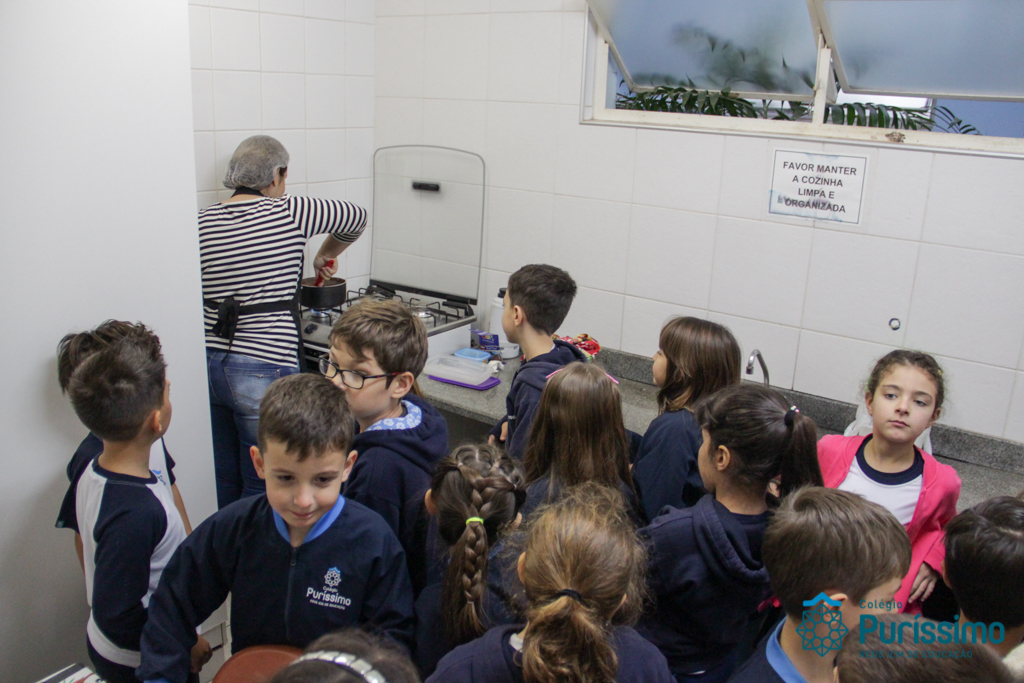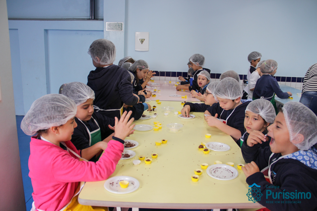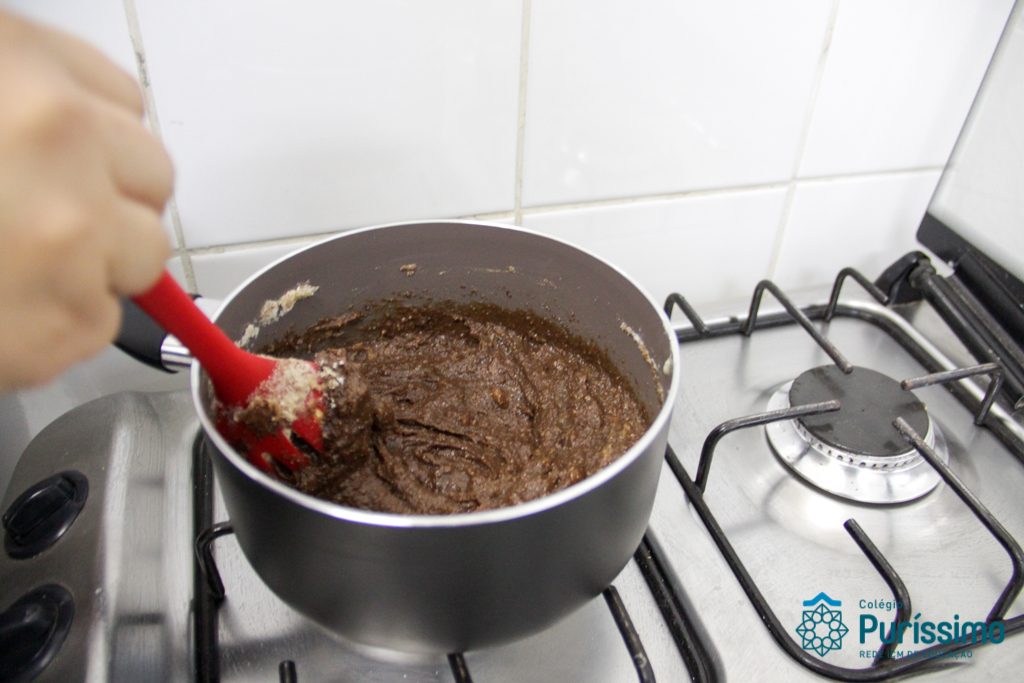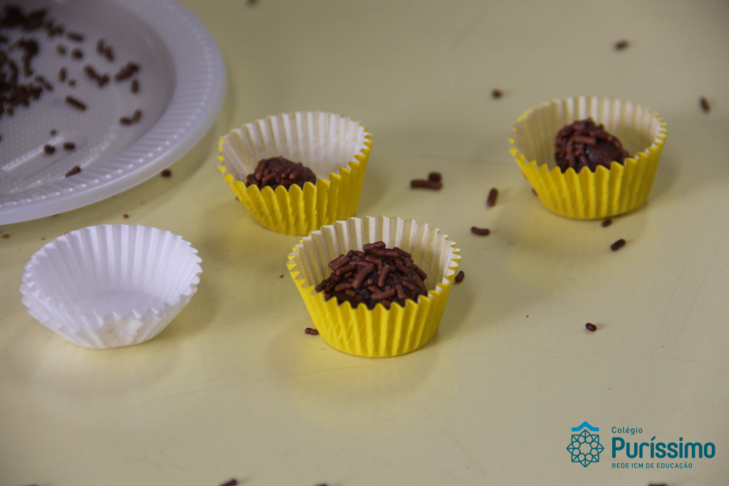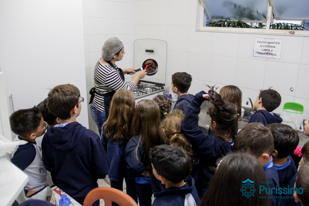 Para encerrar o projeto com o livro “Pé de planta”, no qual aprenderam a história e curiosidades sobre plantas, os alunos do 2º1 M fizeram um brigadeiro de mandioca junto com a mãe do aluno Mateus, a nutricionista Cíntia. As crianças que nunca haviam comido um brigadeiro tão diferente amaram a experiência e o gosto do doce!