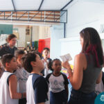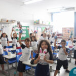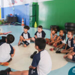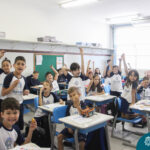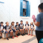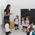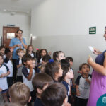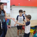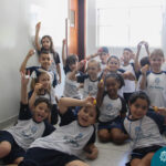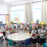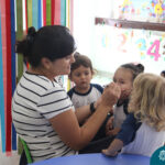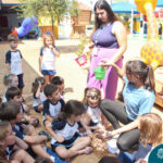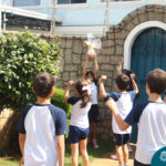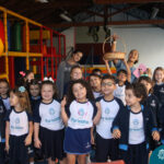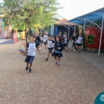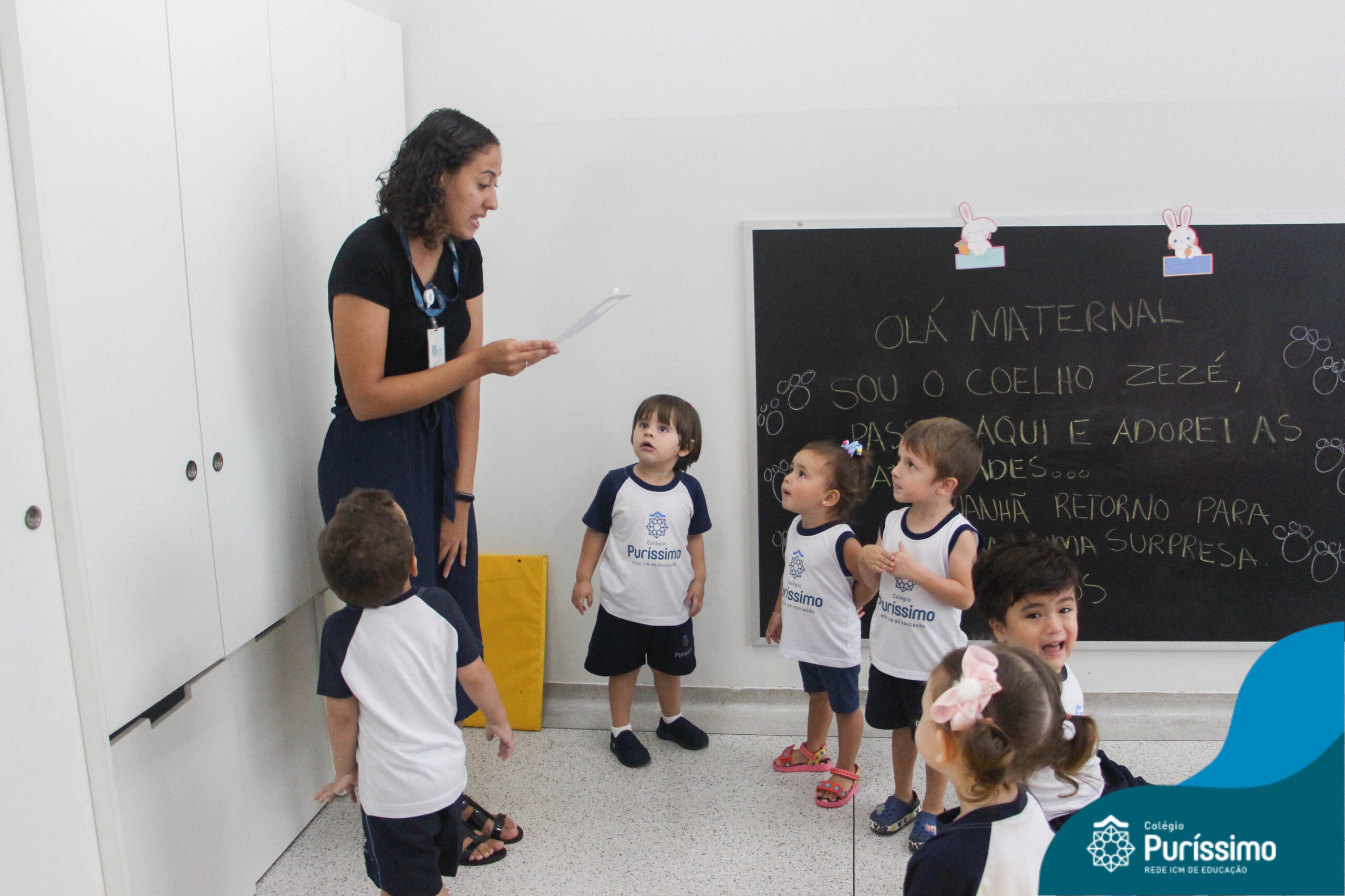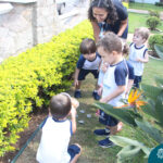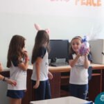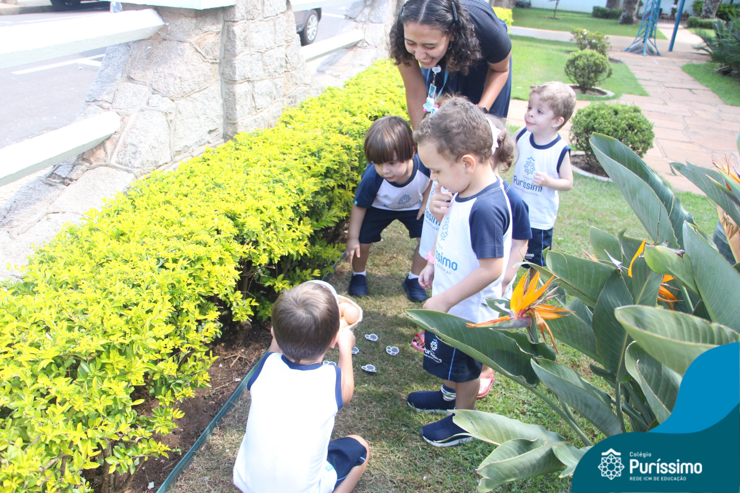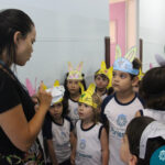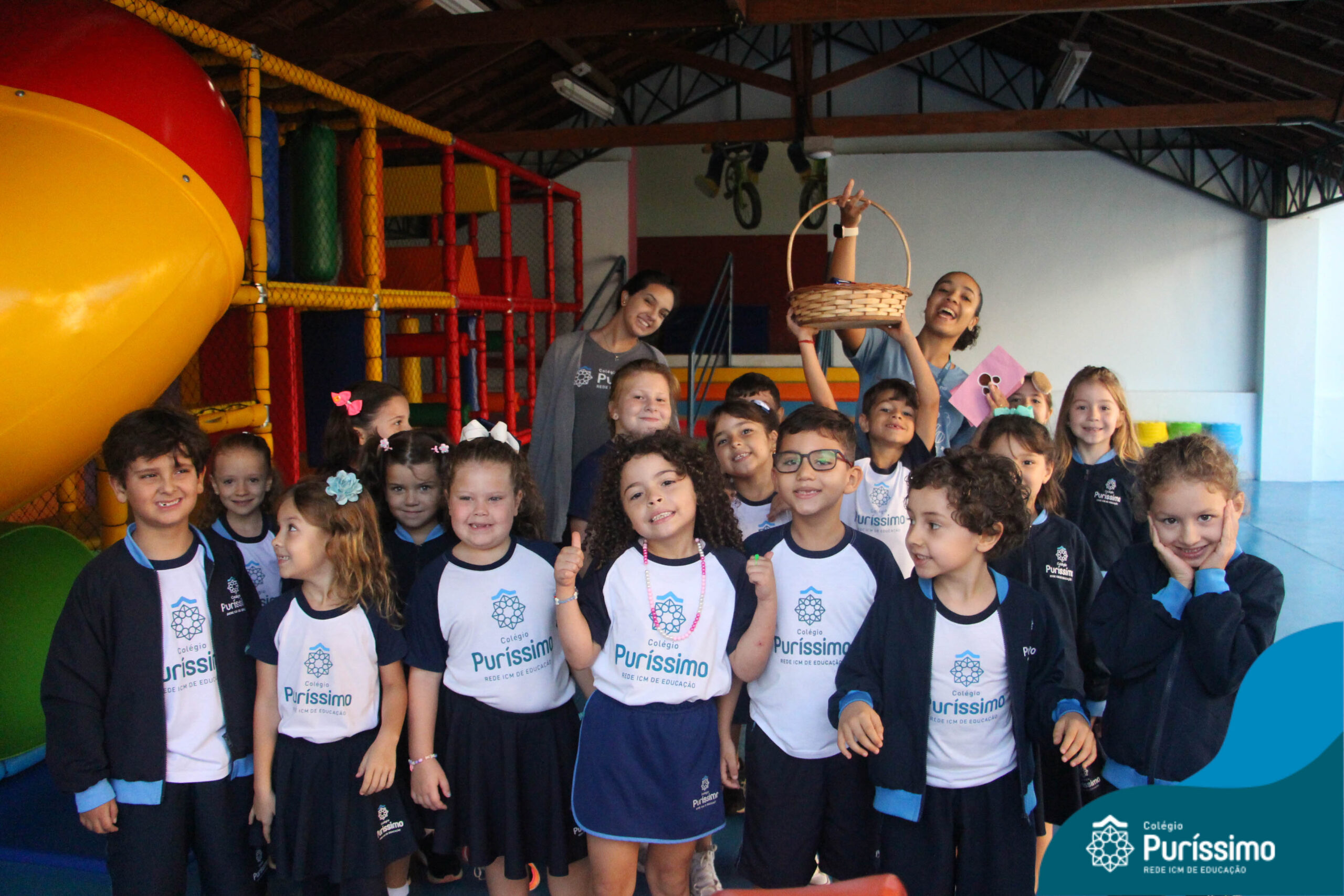Os alunos da Educação Infantil e do Ensino Fundamental – Anos Iniciais tiveram um dia bem agitado procurando os ovos deixados pelo coelhinho com pistas em português e em inglês também.