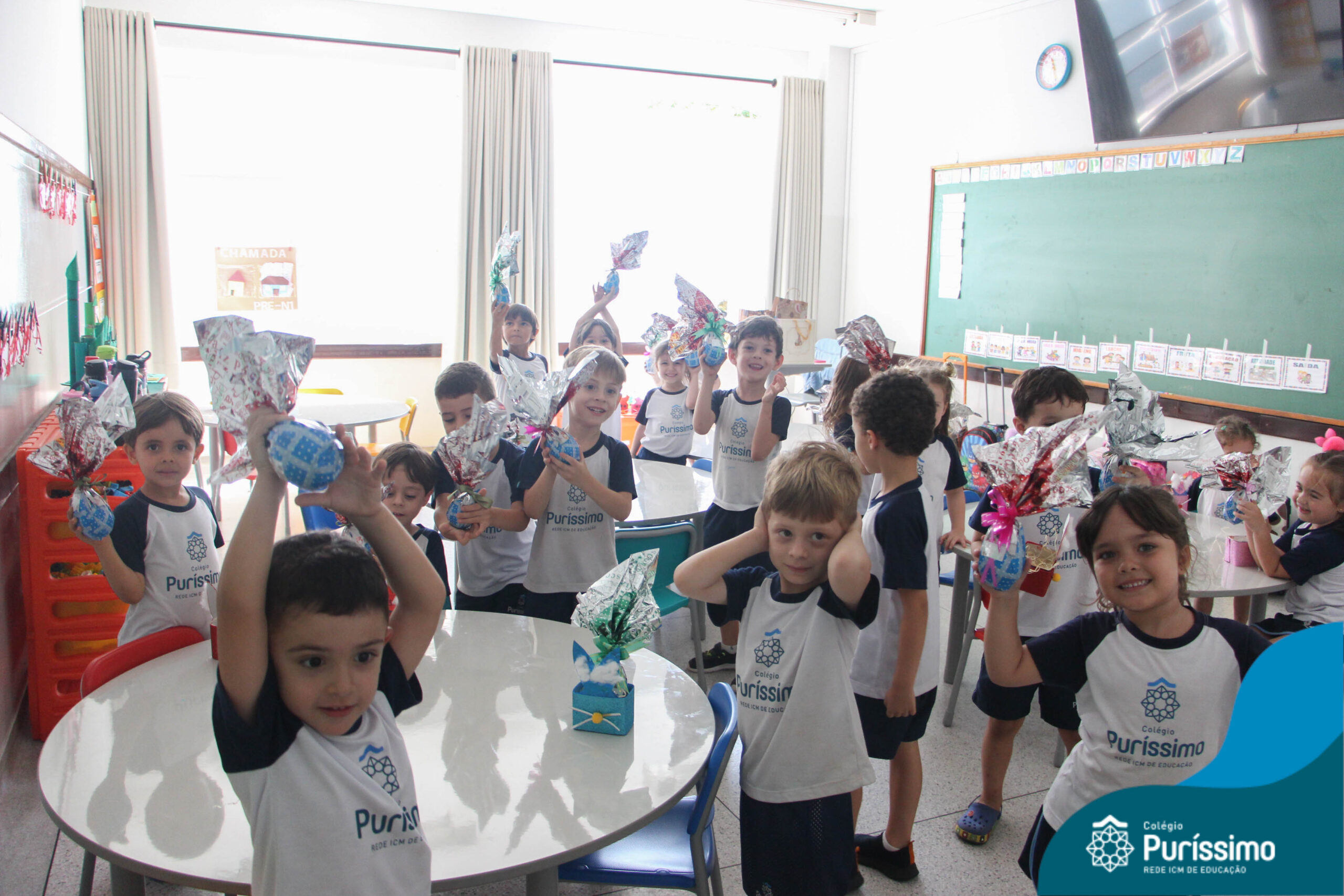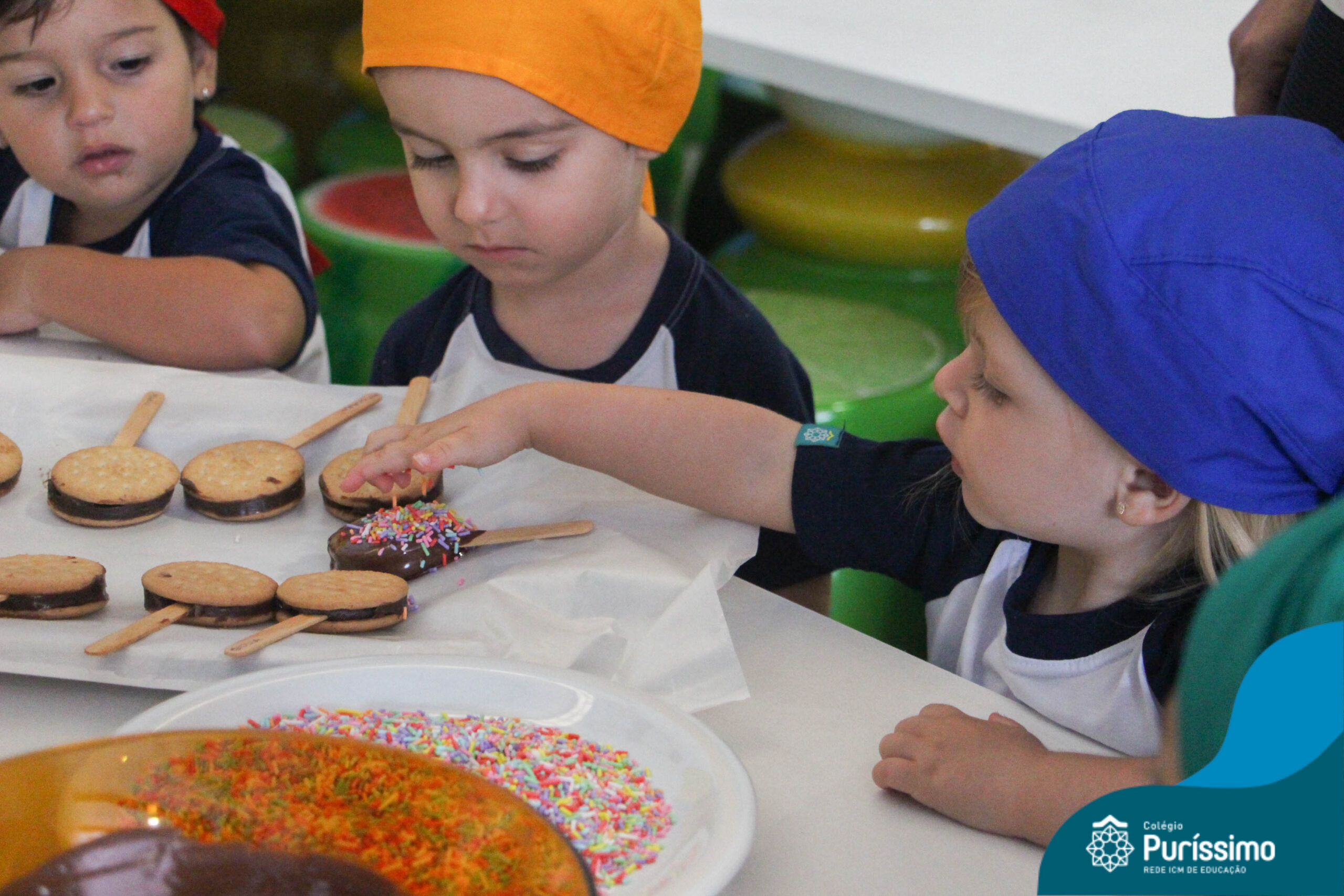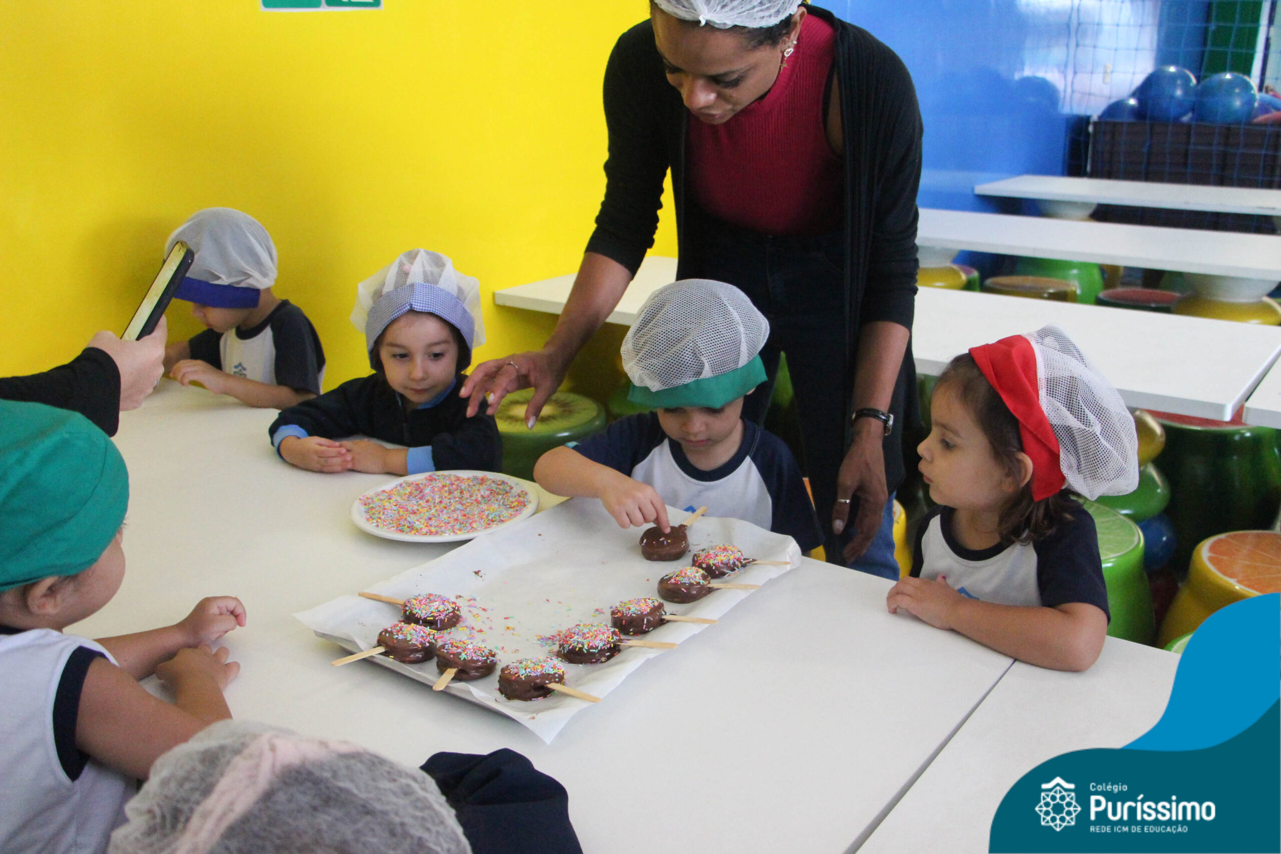Além disso, confeccionaram deliciosos pirulitos de chocolate, cartões personalizados, atividades na aula de Robótica e muito mais!