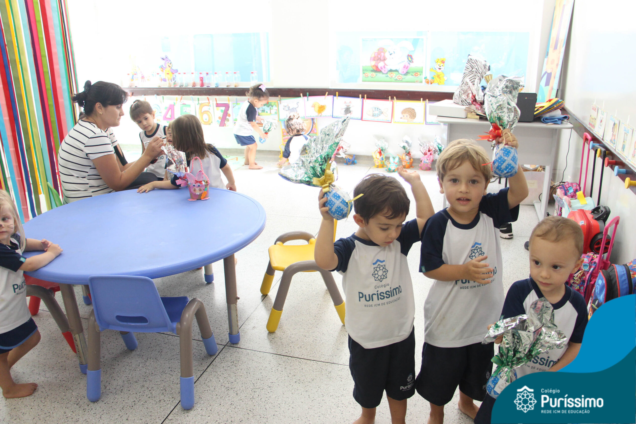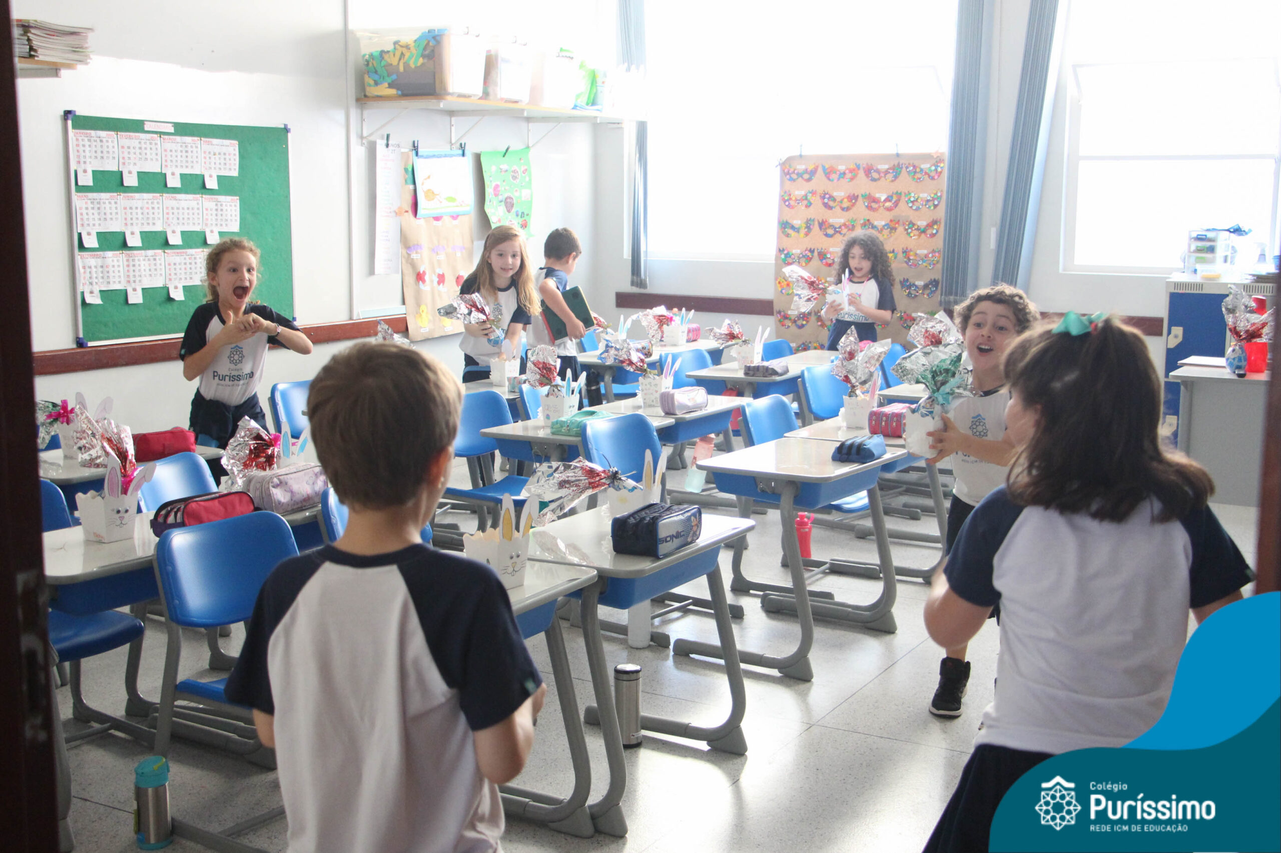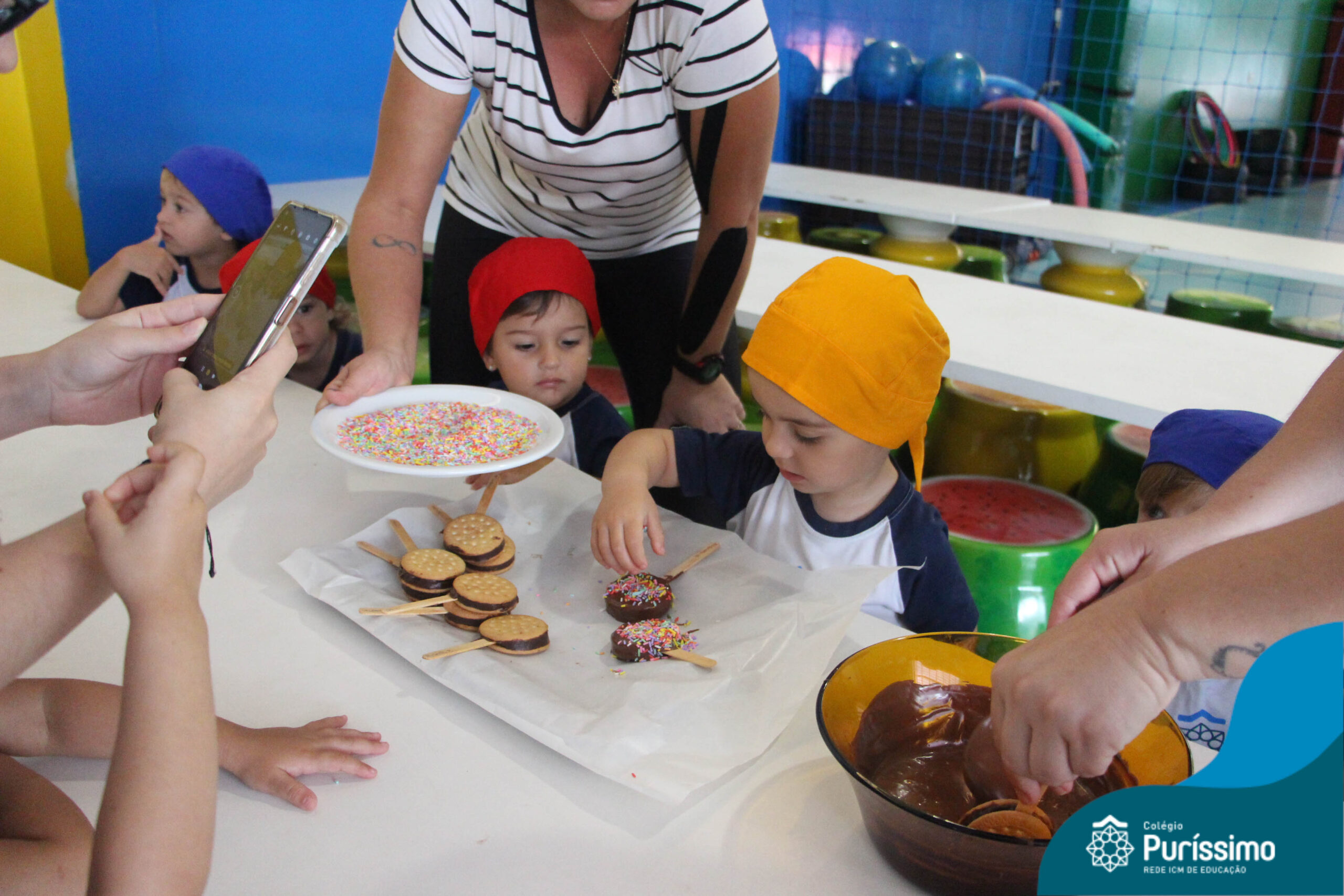 Além disso, confeccionaram deliciosos pirulitos de chocolate, cartões personalizados, atividades na aula de Robótica e muito mais!