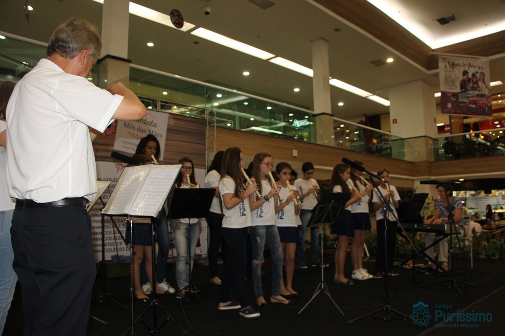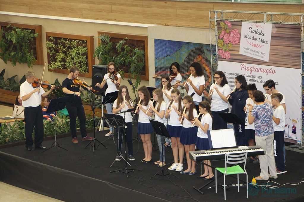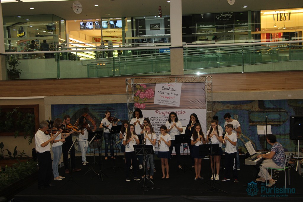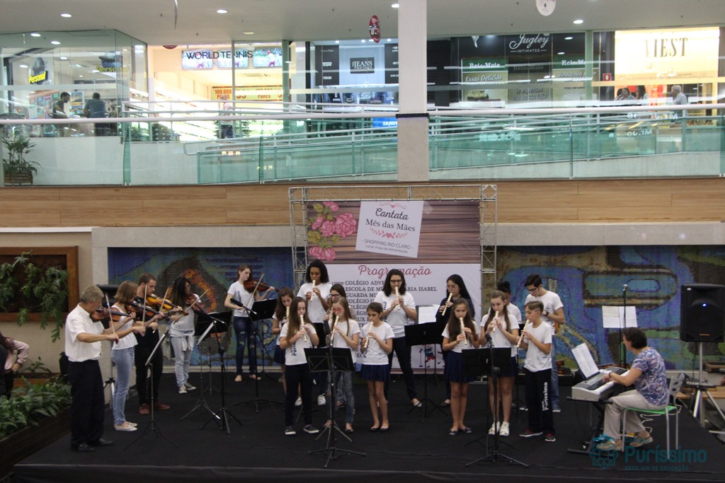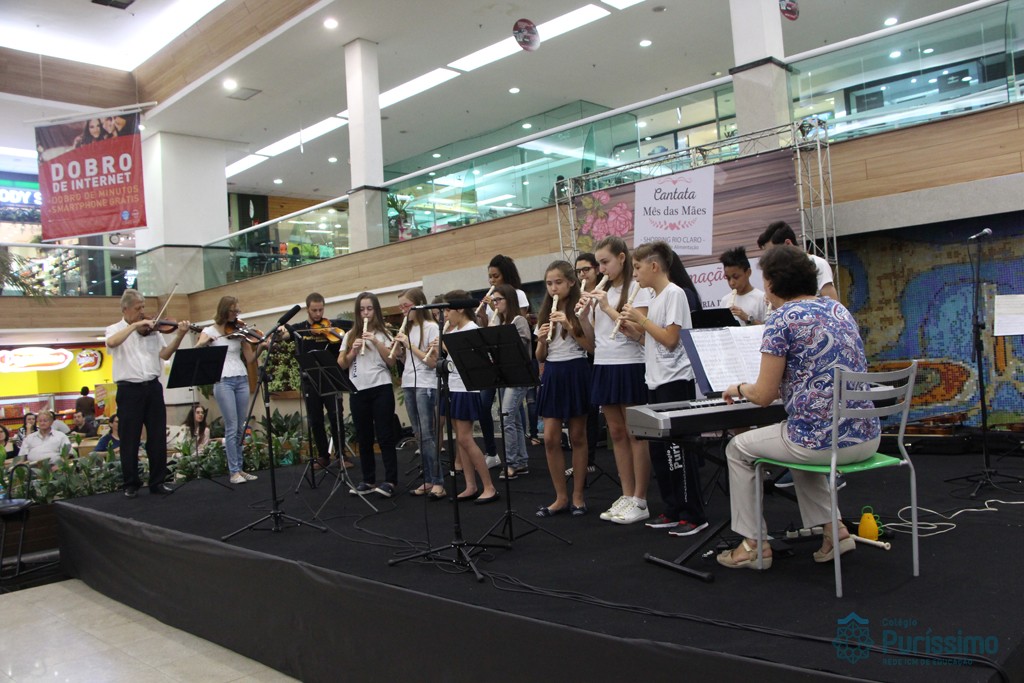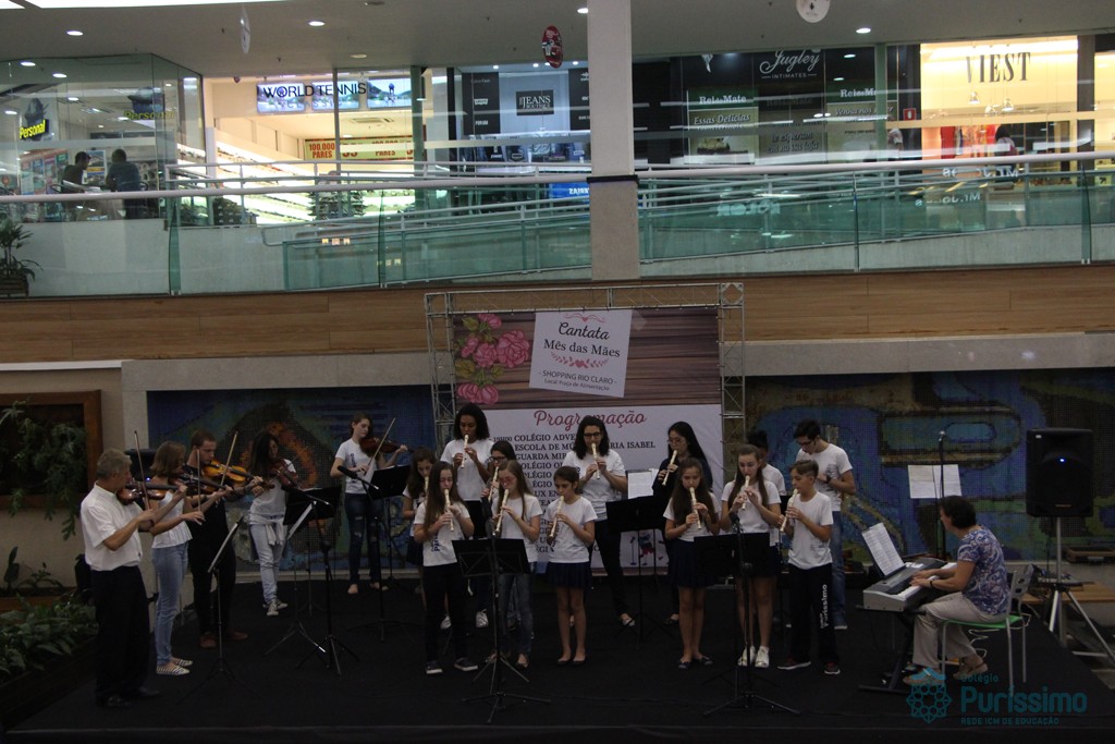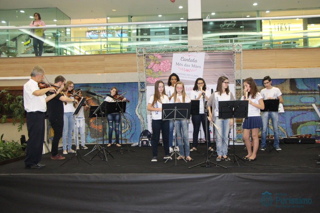 Os alunos do Colégio do Puríssimo apresentaram na última sexta – feira (26) uma cantata em homenagem ao mês das Mães. O evento aconteceu no shopping Rio Claro e contou com uma exibição de flautas e violinos.