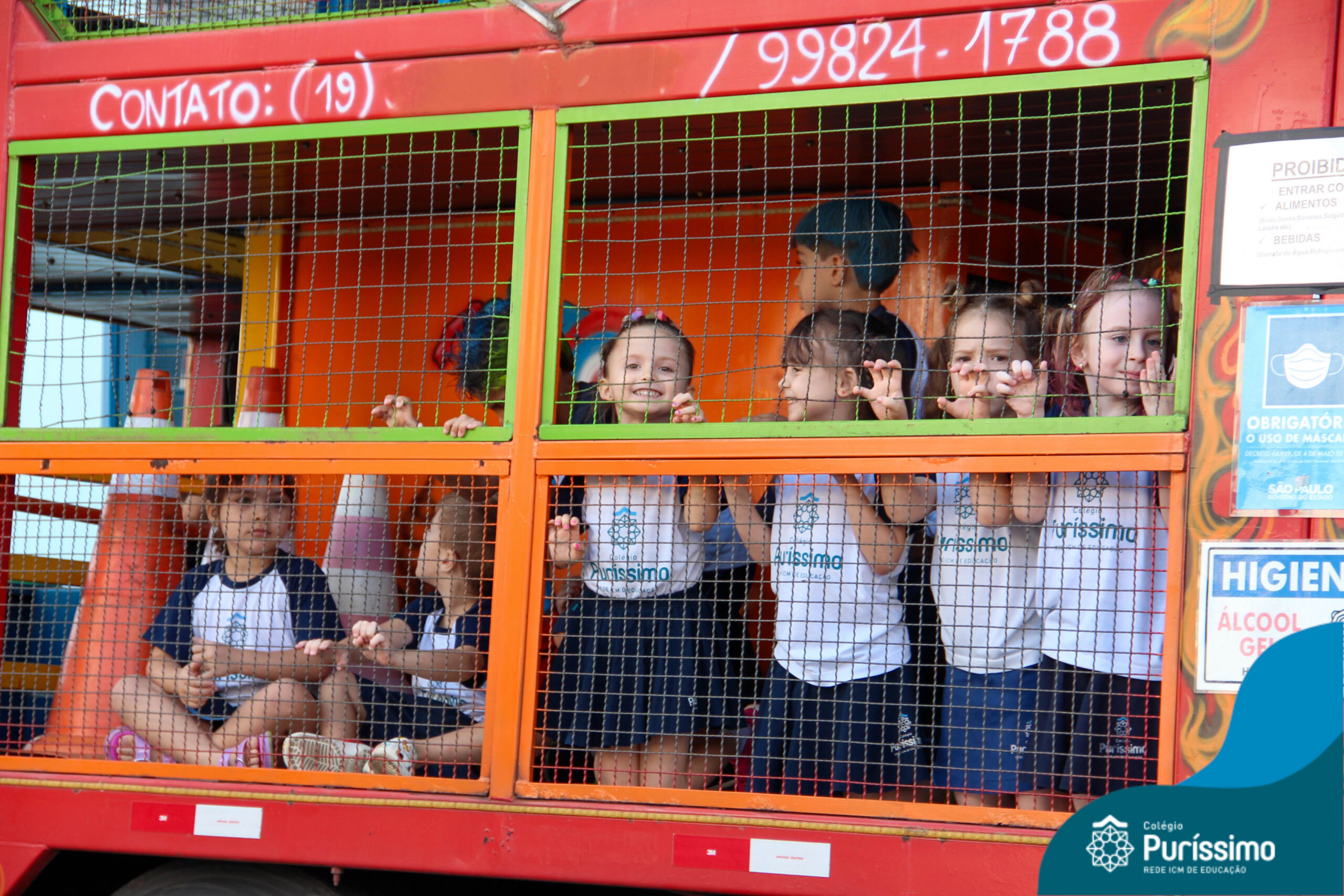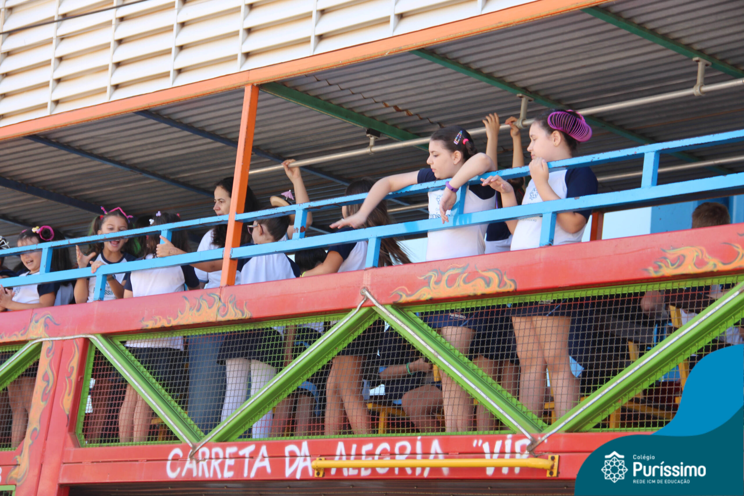Para finalizar a nossa Semana da Criança, na última quarta-feira, os alunos do Maternal 1 ao 5º ano deram um passeio super divertido com a Carreta da Alegria.