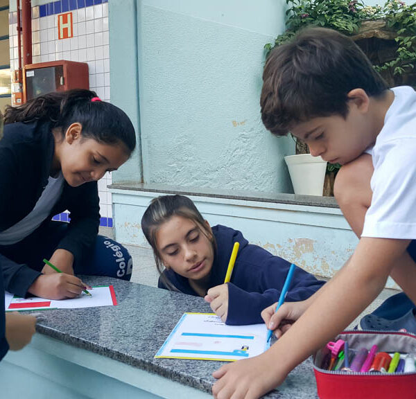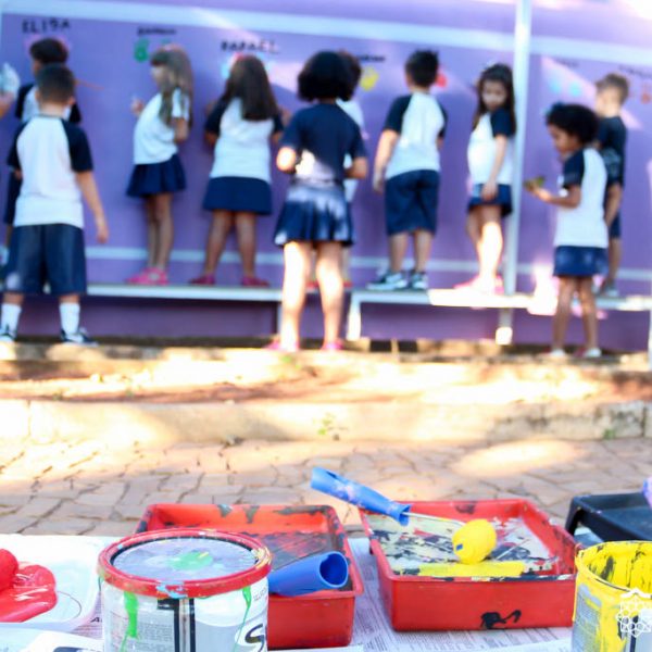 Alunos dos 1ºs anos deixam registros gráficos na parede do colégio