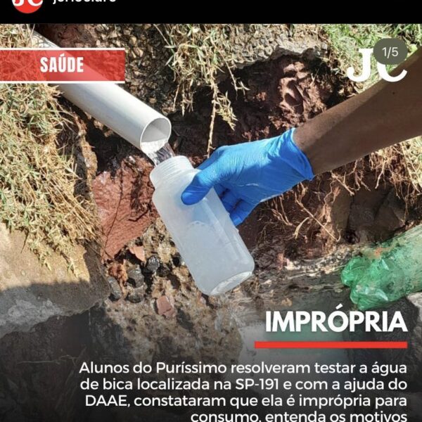Estudantes do Itinerário Formativo de Sustentabilidade realizam teste em bica de água e viram notícia no Jornal Cidade