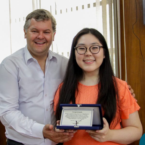 Aluna Ayana Tanaka recebe honraria do Prefeito Juninho