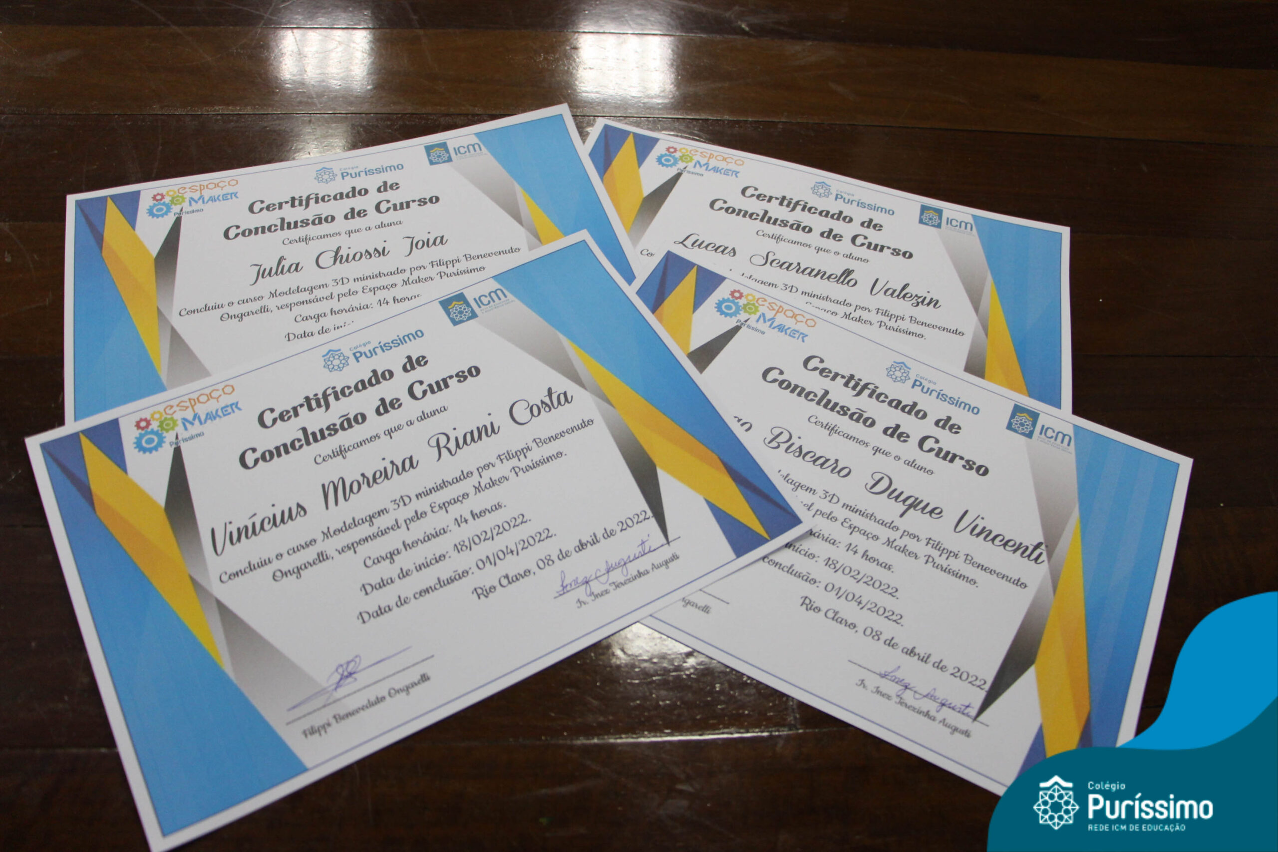 Os alunos do EF Anos Finais e Ensino Médio receberam um Certificado de Conclusão de Curso de Modelagem 3D.