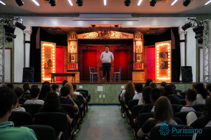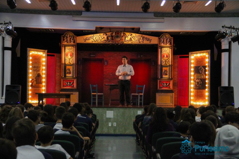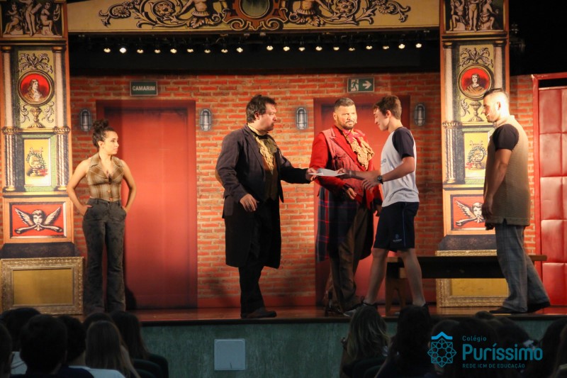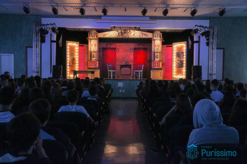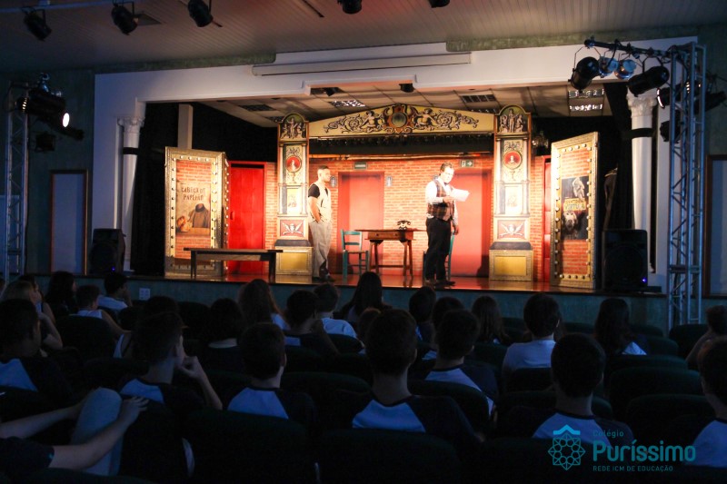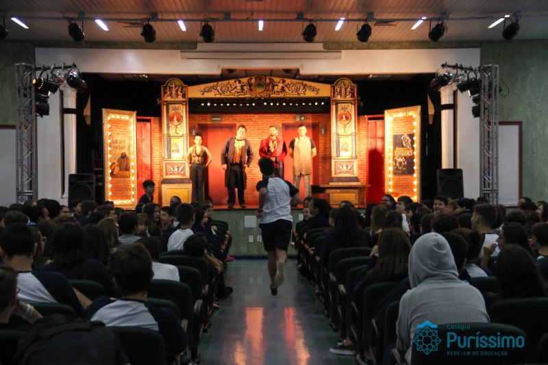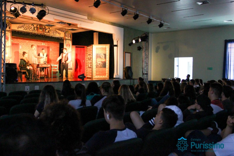 O Colégio Puríssimo recebeu a Cia Teatro Jovem nessa última quarta, 17 de outubro, com a peça “Uma comédia sem juízo”. A peça foi apresentada aos alunos do Ensino Fundamental II e Ensino Médio e aborda questões de moral e ética, muito necessárias na atualidade.