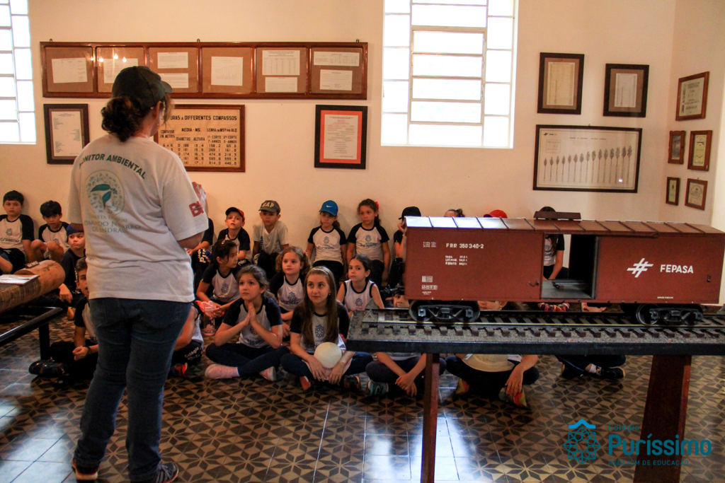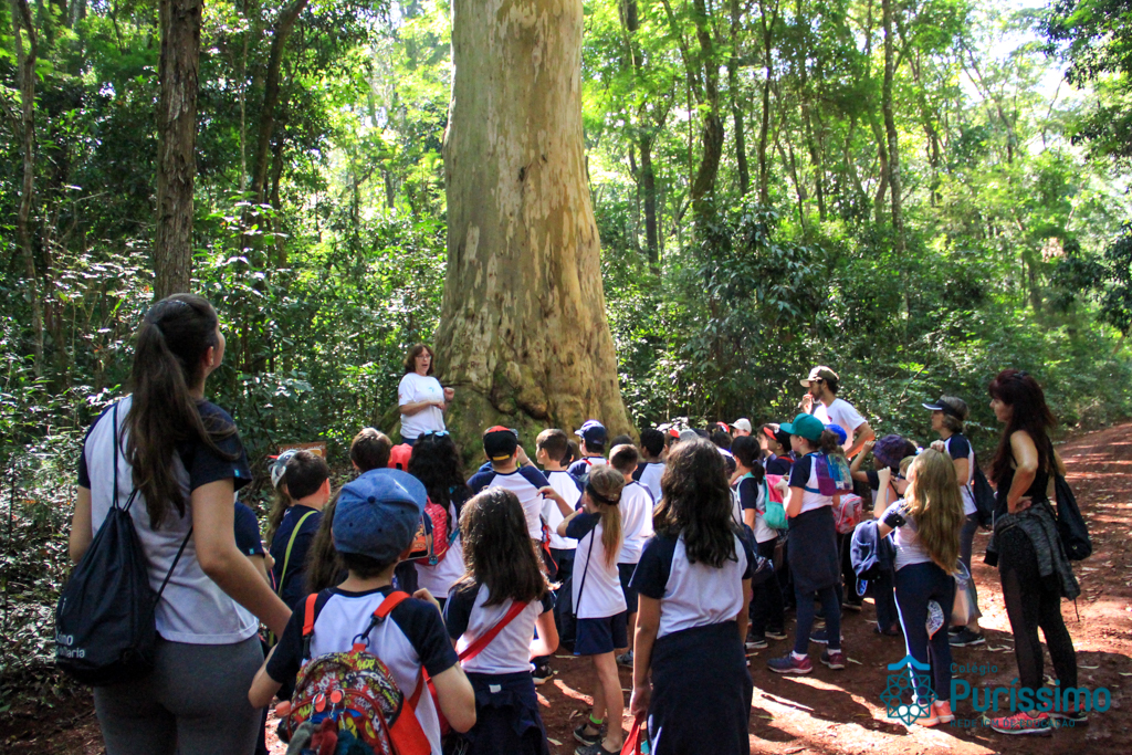 Na Floresta, os alunos foram guiados por Márcia e Érik que explicaram às crianças o surgimento da Floresta e sua relação com a estrada de ferro e desenvolvimento da cidade de Rio Claro e um pouco da história de Edmundo Navarro de Andrade. Além disso, as crianças fizeram um piquenique na floresta e uma caminhada pela trilha da saúde, sentindo o cheiro do eucalipto, observando a natureza, conhecendo uma árvore centenária e aprendendo a importância em preservar a natureza.