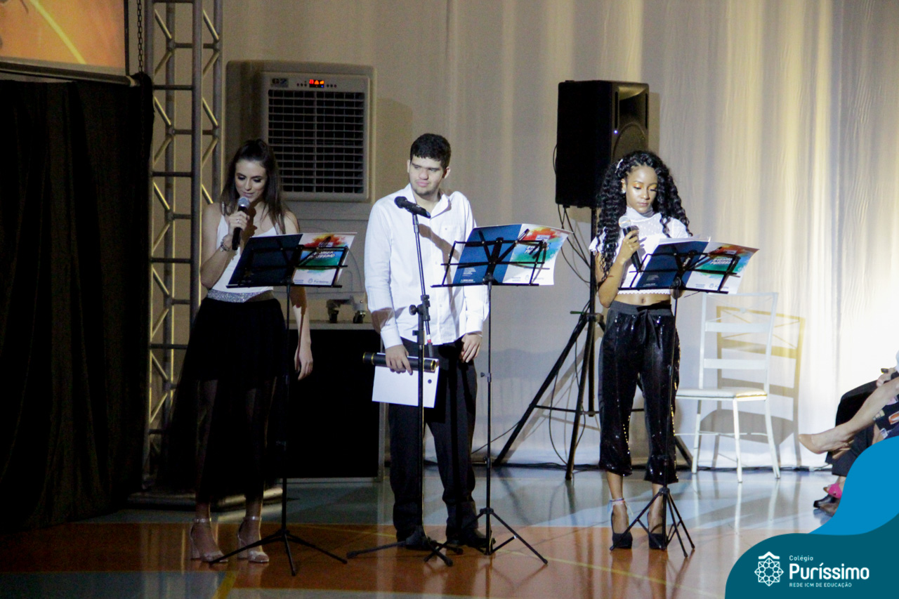 Os oradores Júlia Mamprin, Lucas Istvandic e Leticia de Souza homenagearam os professores e os colegas de turma em um discurso cheio de gratidão e saudades dos anos vividos no colégio.