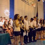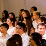 Ontem a noite o Colégio abriu as portas para receber os formandos dos 9ºs anos e seus familiares para sessão solene que marca o encerramento do Ensino Fundamental. Nossos alunos abriram a cerimônia com o poema de Sólon Borges, Exortação ao Hino, seguido do Hino Nacional. Após a abertura, alguns alunos das turmas dos 9ºs anos discursaram, destacando uma característica de cada professor que os acompanhou ao longo dos anos e também homenageando aos pais, logo após, os paraninfos Bruno Saggioro e Maurício Monteiro, expressaram a felicidade em terem sido escolhidos pela turma com os belos discursos que falavam dos caminhos que percorreram no Ensino Fundamental, de amizades e, que os formandos são o futuro do país, portanto, devem seguir os exemplos de seus pais e de grandes nomes que fizeram o bem no mundo.