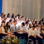 O professor de música, Vitor Bortolin, junto com a aluna do 8º ano, Helena Jordão, cantaram a música “Trem-bala”, de Ana Vilela em homenagem aos formandos. A cerimônia se encerrou com os alunos dançando uma música que aprenderam no acampamento que participaram como celebração de formatura.