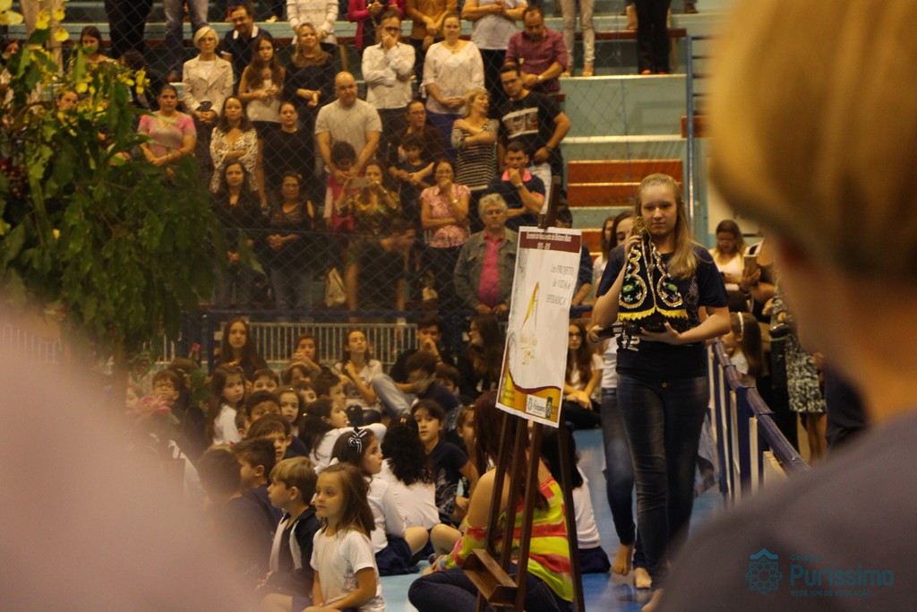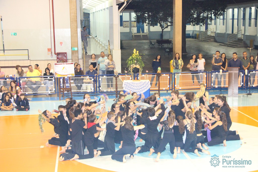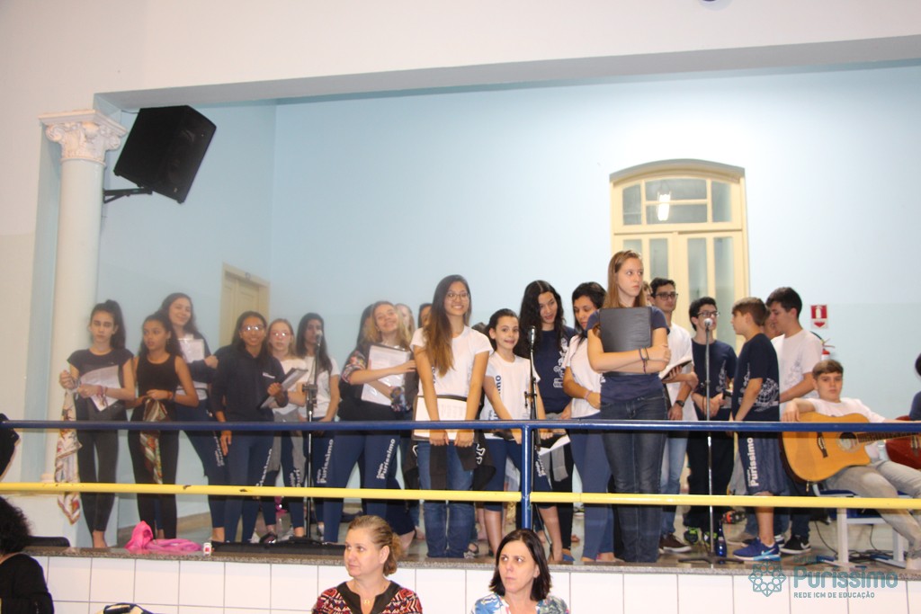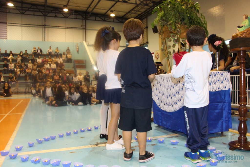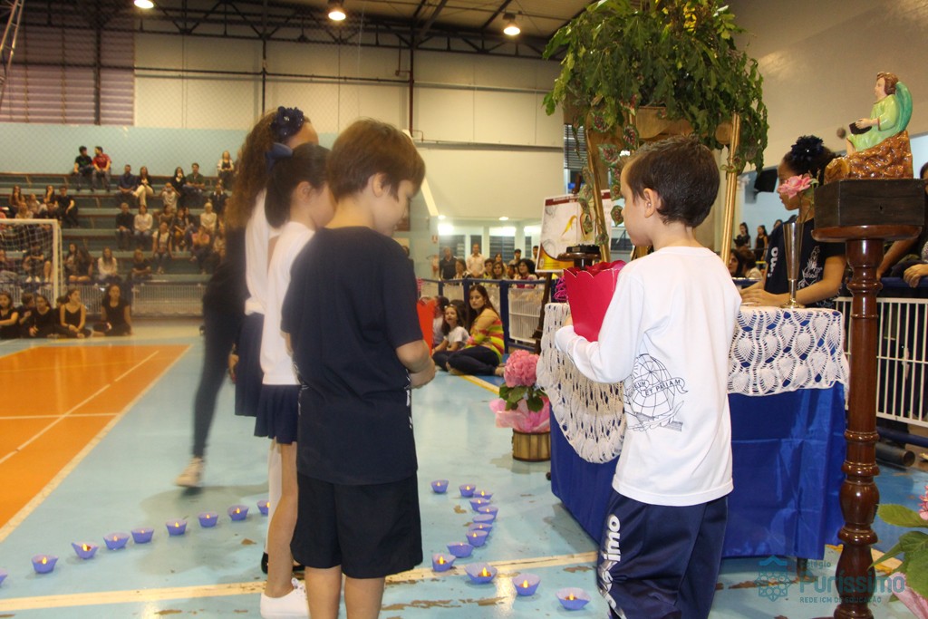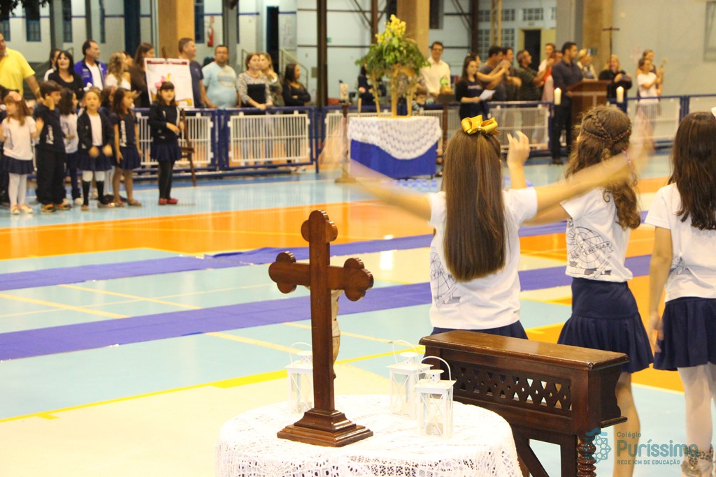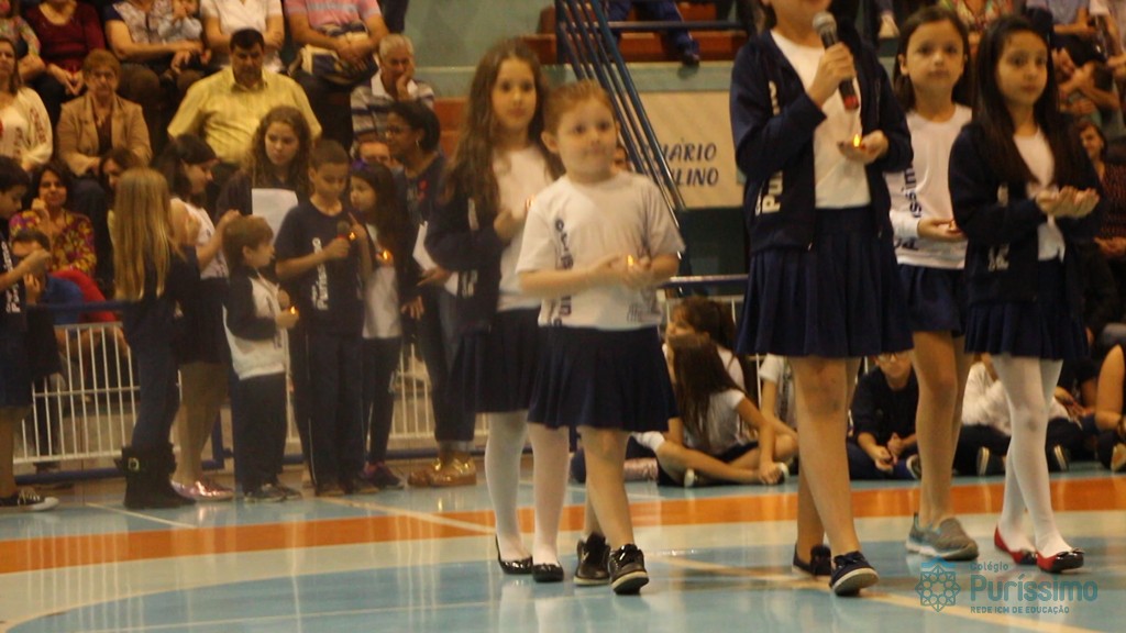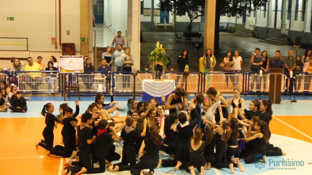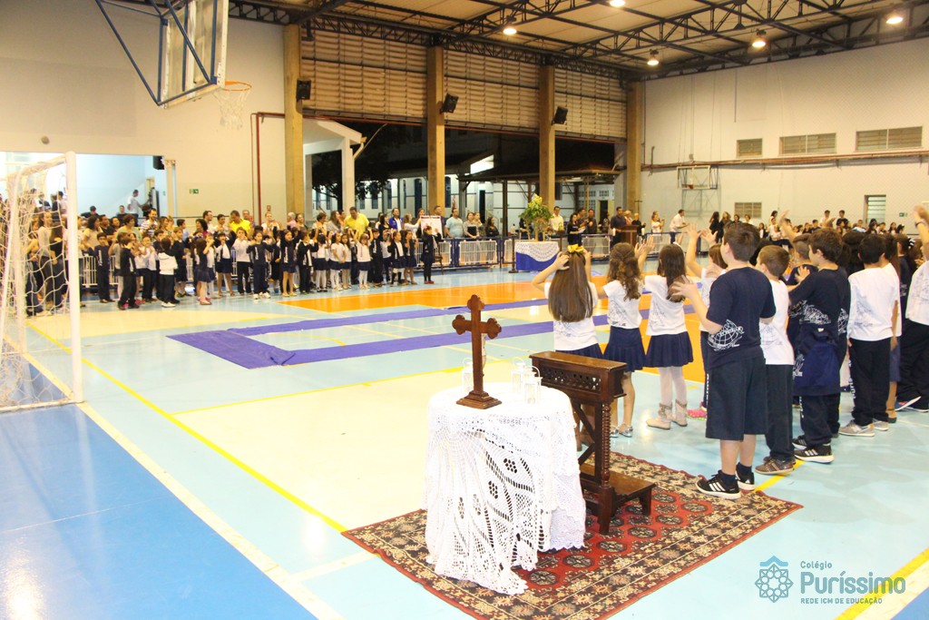 Na quadra do Puríssimo, as arquibancadas cheias assistiram a uma belíssima cerimônia programada pela Pastoral Escolar, dessa vez o evento contou com uma grande participação dos alunos da “Casa Azul” (Educação Infantil e Primeiros anos do EF), além é claro do Coral da Juventude ICM, Ensino Fundamental e Ensino Médio. Para começar as crianças entraram cantando a canção “Deixa a Luz do Céu Entrar”. Alunos do Ensino Fundamental II apresentaram uma dança cheia de criatividade e emoção.