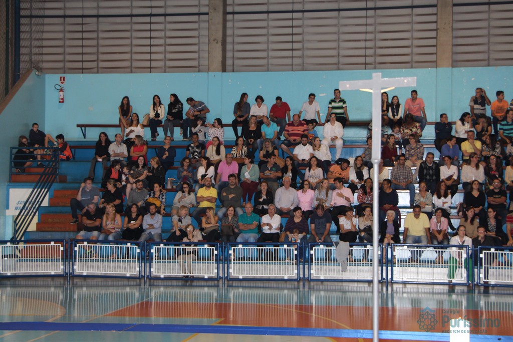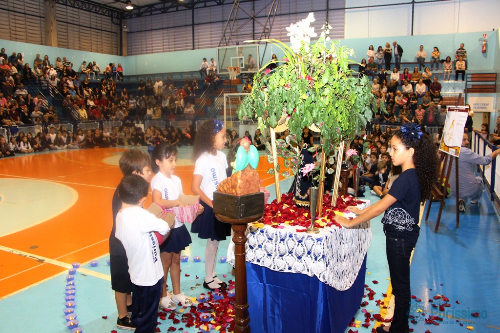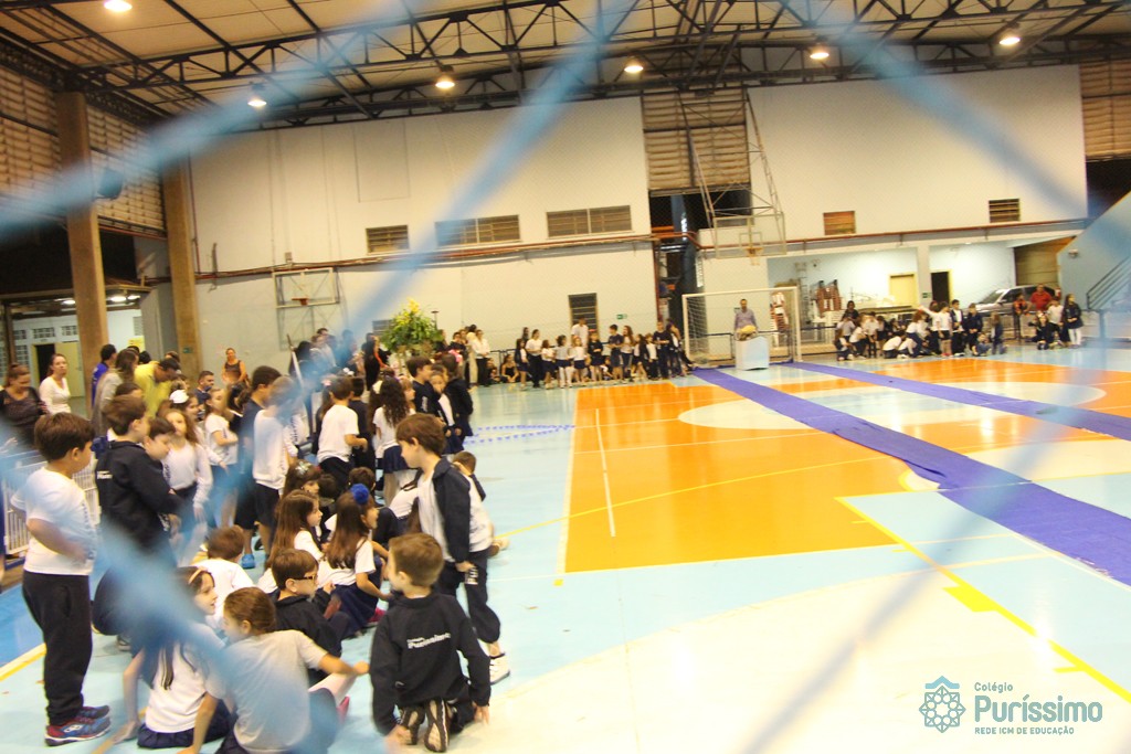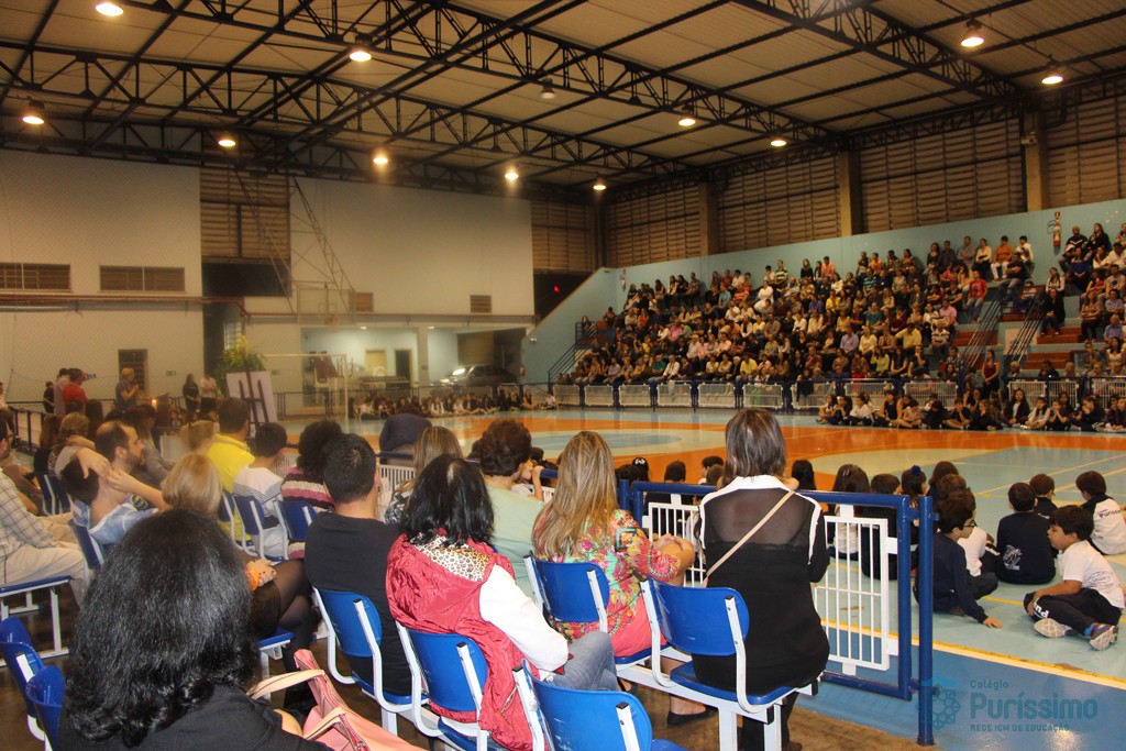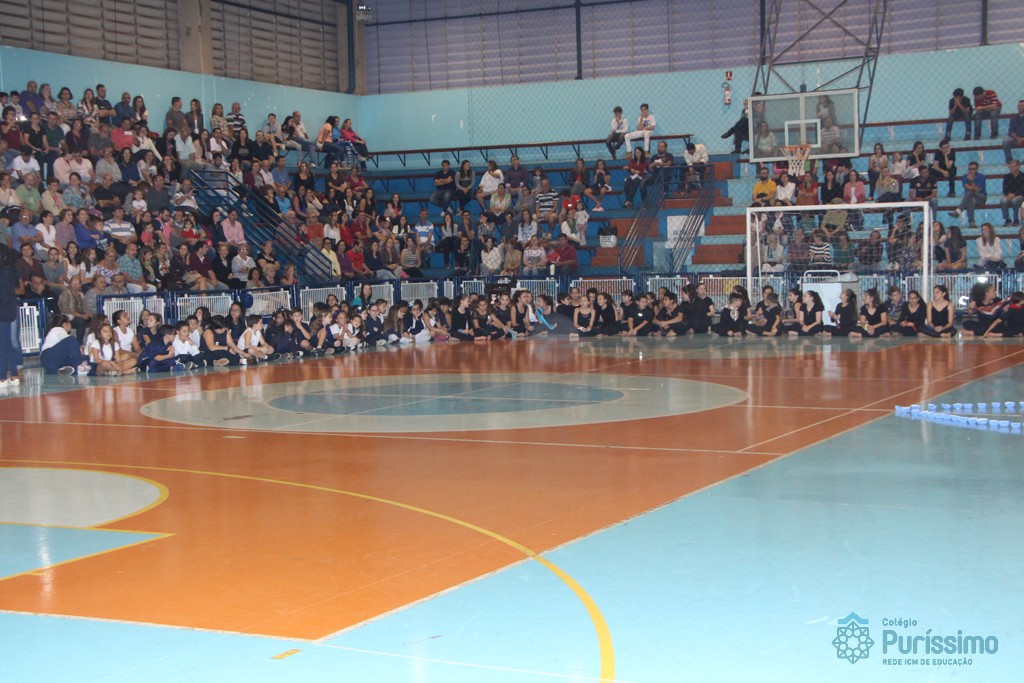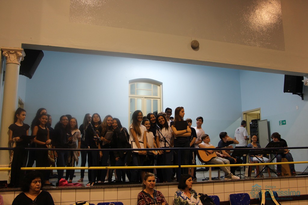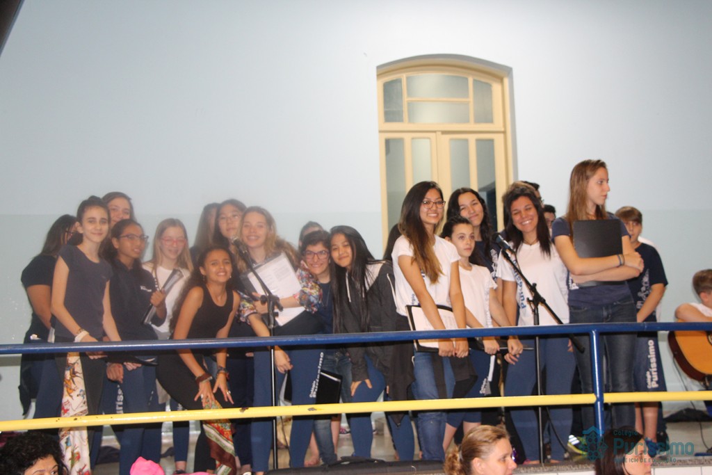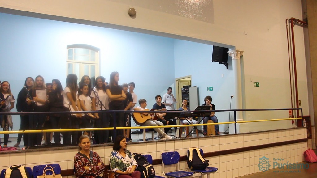 Na quadra do Puríssimo, as arquibancadas cheias assistiram a uma belíssima cerimônia programada pela Pastoral Escolar, dessa vez o evento contou com uma grande participação dos alunos da “Casa Azul” (Educação Infantil e Primeiros anos do EF), além é claro do Coral da Juventude ICM, Ensino Fundamental e Ensino Médio. Para começar as crianças entraram cantando a canção “Deixa a Luz do Céu Entrar”. Alunos do Ensino Fundamental II apresentaram uma dança cheia de criatividade e emoção.