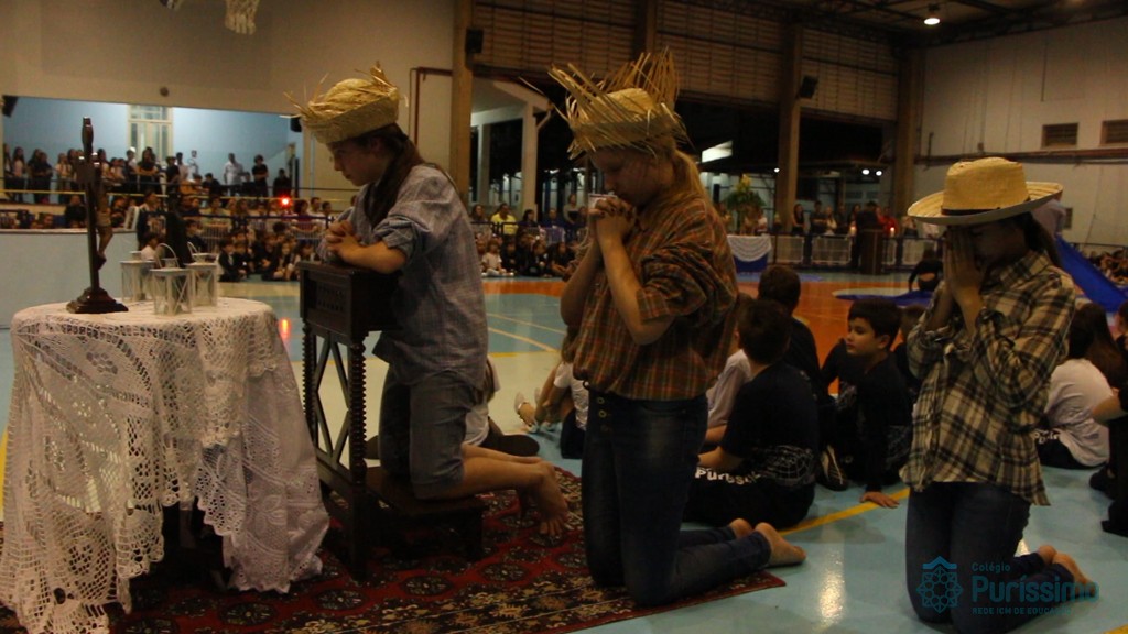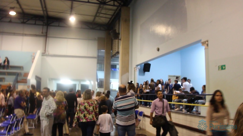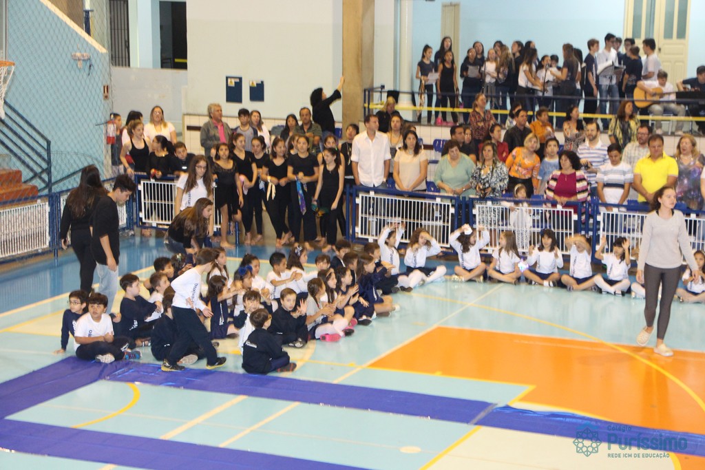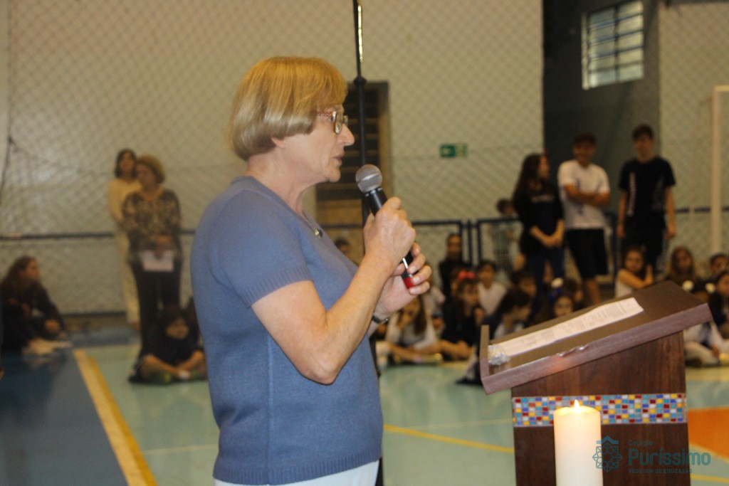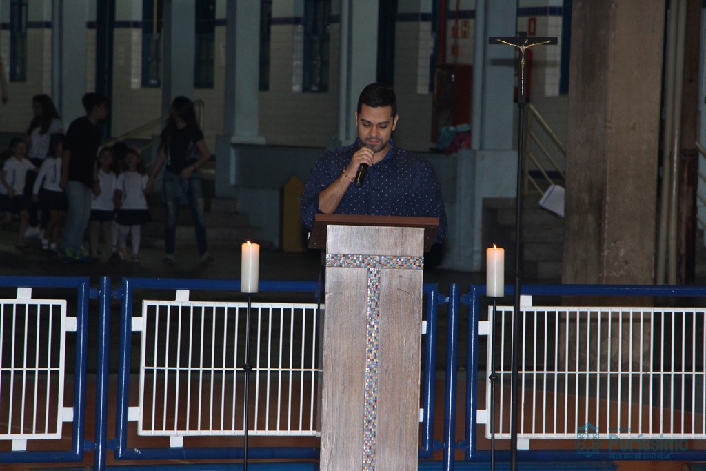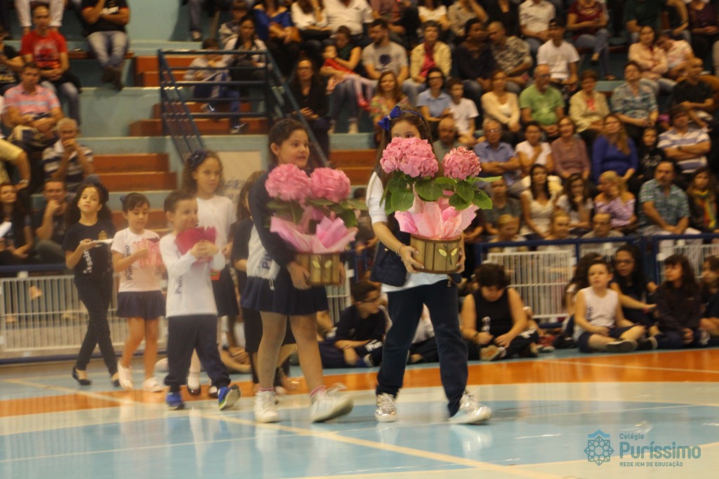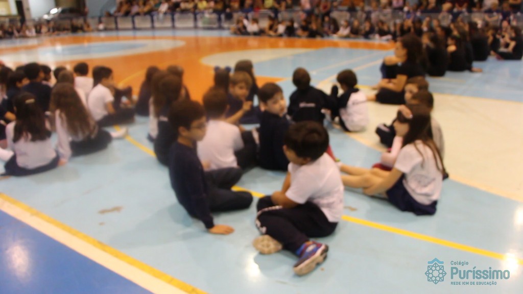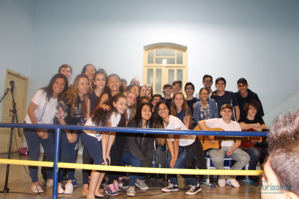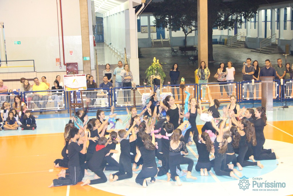 Na quadra do Puríssimo, as arquibancadas cheias assistiram a uma belíssima cerimônia programada pela Pastoral Escolar, dessa vez o evento contou com uma grande participação dos alunos da “Casa Azul” (Educação Infantil e Primeiros anos do EF), além é claro do Coral da Juventude ICM, Ensino Fundamental e Ensino Médio. Para começar as crianças entraram cantando a canção “Deixa a Luz do Céu Entrar”. Alunos do Ensino Fundamental II apresentaram uma dança cheia de criatividade e emoção.