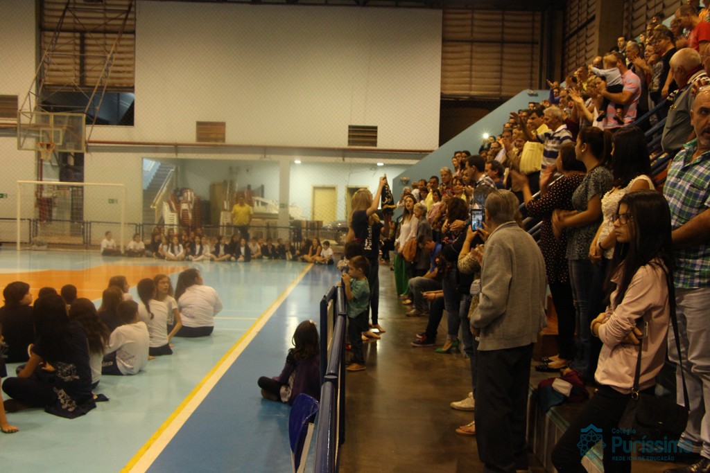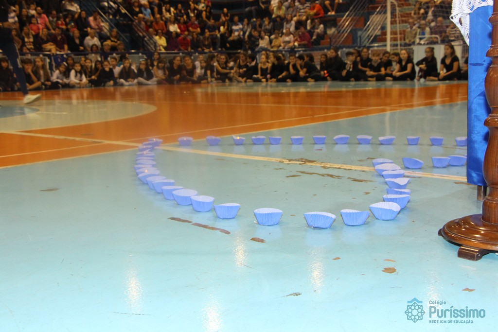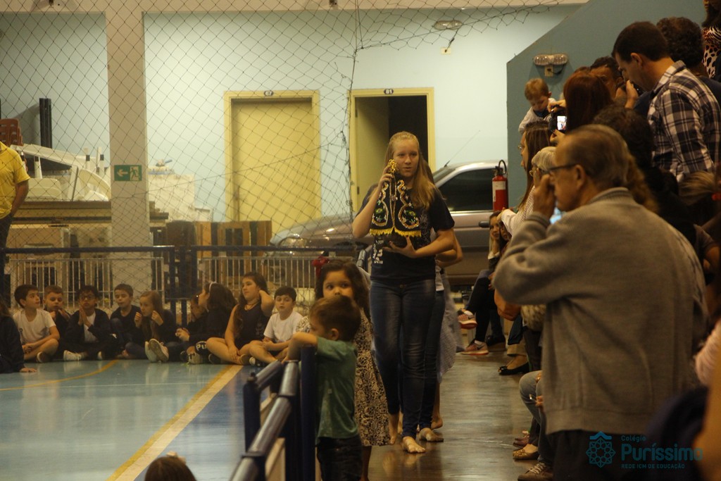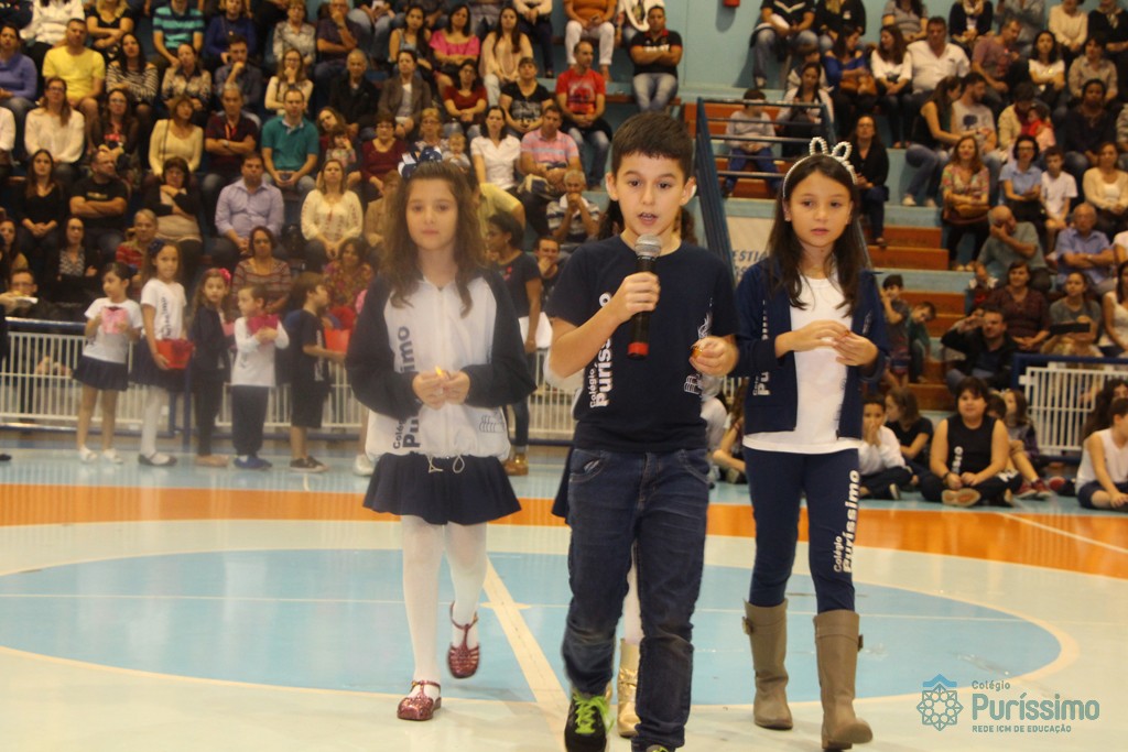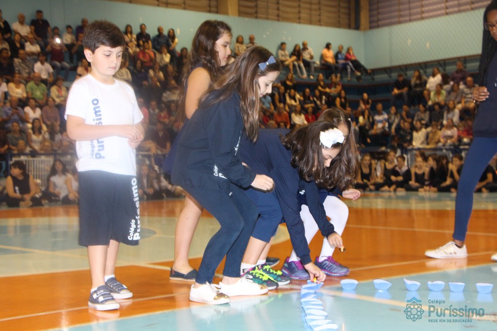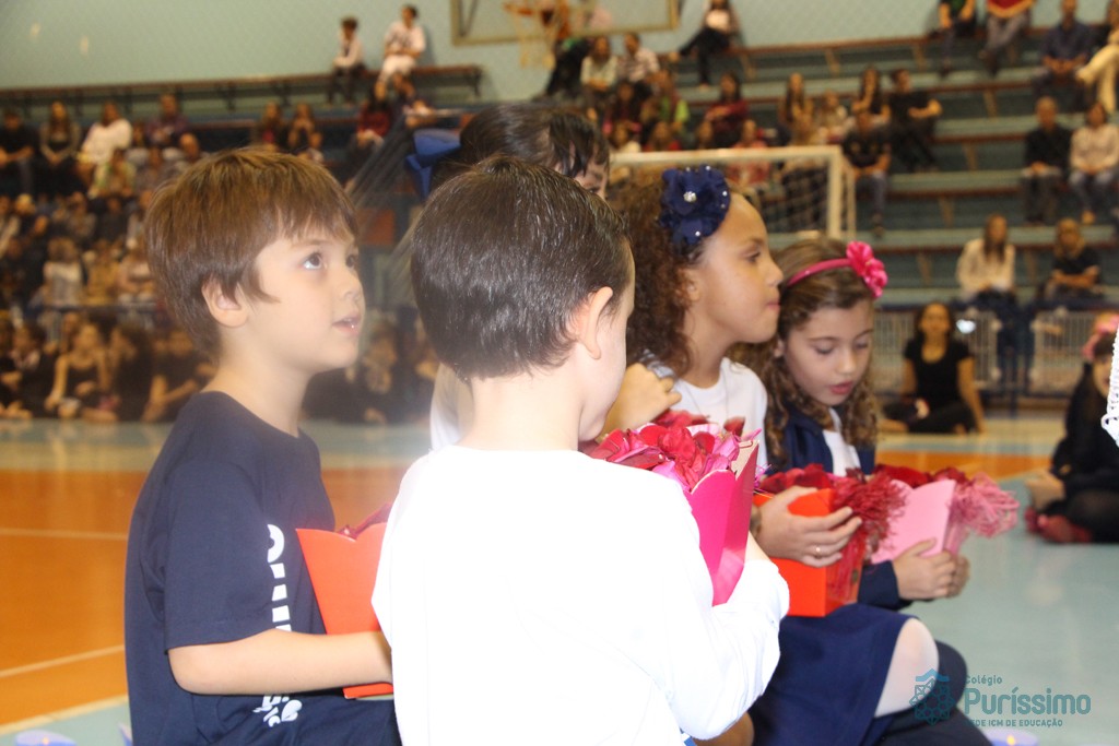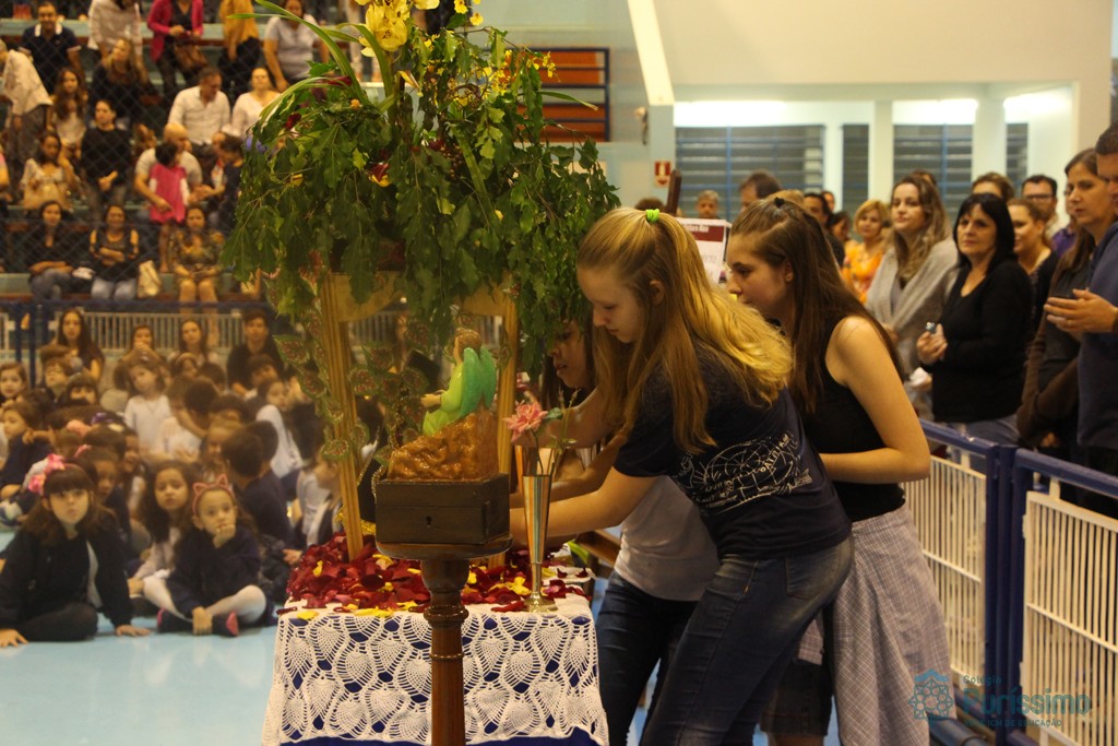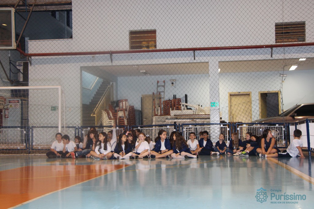 Na quadra do Puríssimo, as arquibancadas cheias assistiram a uma belíssima cerimônia programada pela Pastoral Escolar, dessa vez o evento contou com uma grande participação dos alunos da “Casa Azul” (Educação Infantil e Primeiros anos do EF), além é claro do Coral da Juventude ICM, Ensino Fundamental e Ensino Médio. Para começar as crianças entraram cantando a canção “Deixa a Luz do Céu Entrar”. Alunos do Ensino Fundamental II apresentaram uma dança cheia de criatividade e emoção.