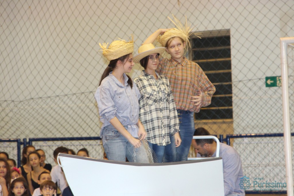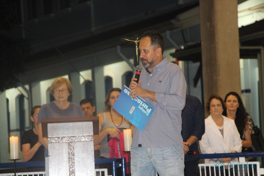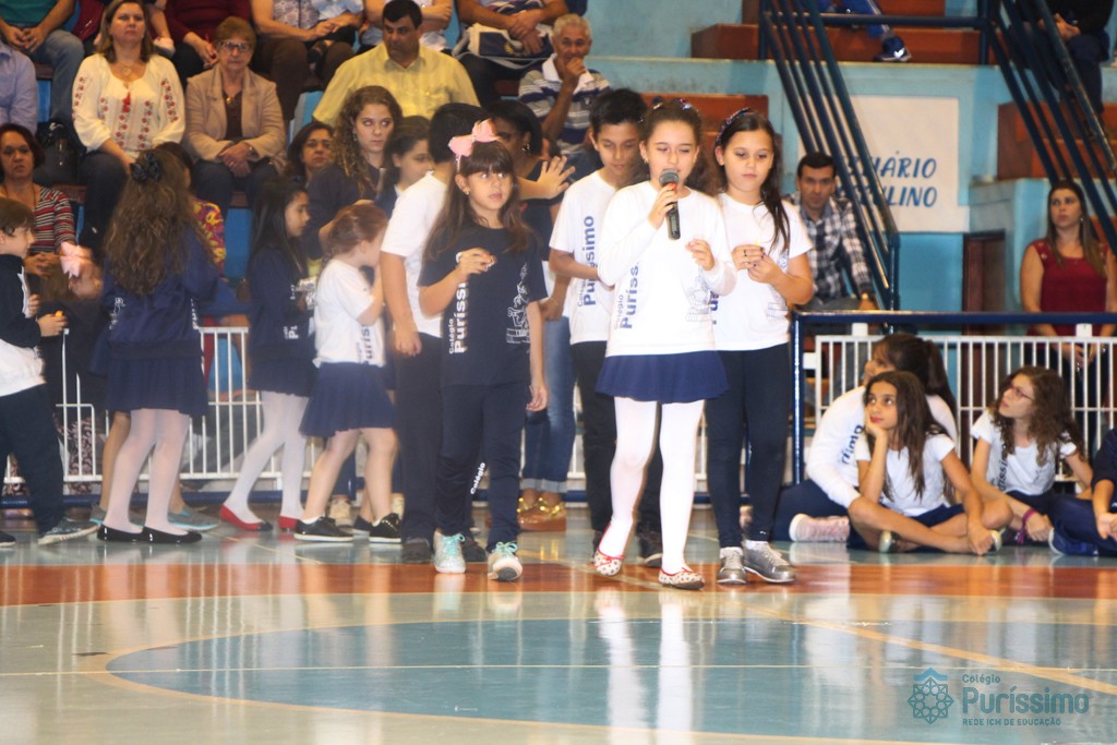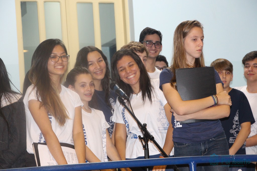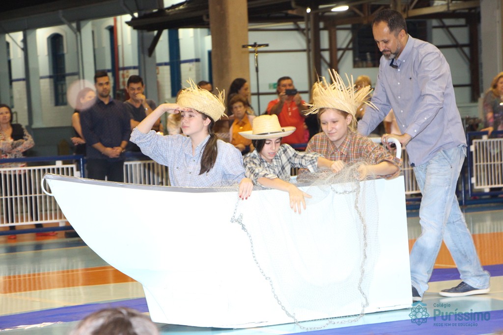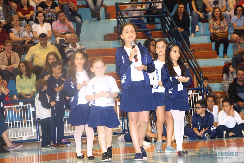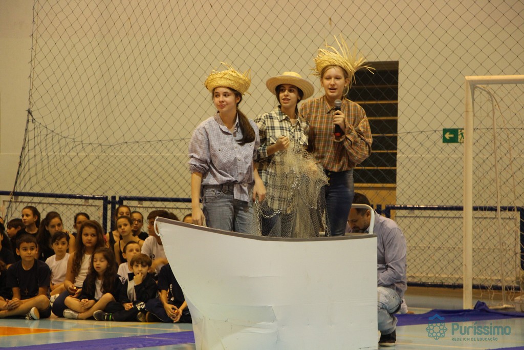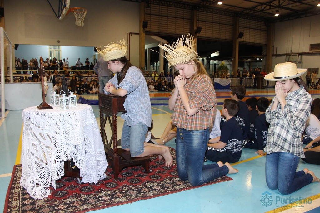Na quadra do Puríssimo, as arquibancadas cheias assistiram a uma belíssima cerimônia programada pela Pastoral Escolar, dessa vez o evento contou com uma grande participação dos alunos da “Casa Azul” (Educação Infantil e Primeiros anos do EF), além é claro do Coral da Juventude ICM, Ensino Fundamental e Ensino Médio. Para começar as crianças entraram cantando a canção “Deixa a Luz do Céu Entrar”. Alunos do Ensino Fundamental II apresentaram uma dança cheia de criatividade e emoção.