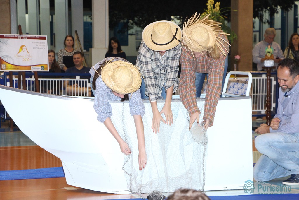 A encenação do encontro da imagem no Rio Parnaíba pelos pescadores ficou por conta das alunas dos 9ºs anos. Os alunos da Educação Infantil e Ensino Fundamental participaram também da reza de 1 quarto do terço, eles entraram com flores e velas artificiais rezando 10 ave marias. Ao fim a Mãe Aparecida foi coroada com uma chuva de pétalas de rosas.