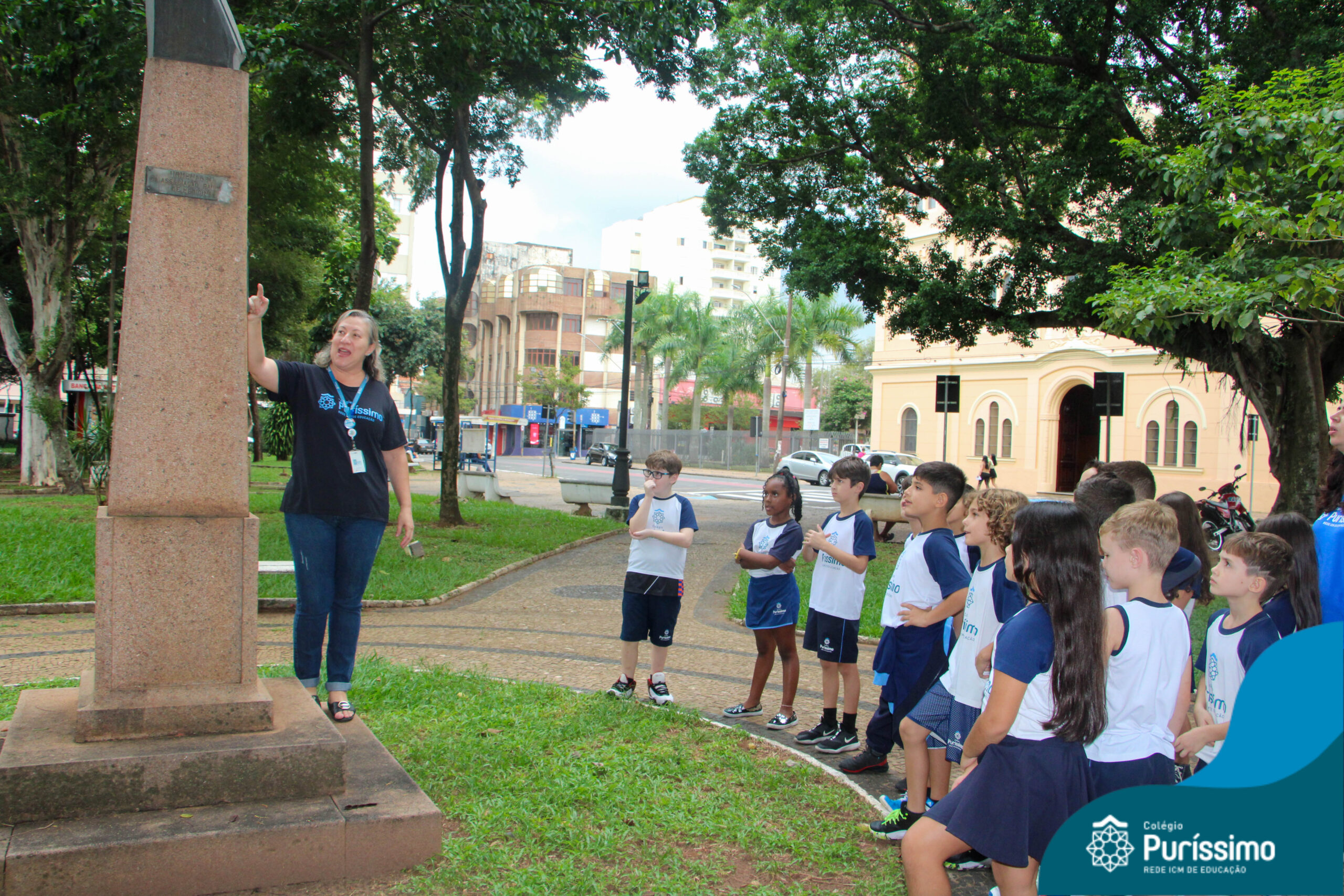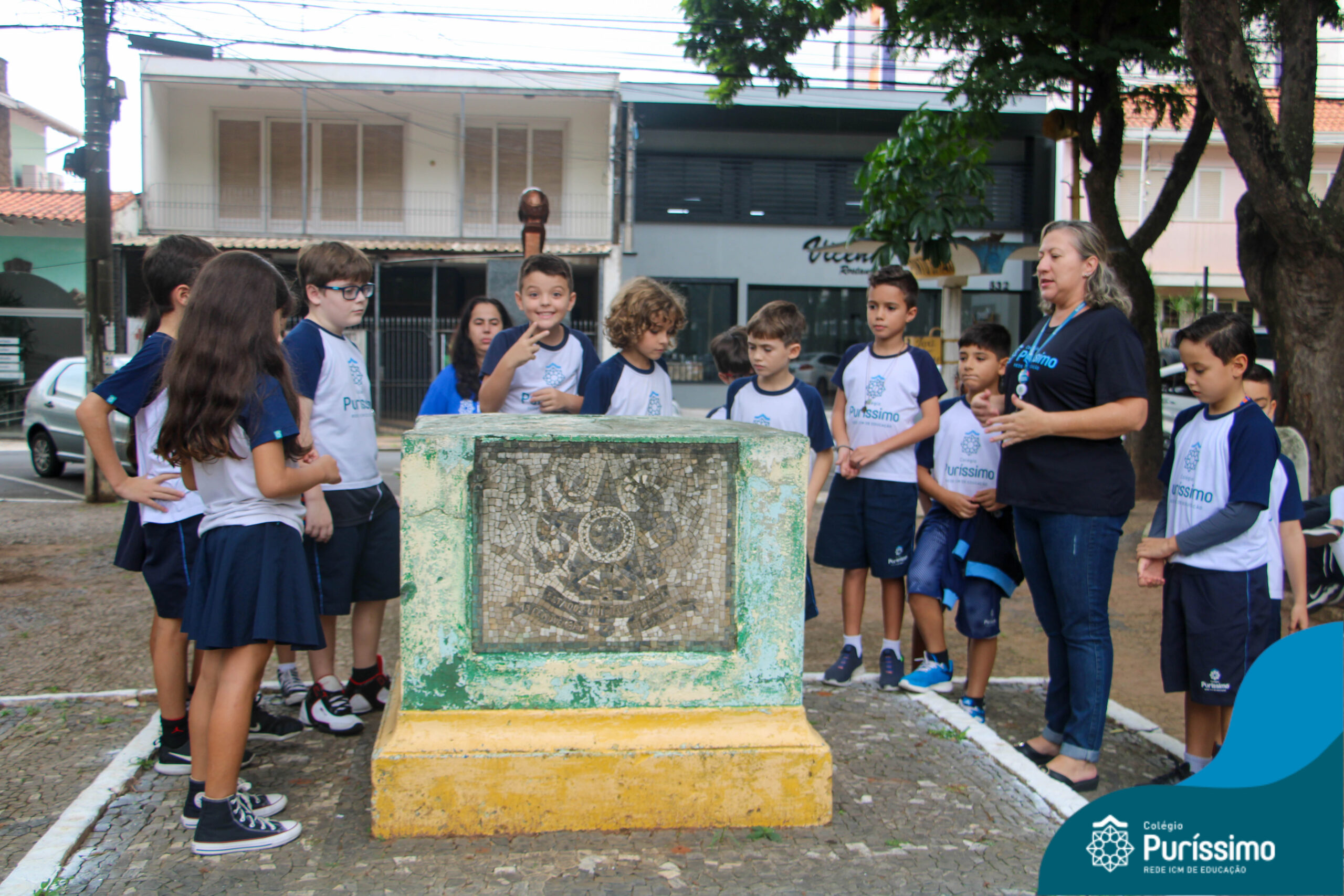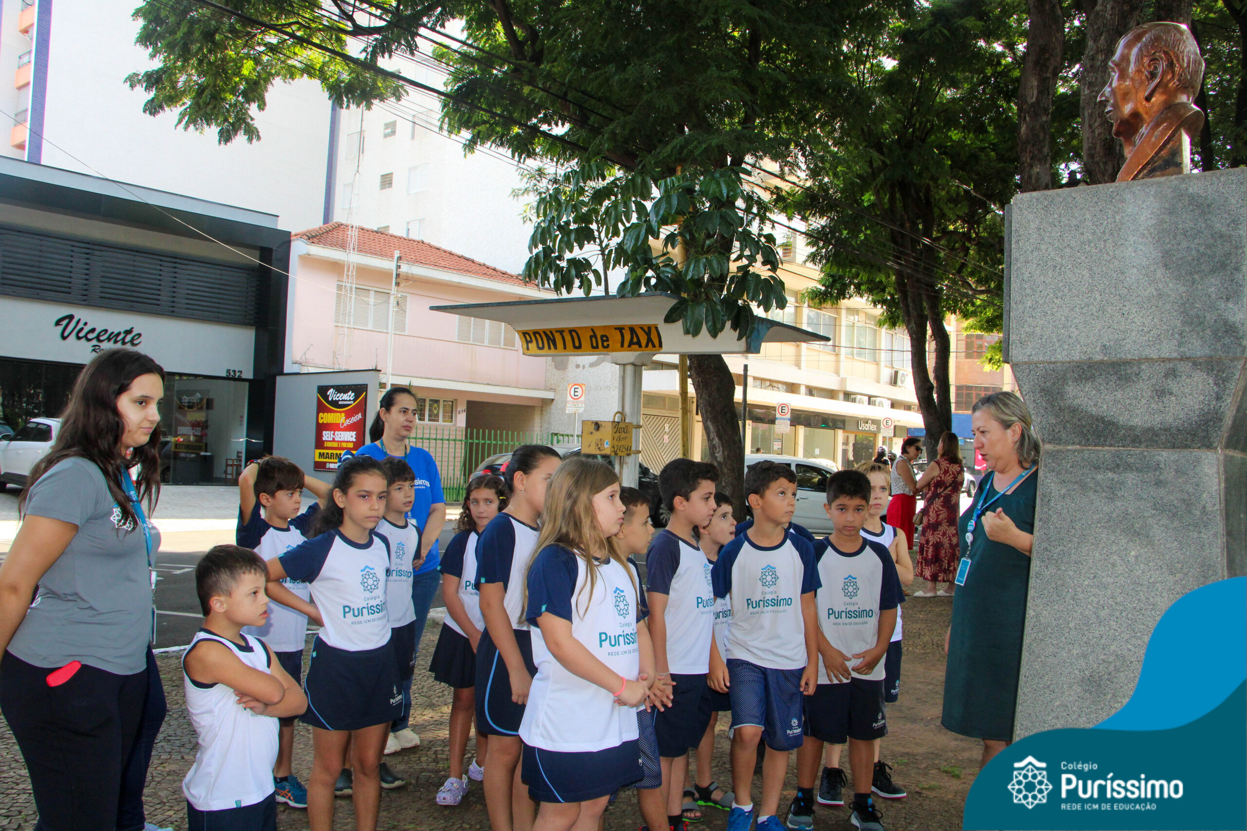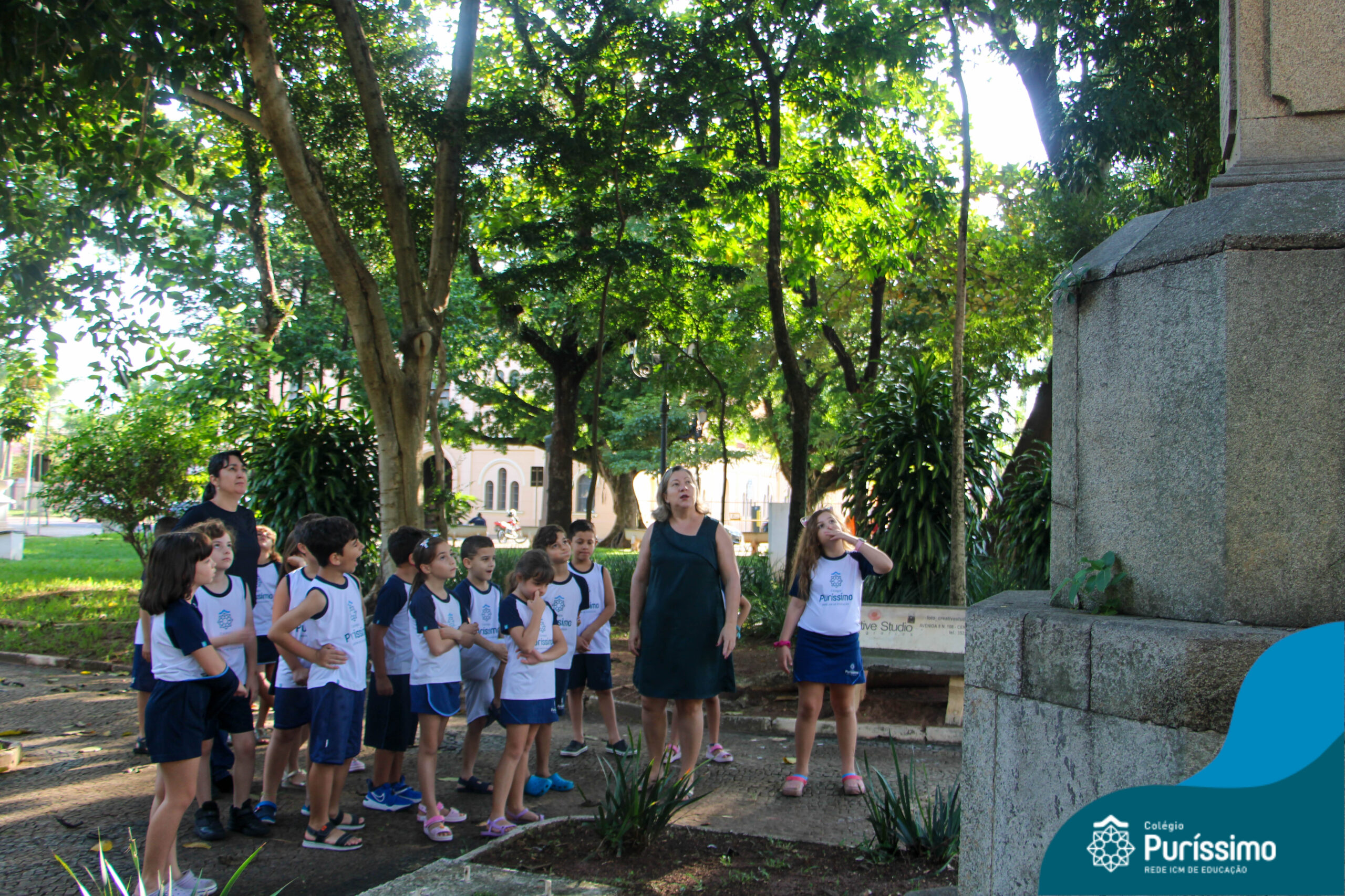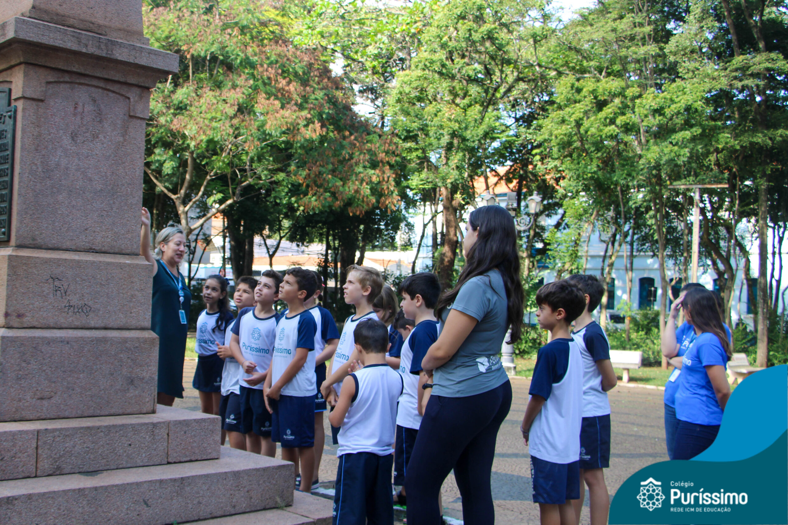 Os alunos do 3º ano visitaram a Praça da Liberdade para conhecer melhor sobre figuras importantes e monumentos históricos importantes para a formação do município de Rio Claro.