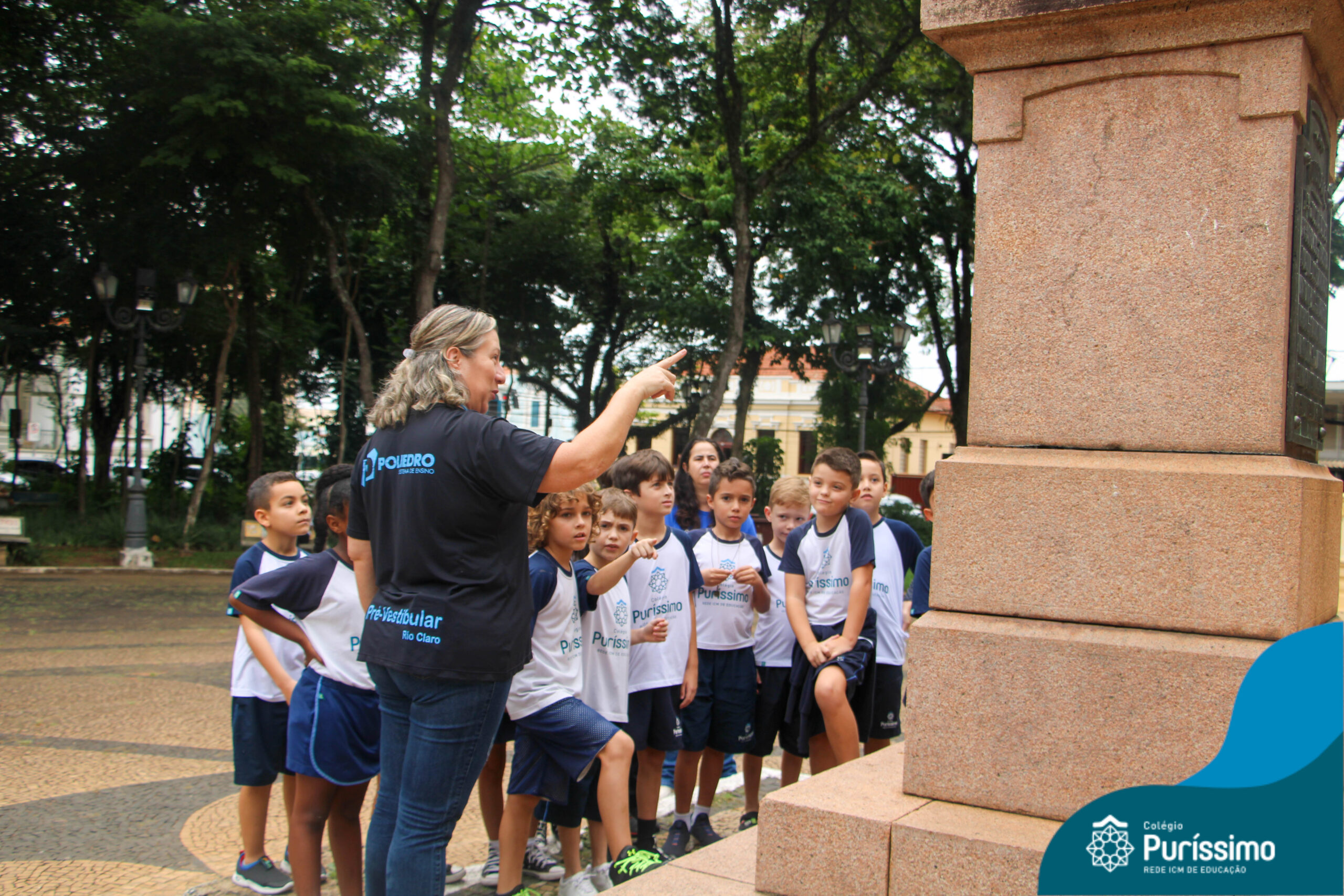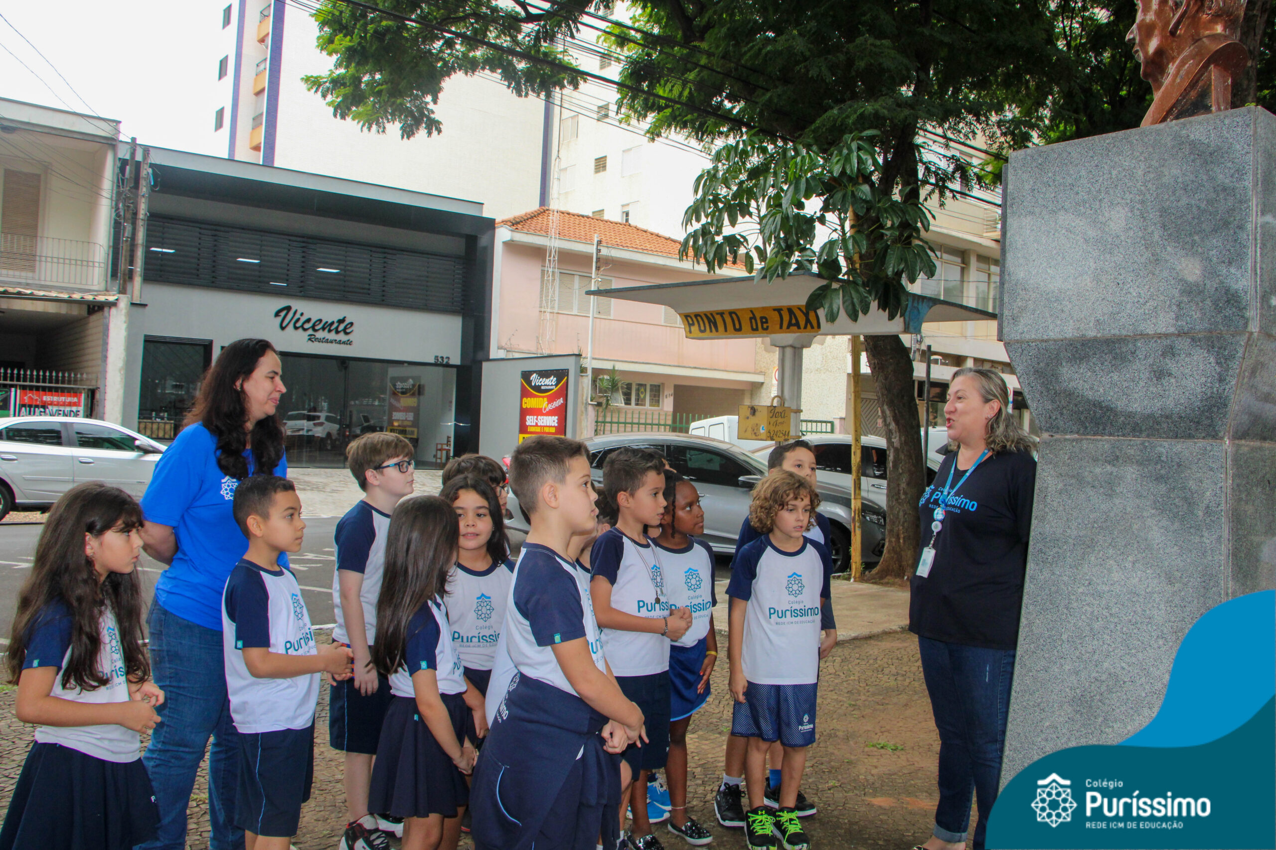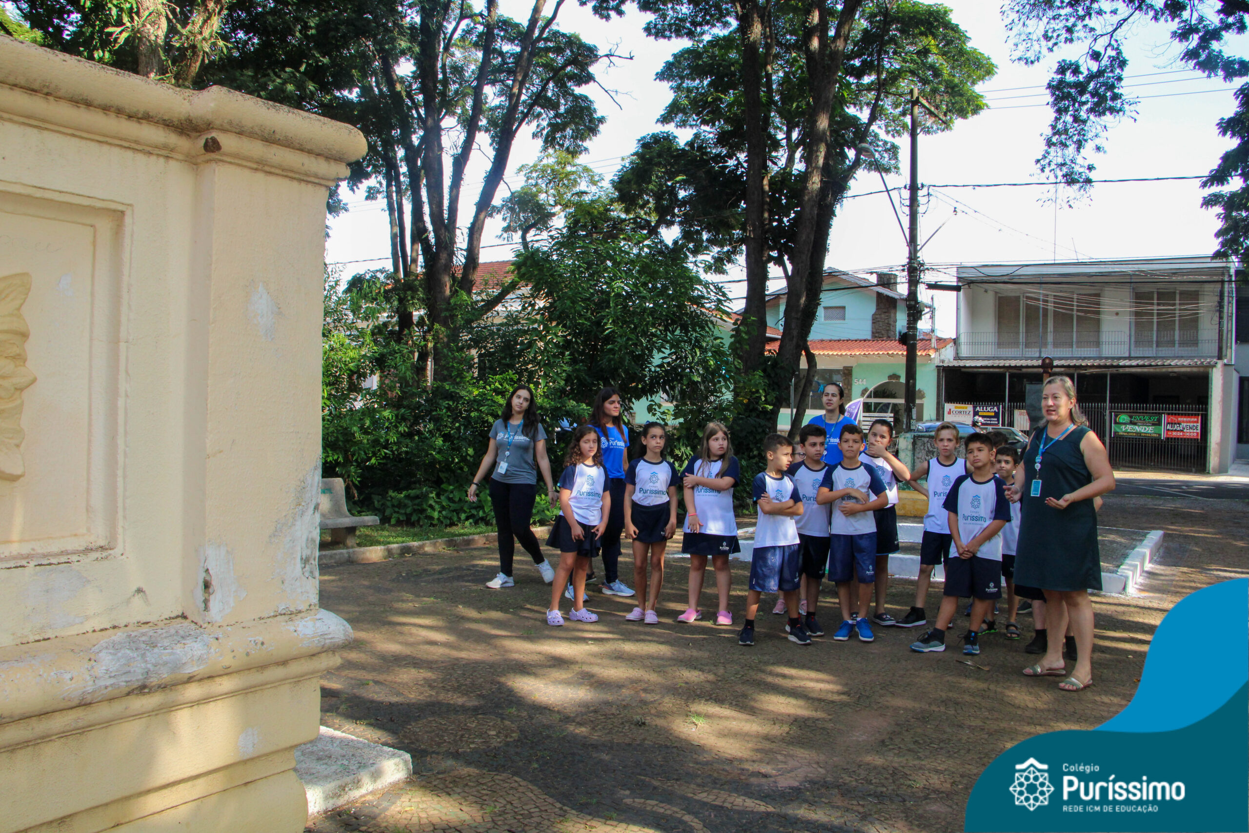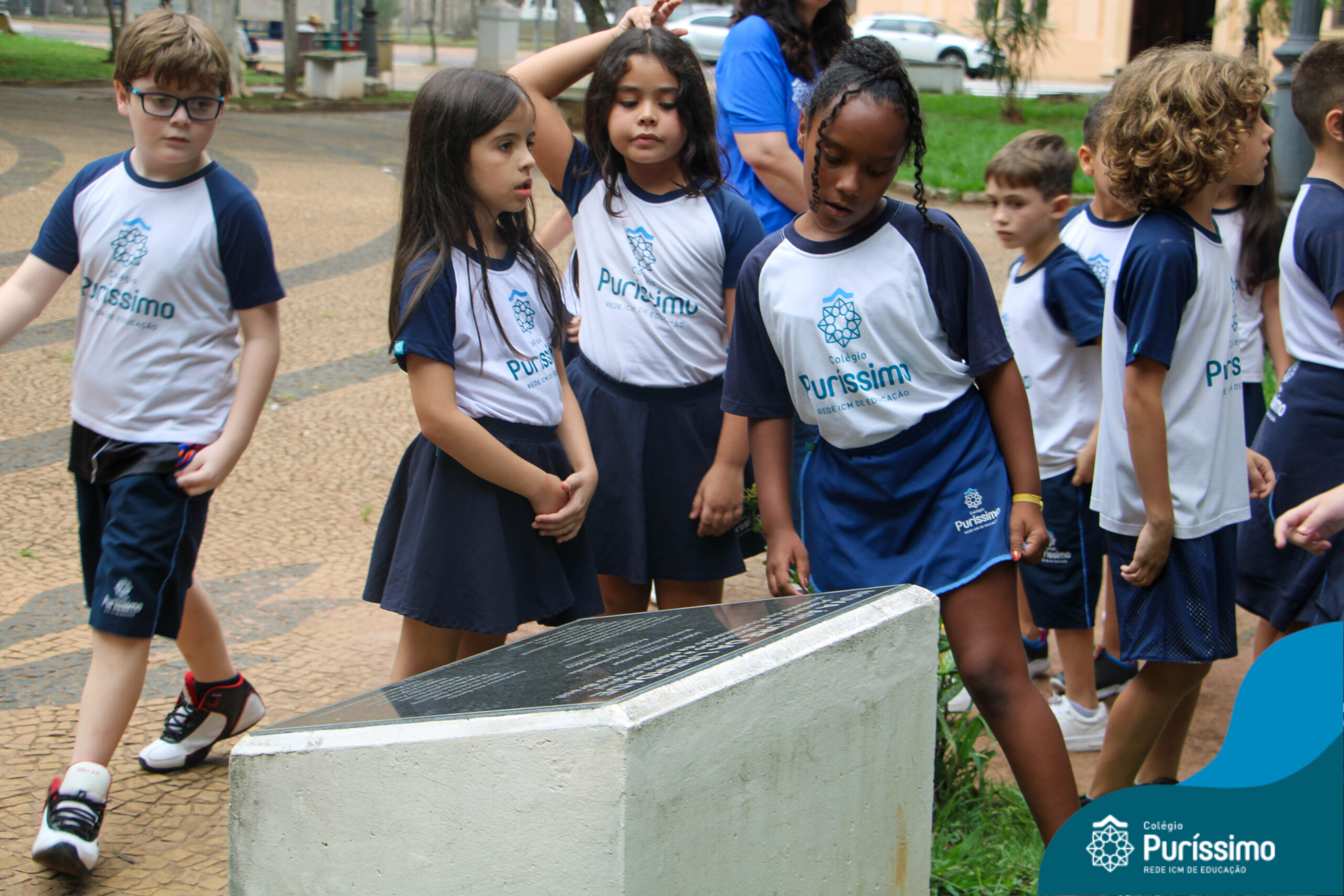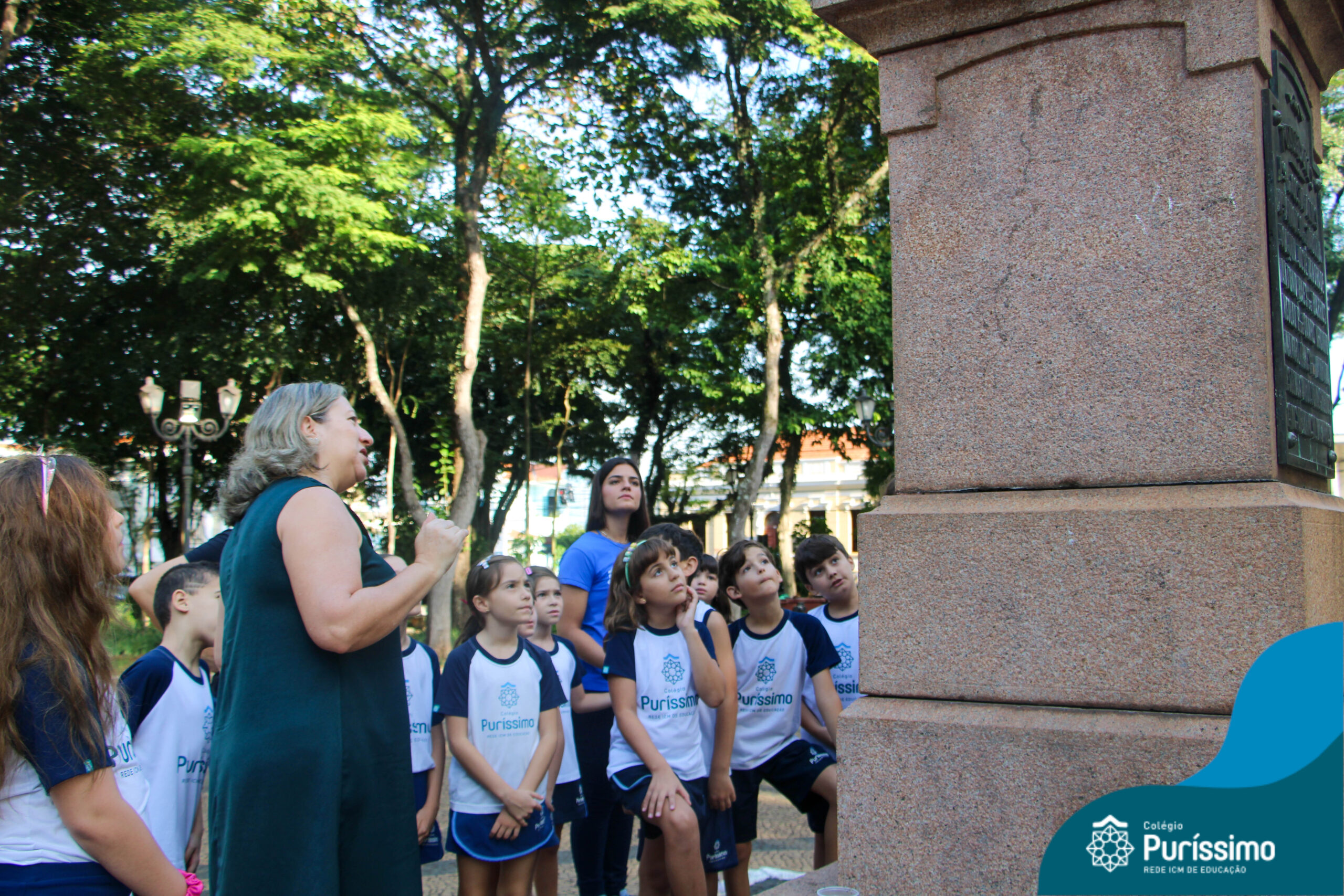 Os alunos do 3º ano visitaram a Praça da Liberdade para conhecer melhor sobre figuras importantes e monumentos históricos importantes para a formação do município de Rio Claro.