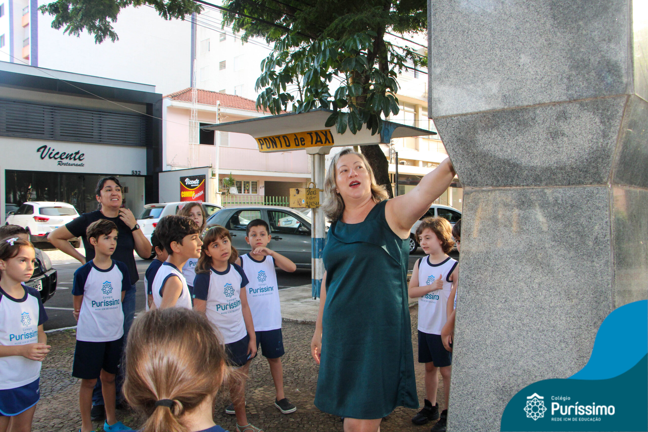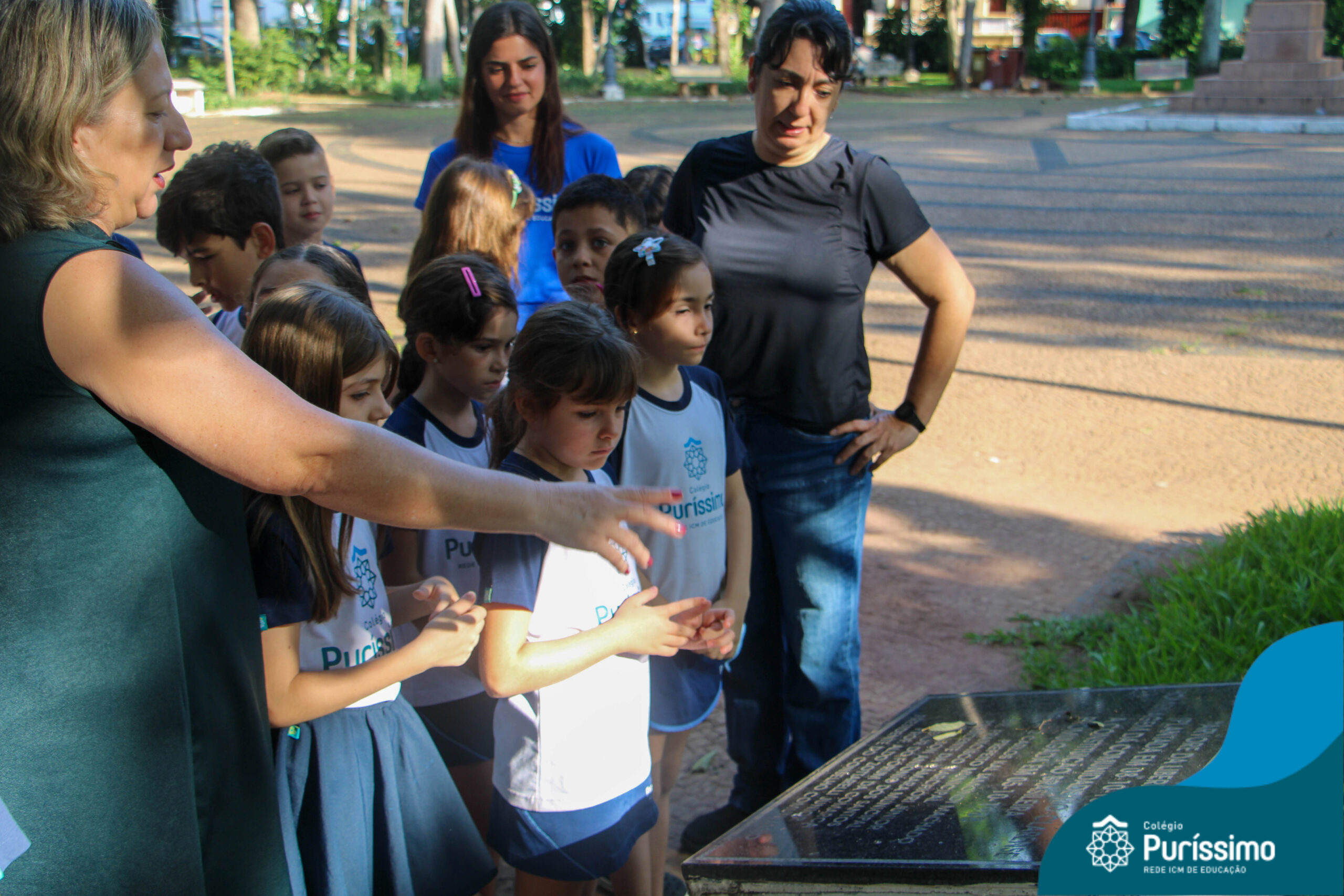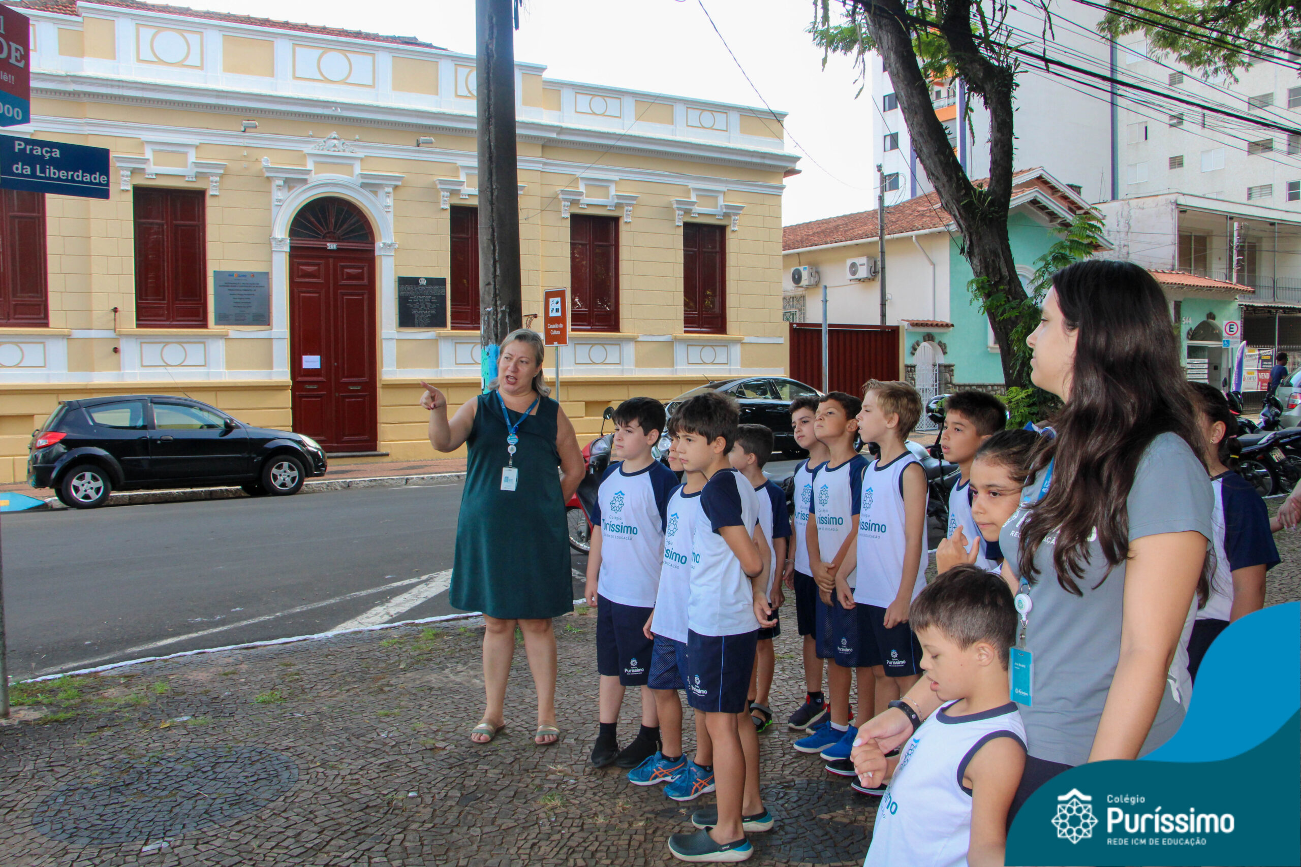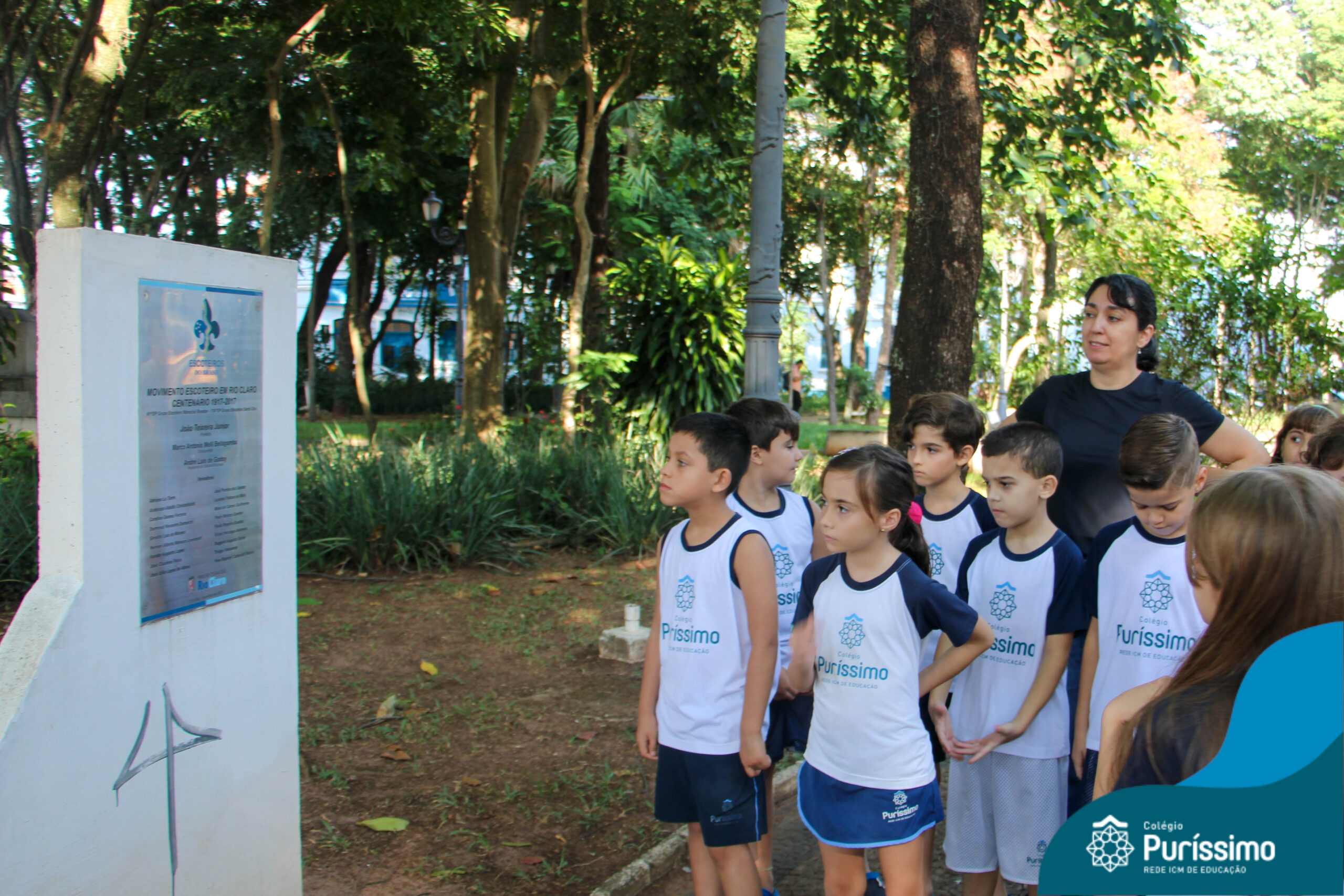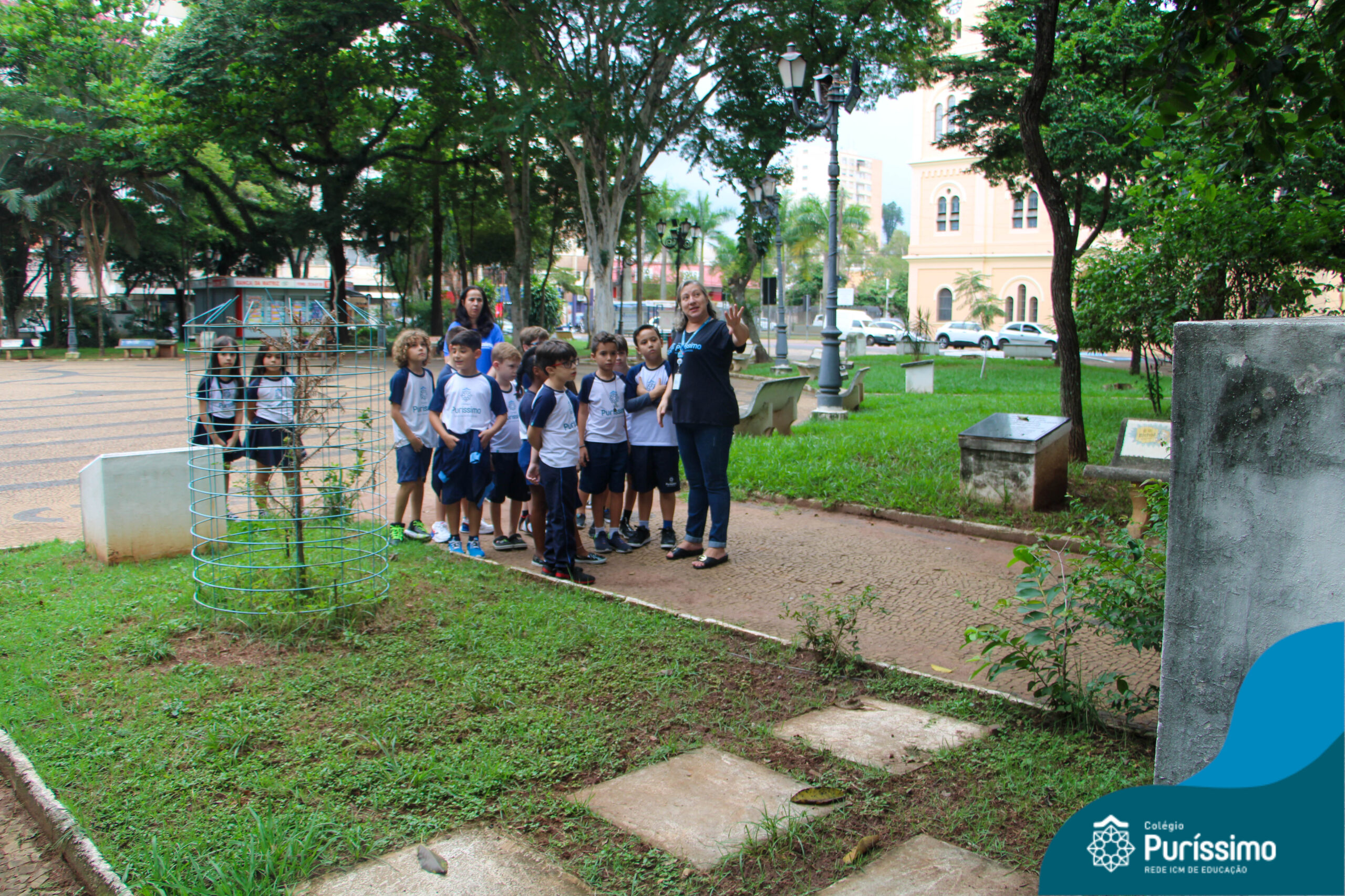 Os alunos do 3º ano visitaram a Praça da Liberdade para conhecer melhor sobre figuras importantes e monumentos históricos importantes para a formação do município de Rio Claro.