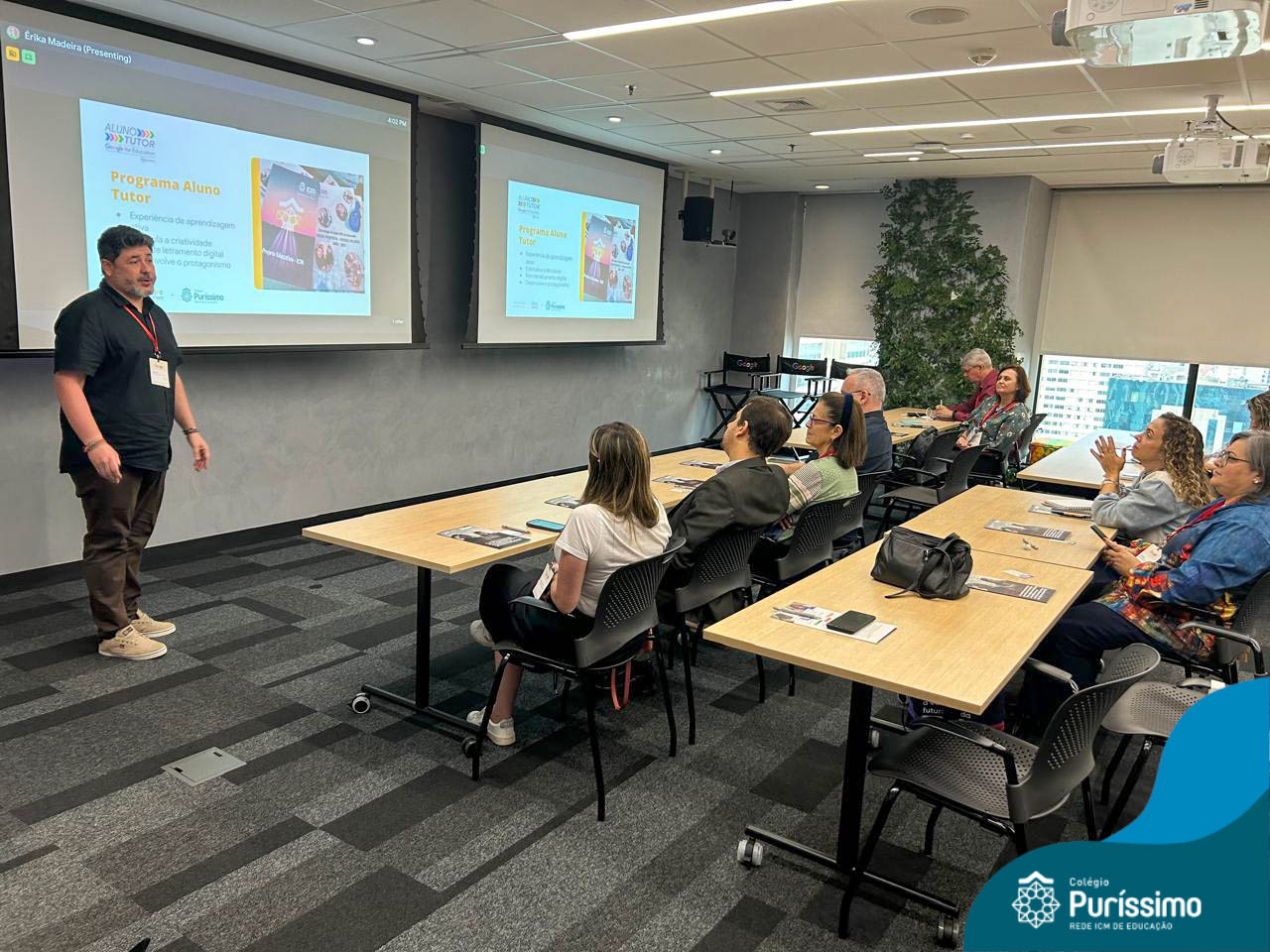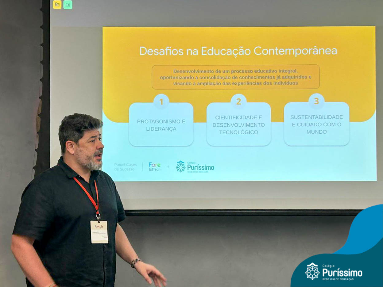 O Coordenador Pedagógico Rodrigo Rufino apresentou no último dia 25 de abril um projeto realizado pelo Colégio Puríssimo em evento no Google, na cidade de São Paulo. O projeto “Programa Aluno Tutor” do Colégio Puríssimo foi apresentado como case de sucesso por promover mais aprendizado, desenvolvimento e protagonismo dos estudantes.