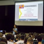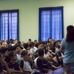 Nesta segunda-feira, dia 29 de Janeiro, a coordenadora do Ensino Fundamental II, Janaina Cortinhas, conversou um pouco com os alunos dos 6ºs a 9ºs anos sobre algumas orientações pedagógicas para esse ano letivo.