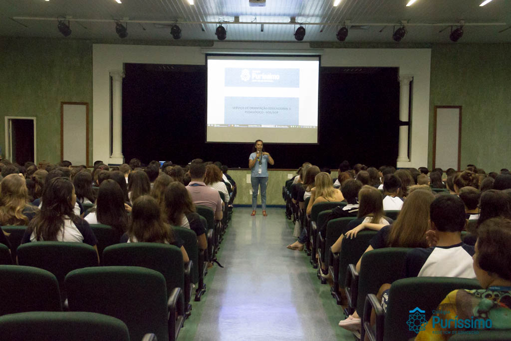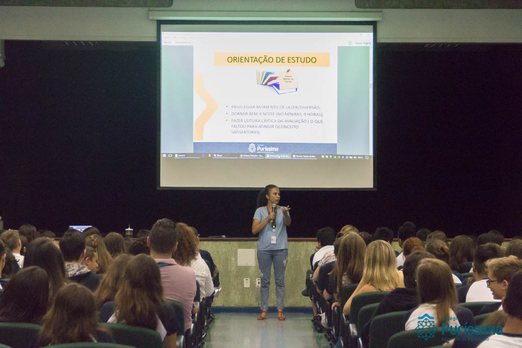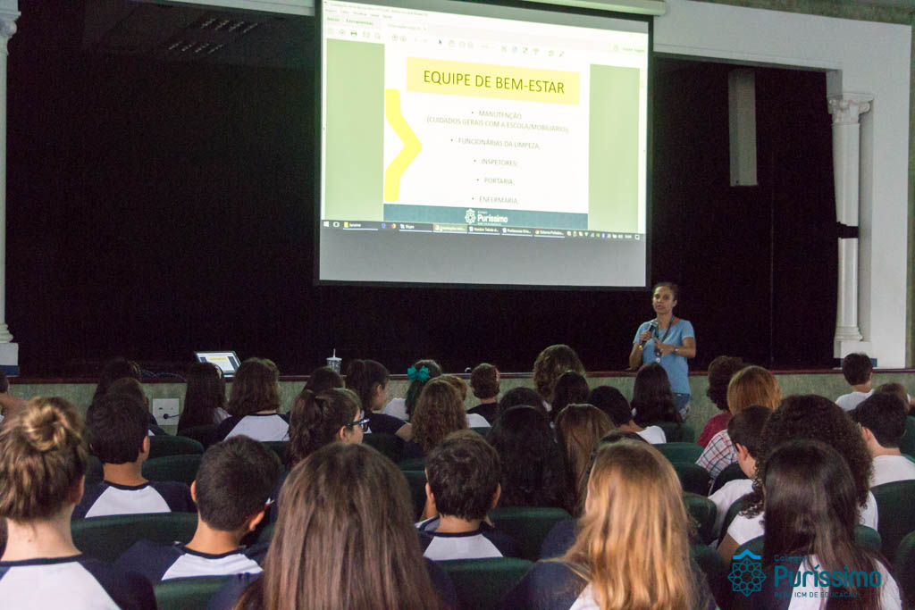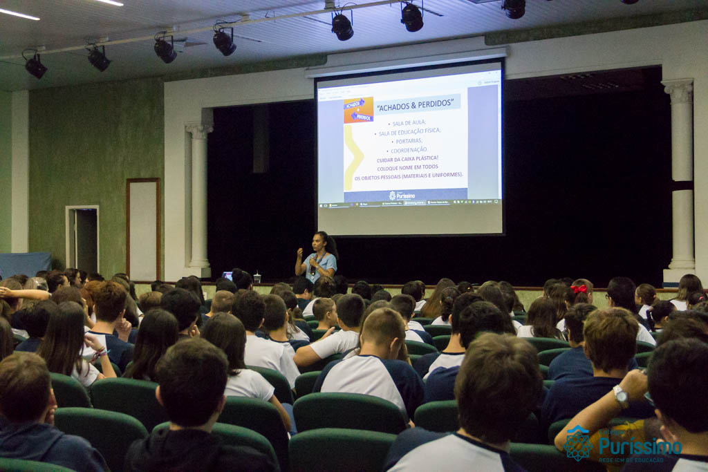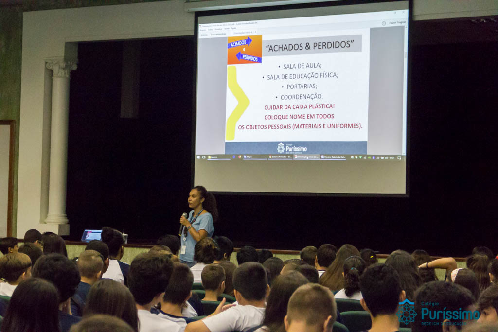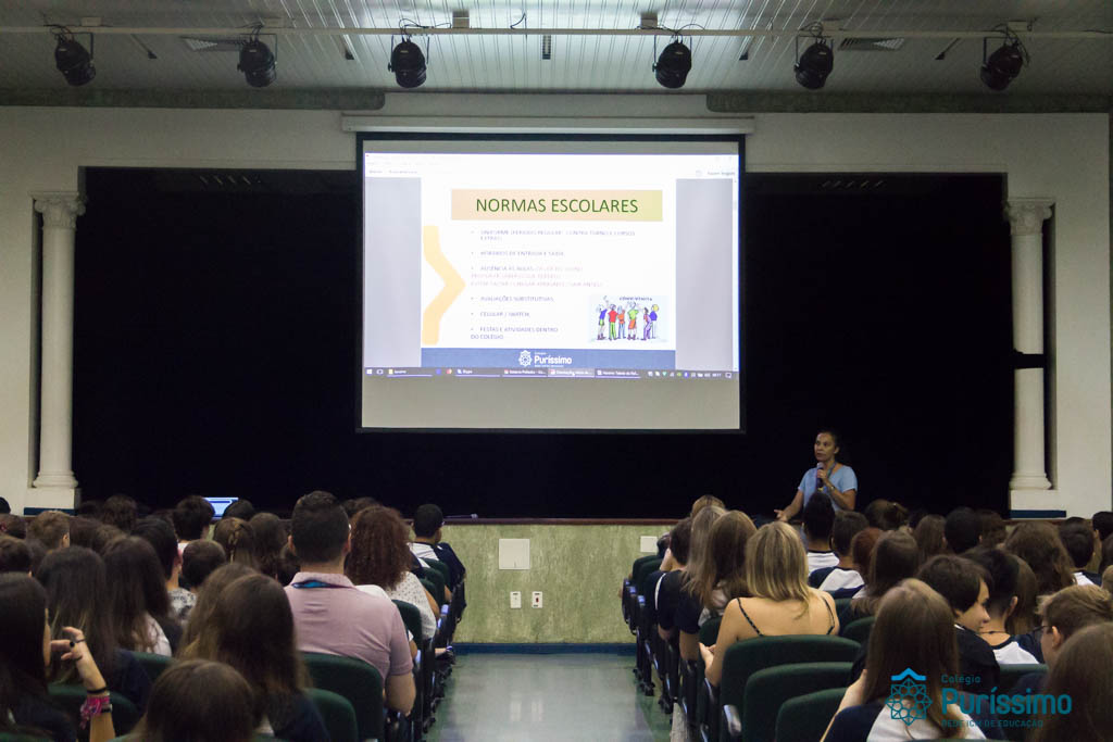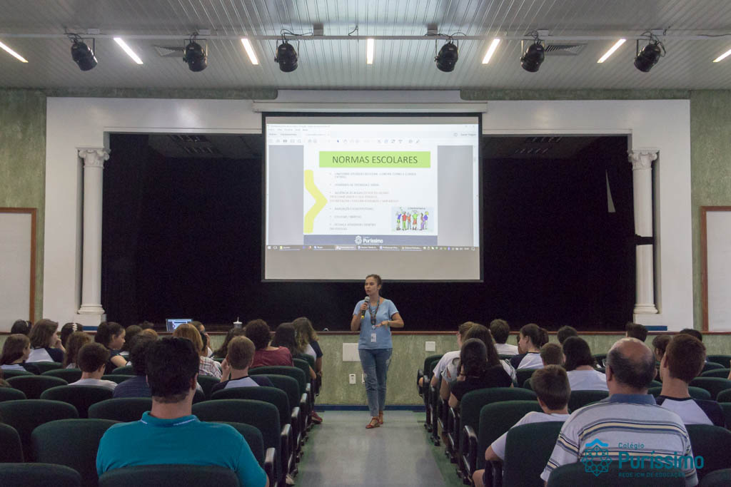 Dentre os assuntos abordados, a coordenadora falou sobre normas escolares, regras de convivência, orientações de estudo, horários de reforço, acesso a sistemas digitais de ensino que são utilizados pelo Colégio e colegiados, uma alternativa para alunos interessados em atividades extras.